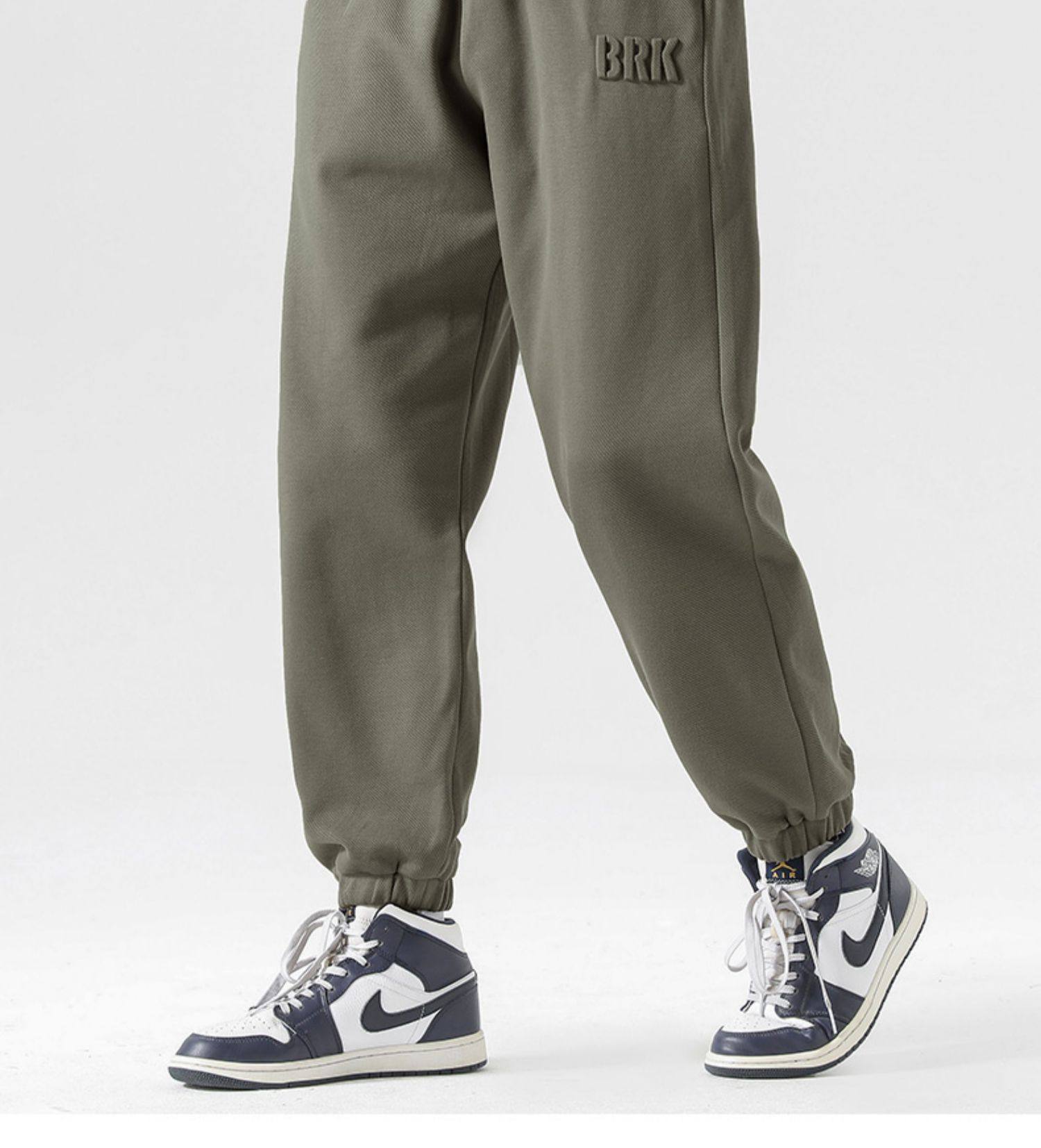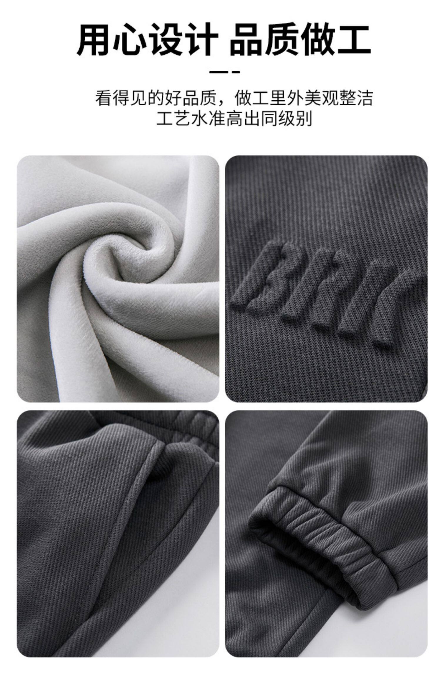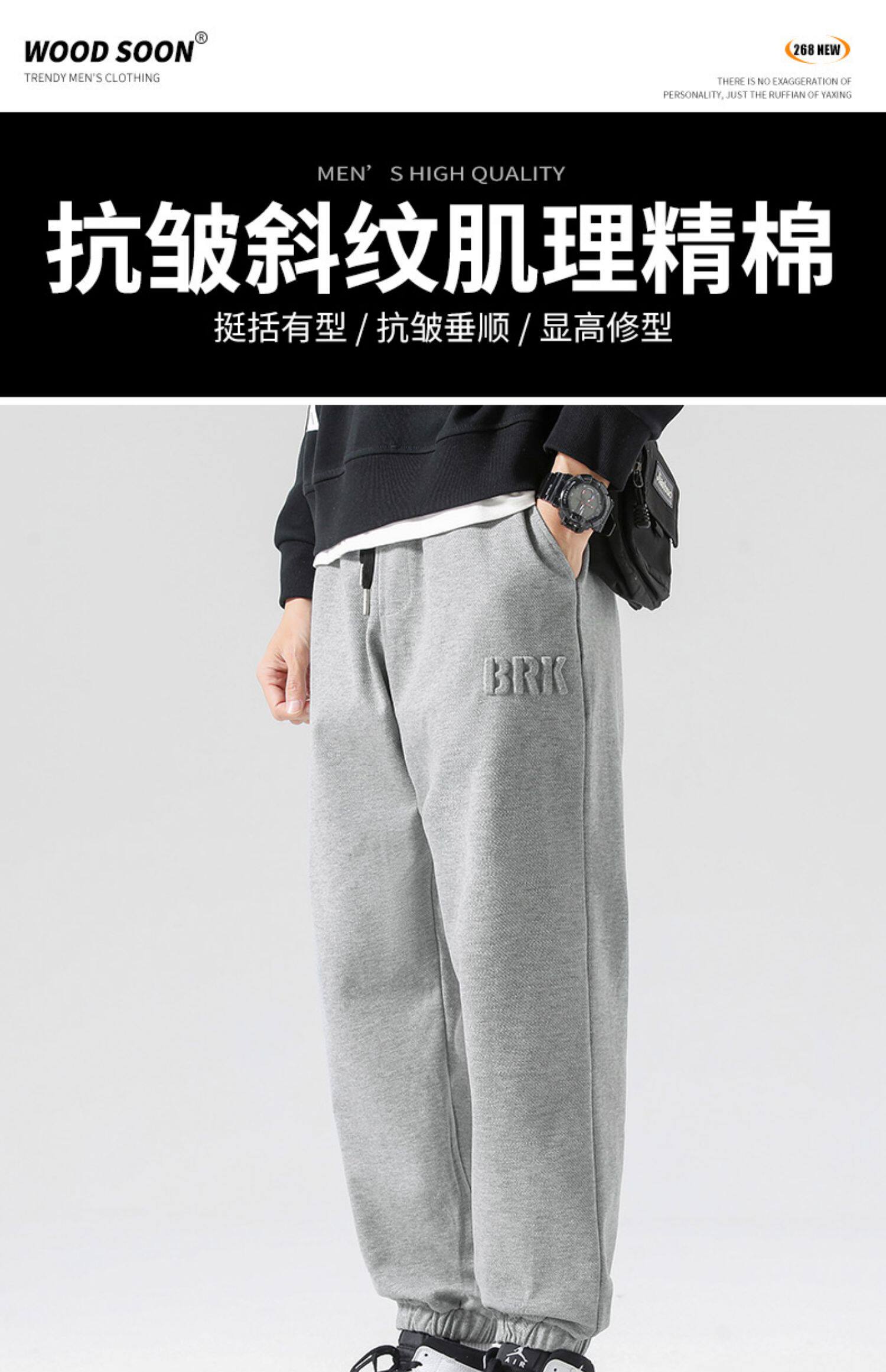 WOODSOON休闲裤男生秋冬季加绒保暖束脚运动针织裤直筒裤子男士