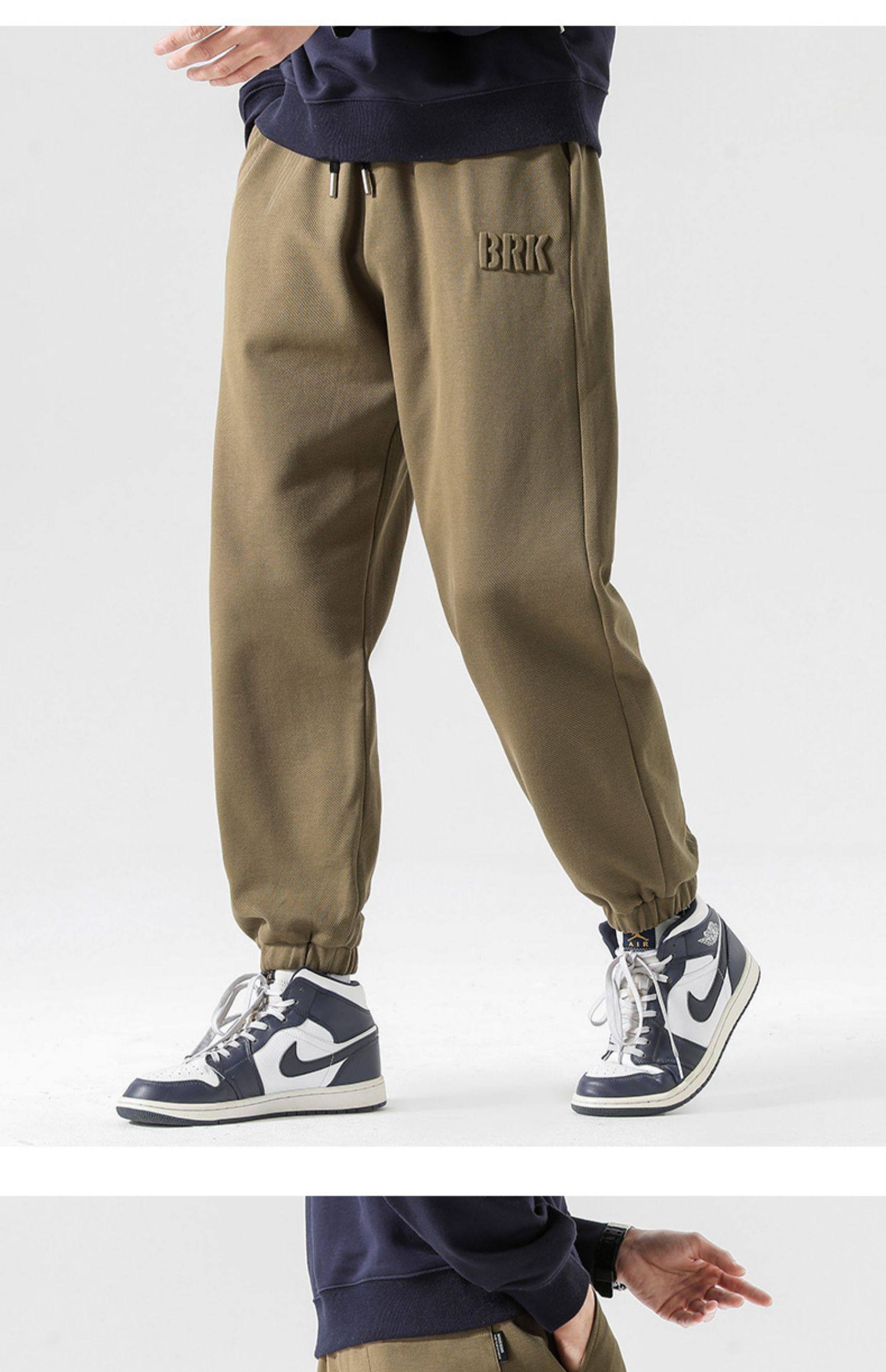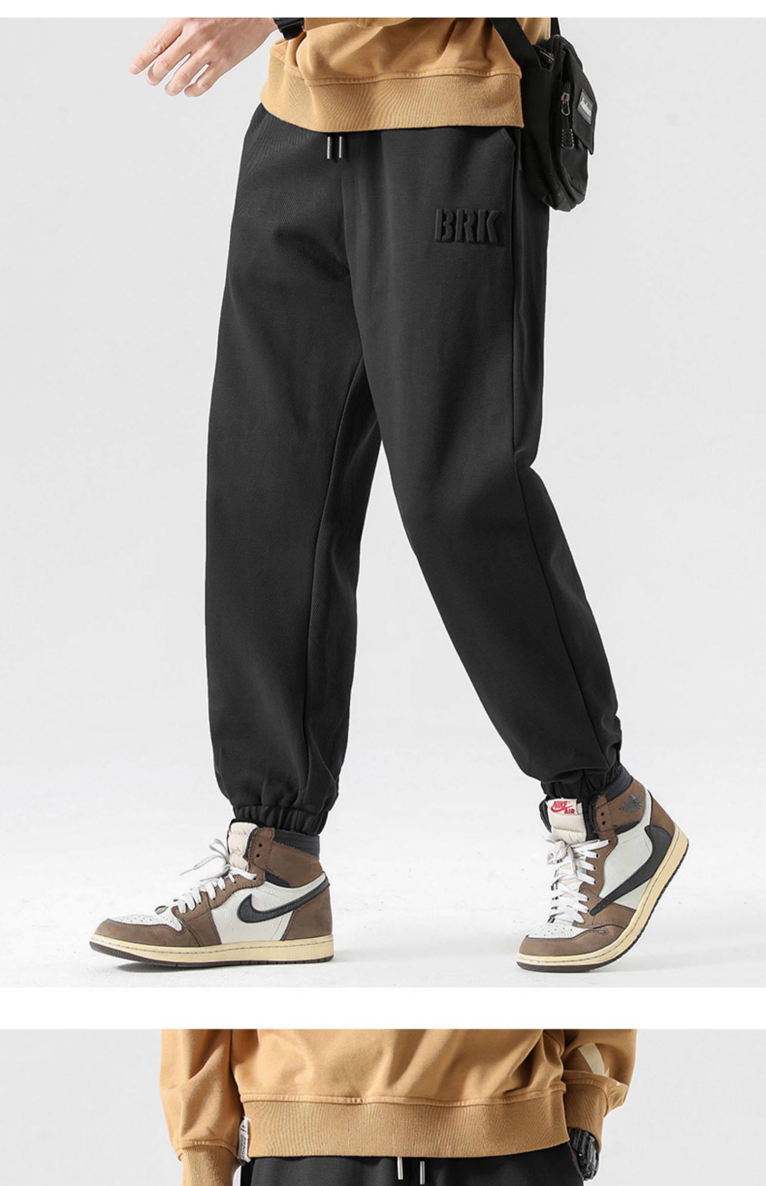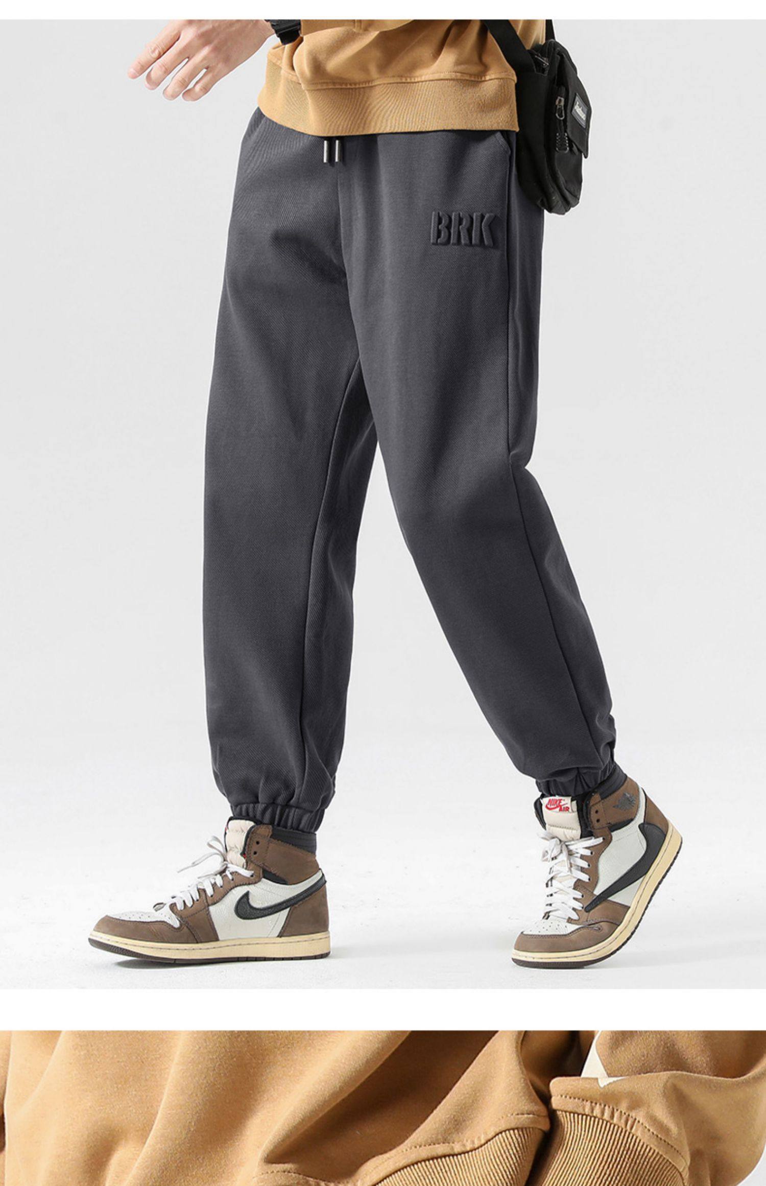 WOODSOON休闲裤男生秋冬季加绒保暖束脚运动针织裤直筒裤子男士