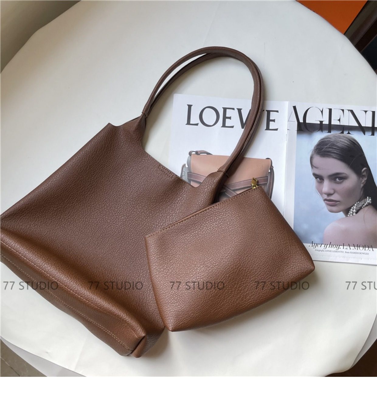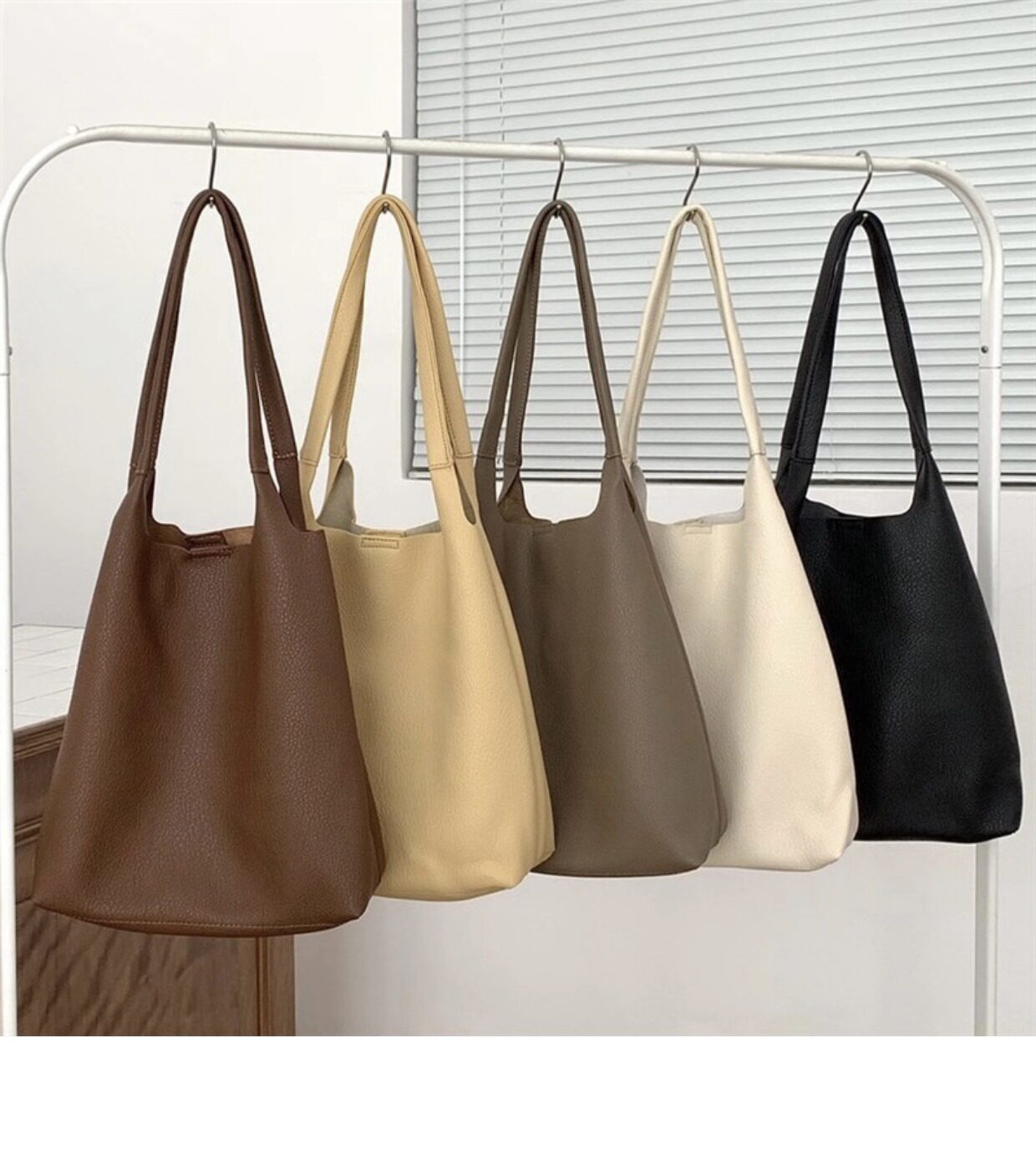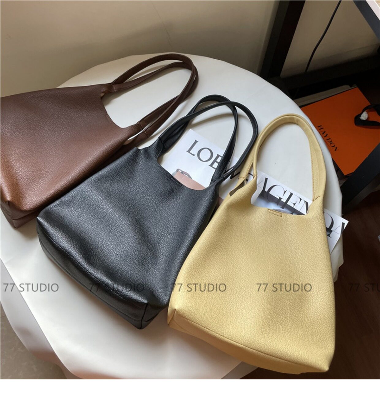 앤티크 질감의 소프트 가죽 숄더 빅백 2023 신상 심플 멀티 겨드랑이 토트백 패션 통근가방 여