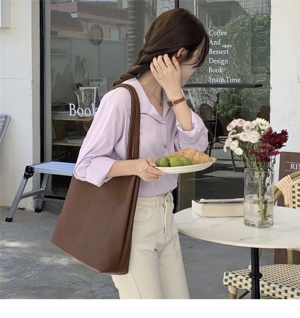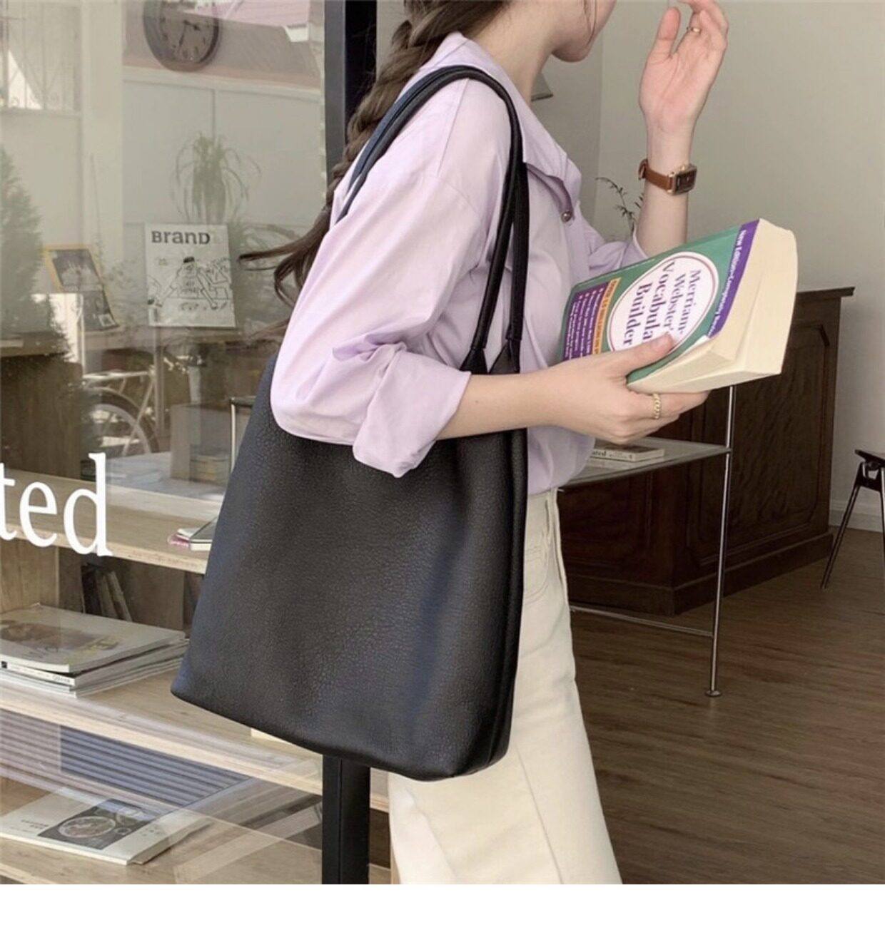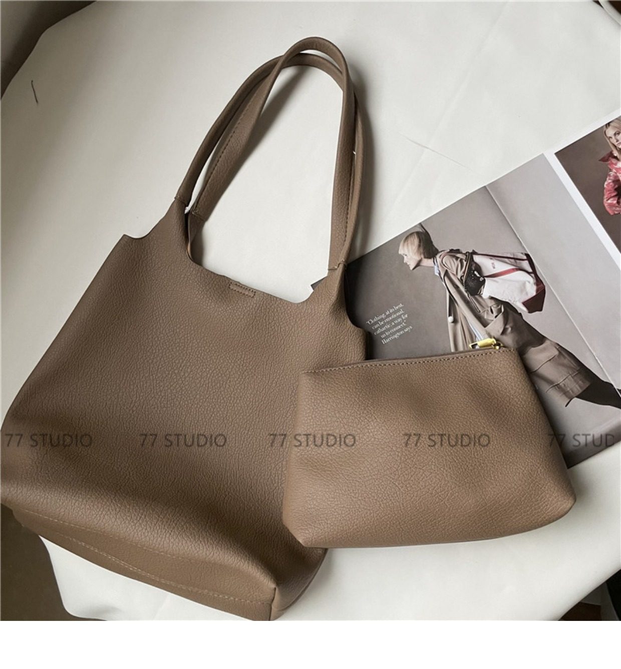 앤티크 질감의 소프트 가죽 숄더 빅백 2023 신상 심플 멀티 겨드랑이 토트백 패션 통근가방 여