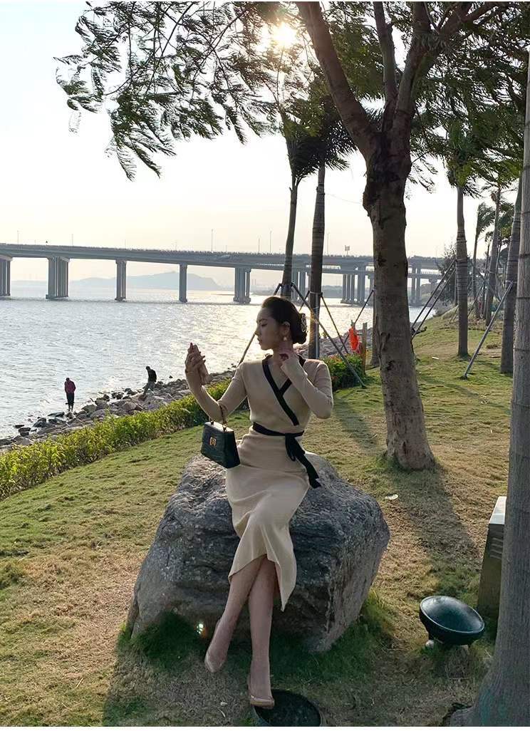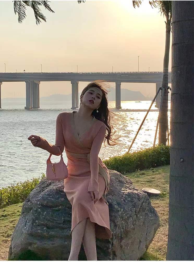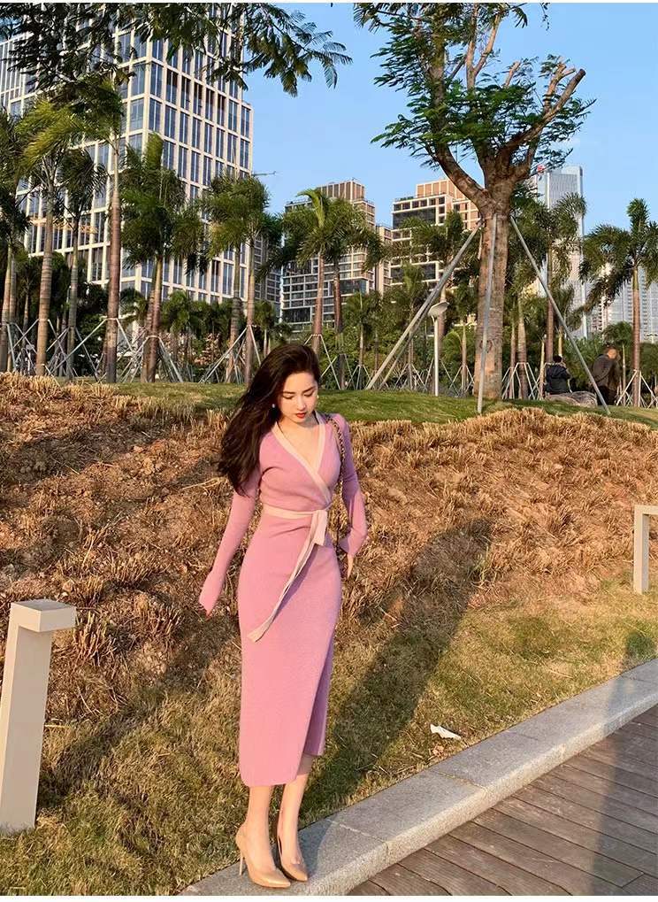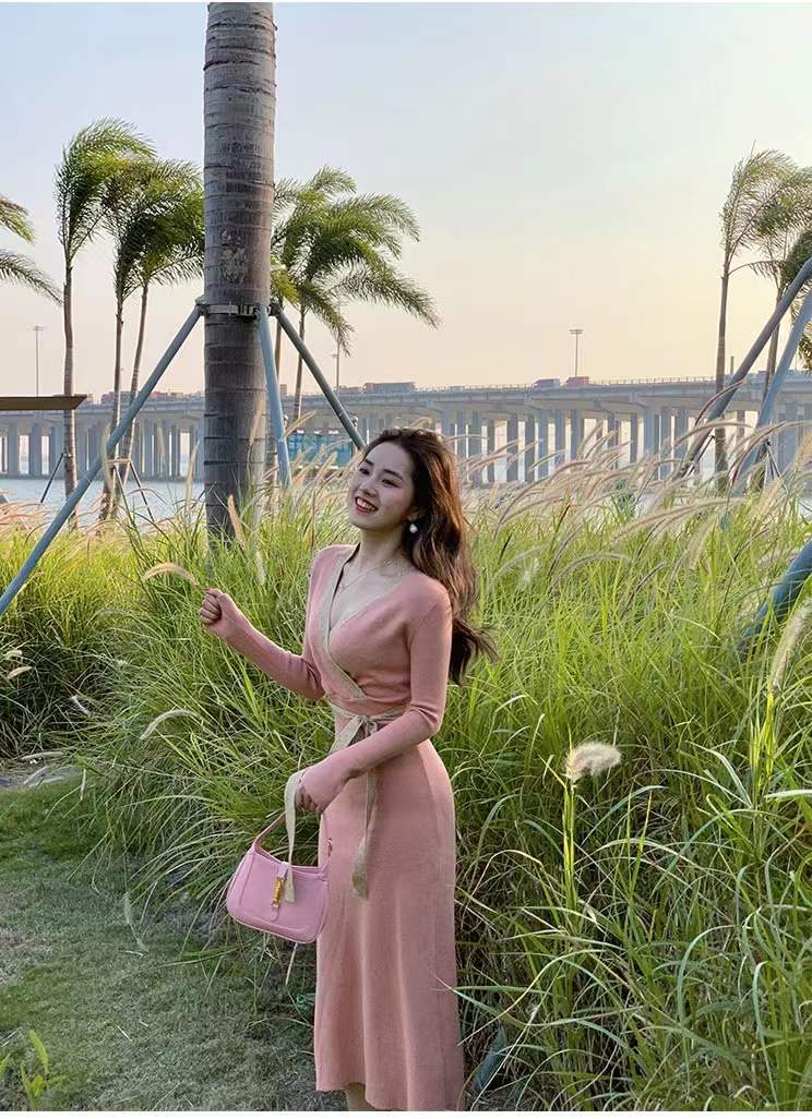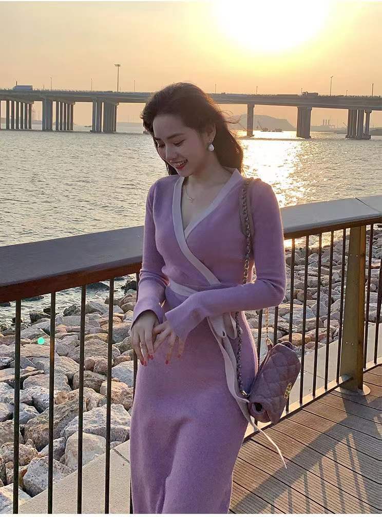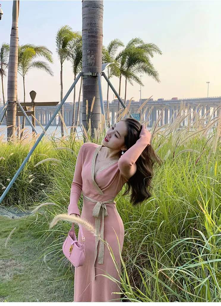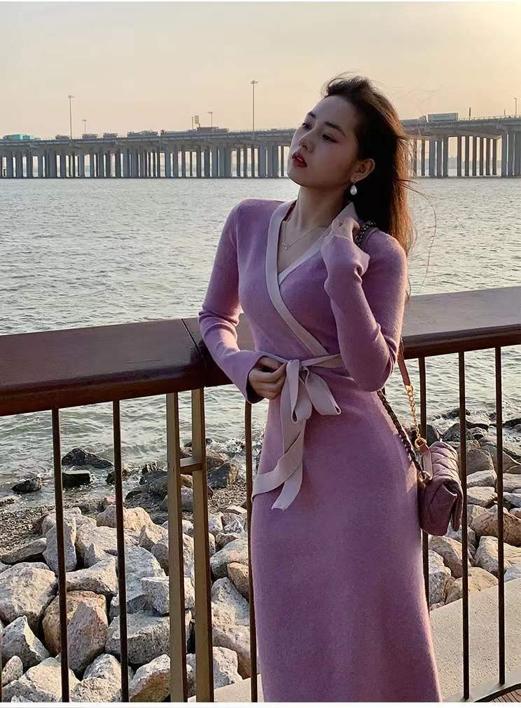 法式小香风高级感收腰显瘦连衣裙女秋季新款设计感小众V领针织裙