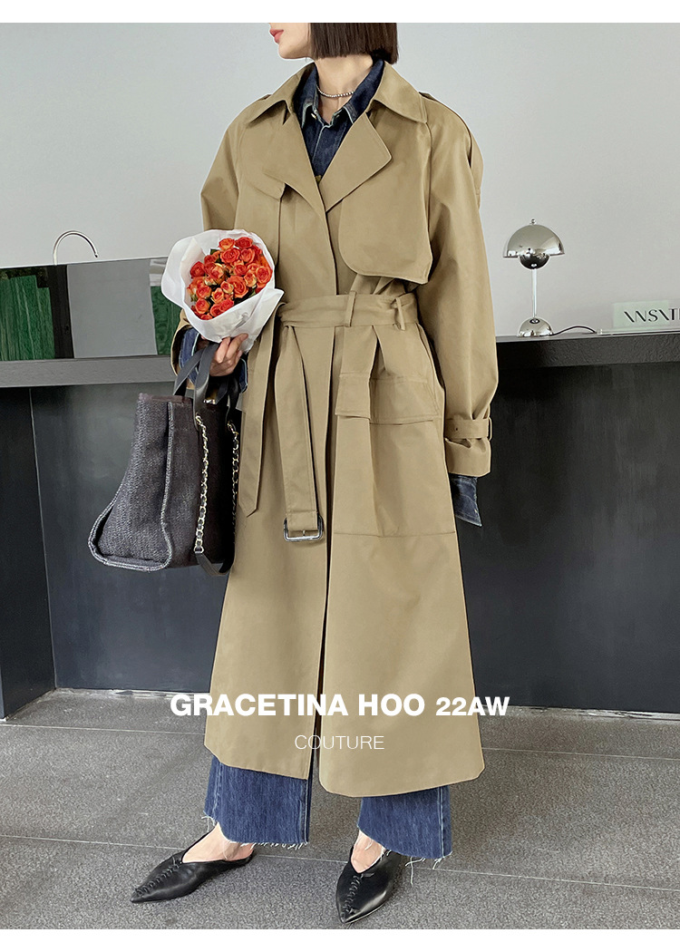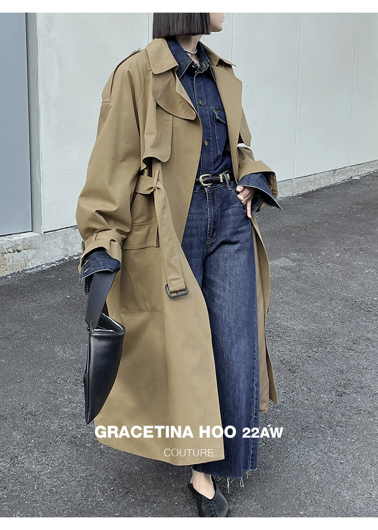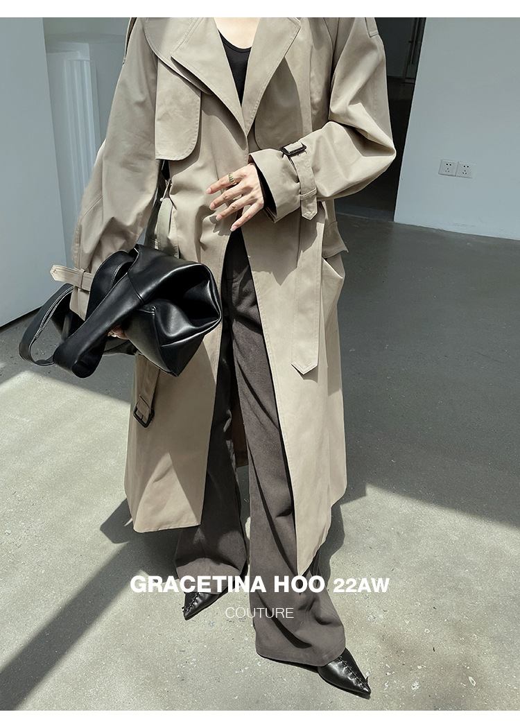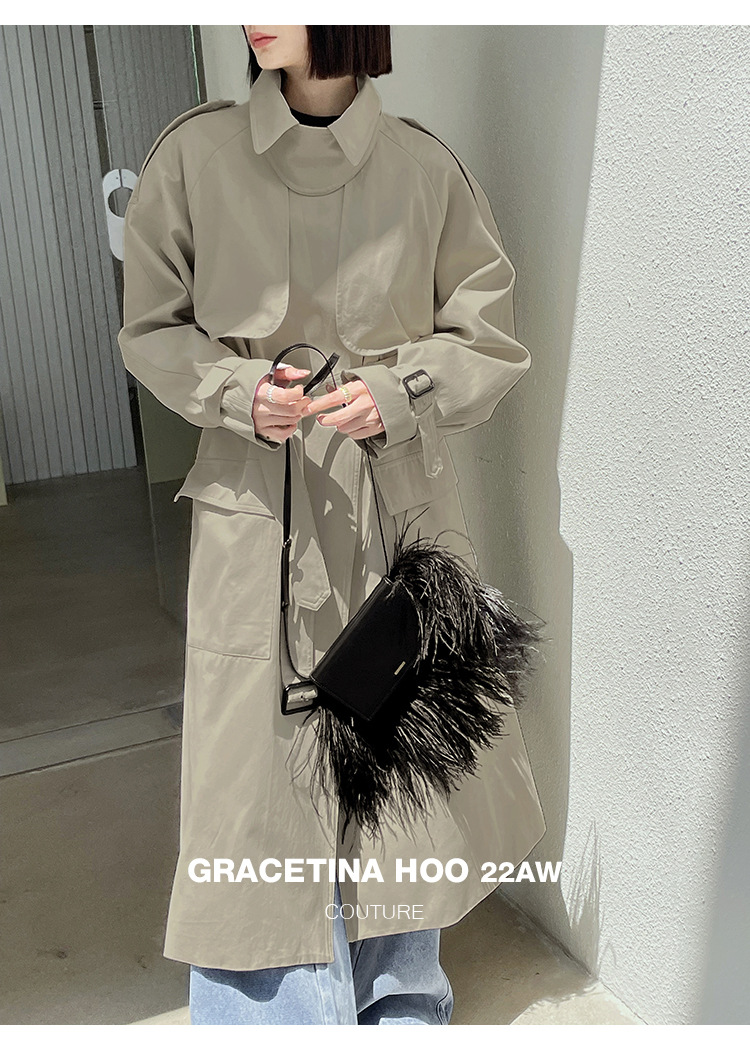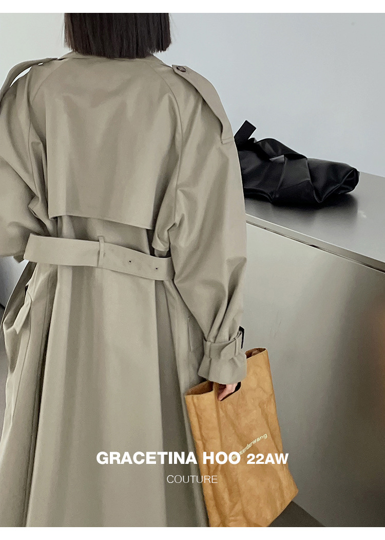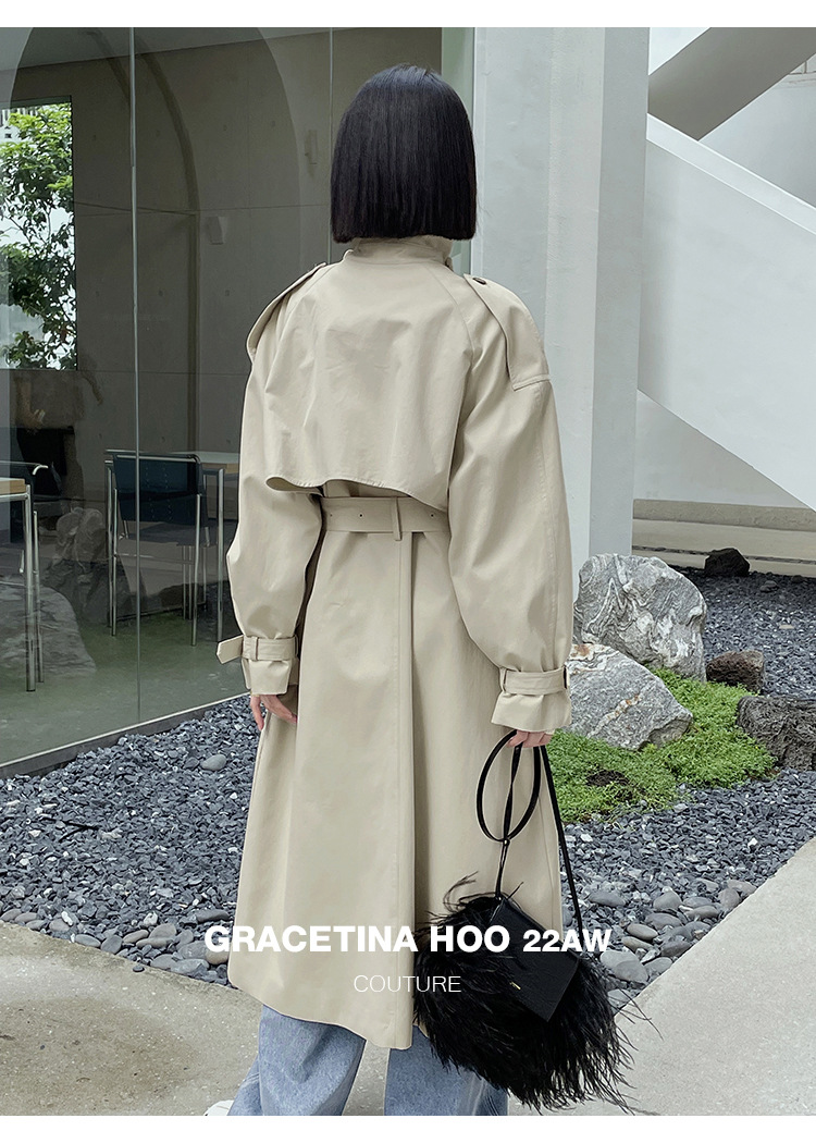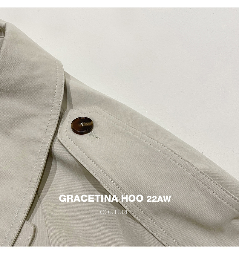 GRACETINAHOO2022十三行秋冬新款经典复古绒面立体收腰廓形风衣女
