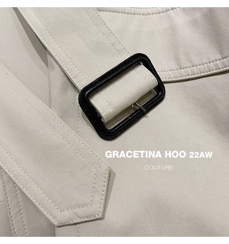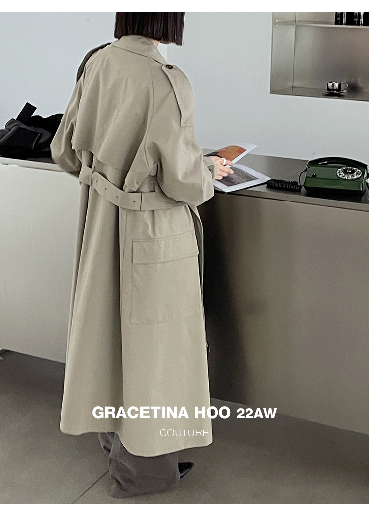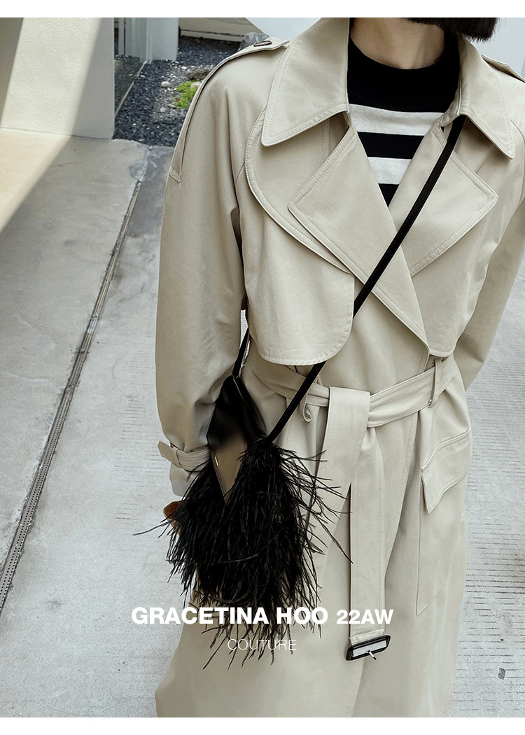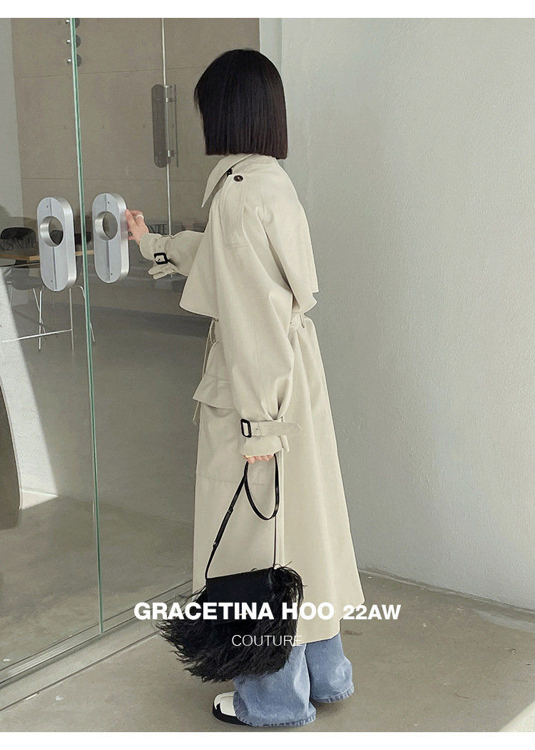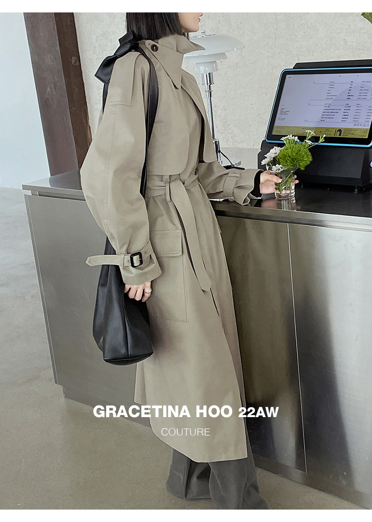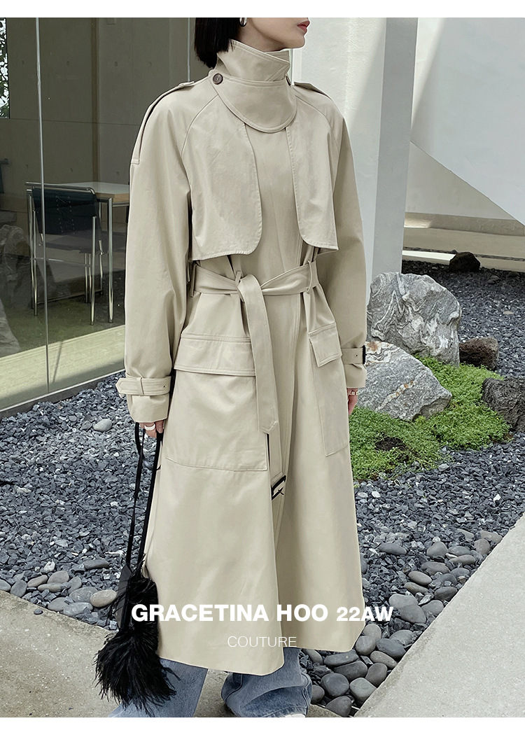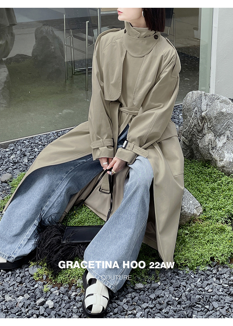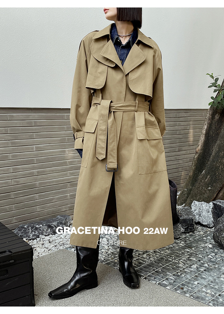 GRACETINAHOO2022十三行秋冬新款经典复古绒面立体收腰廓形风衣女