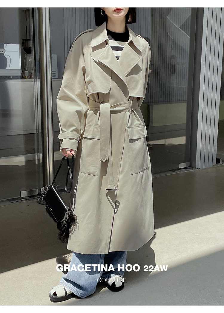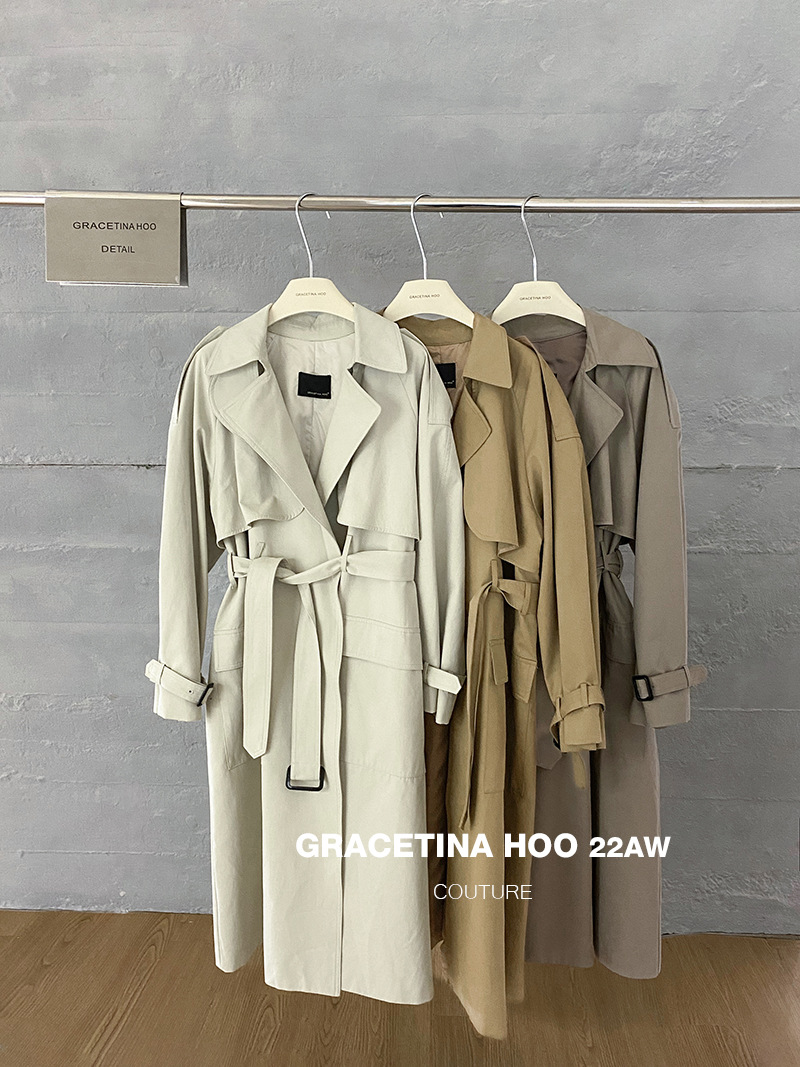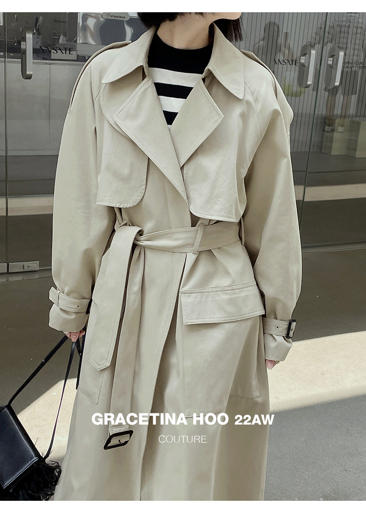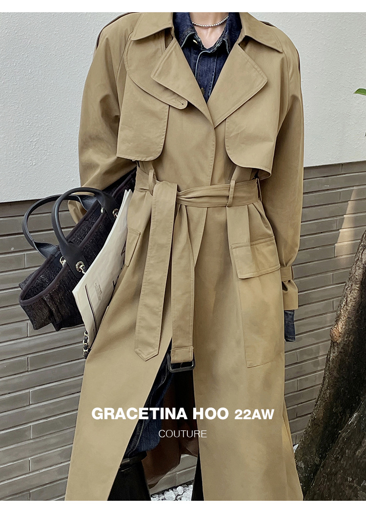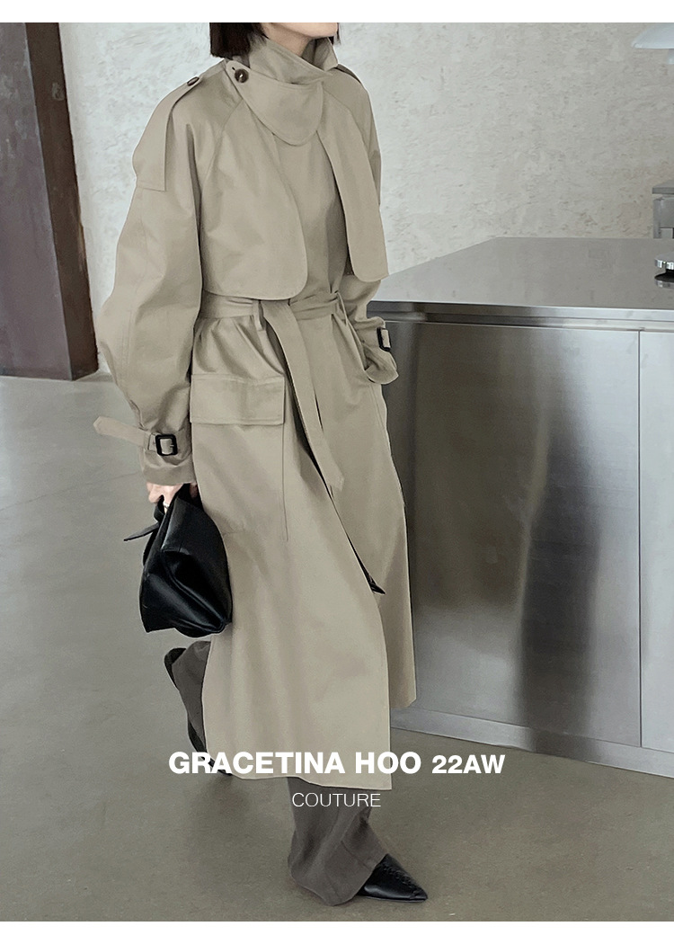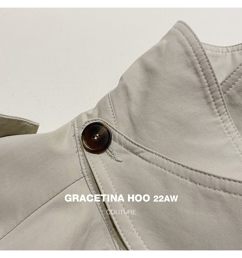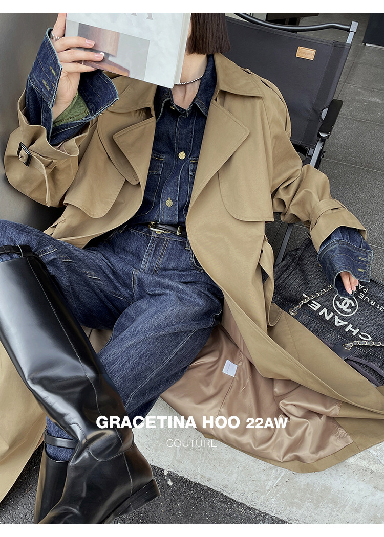 GRACETINAHOO2022十三行秋冬新款经典复古绒面立体收腰廓形风衣女