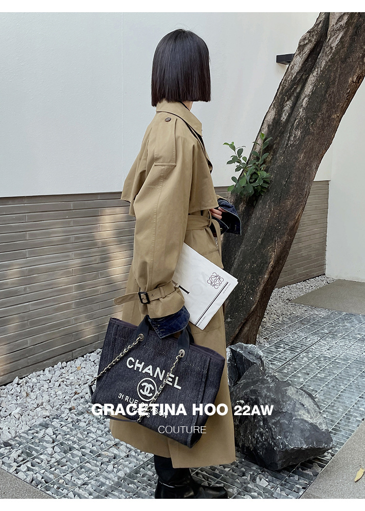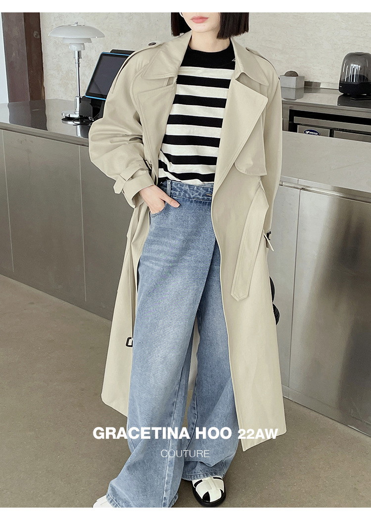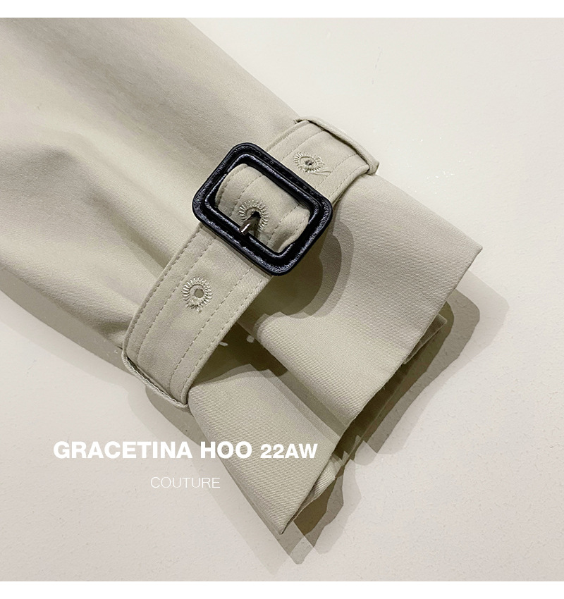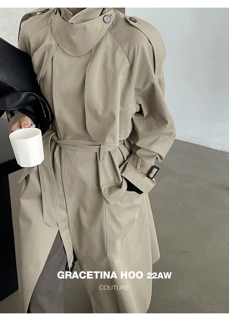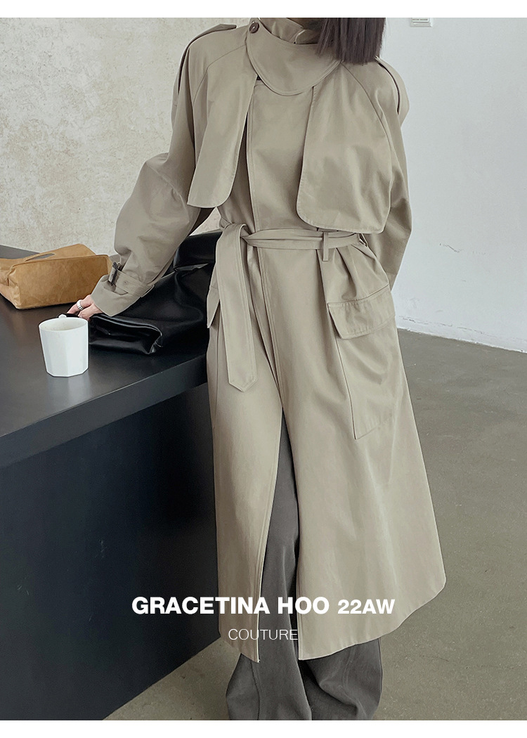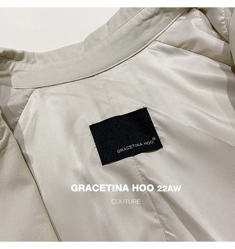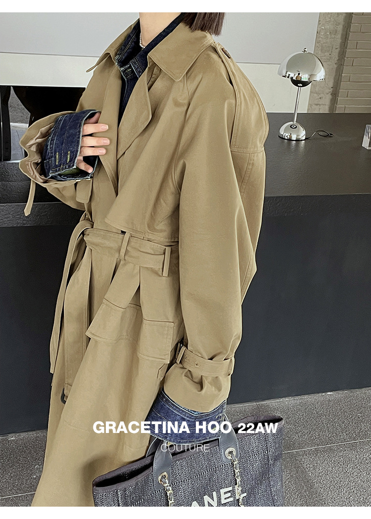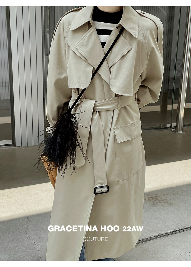 GRACETINAHOO2022十三行秋冬新款经典复古绒面立体收腰廓形风衣女