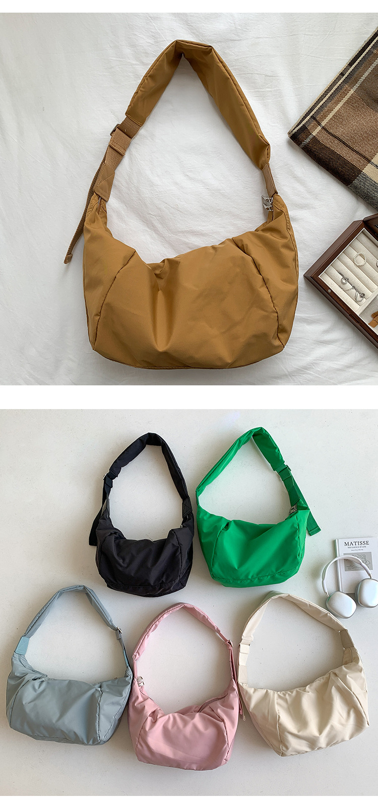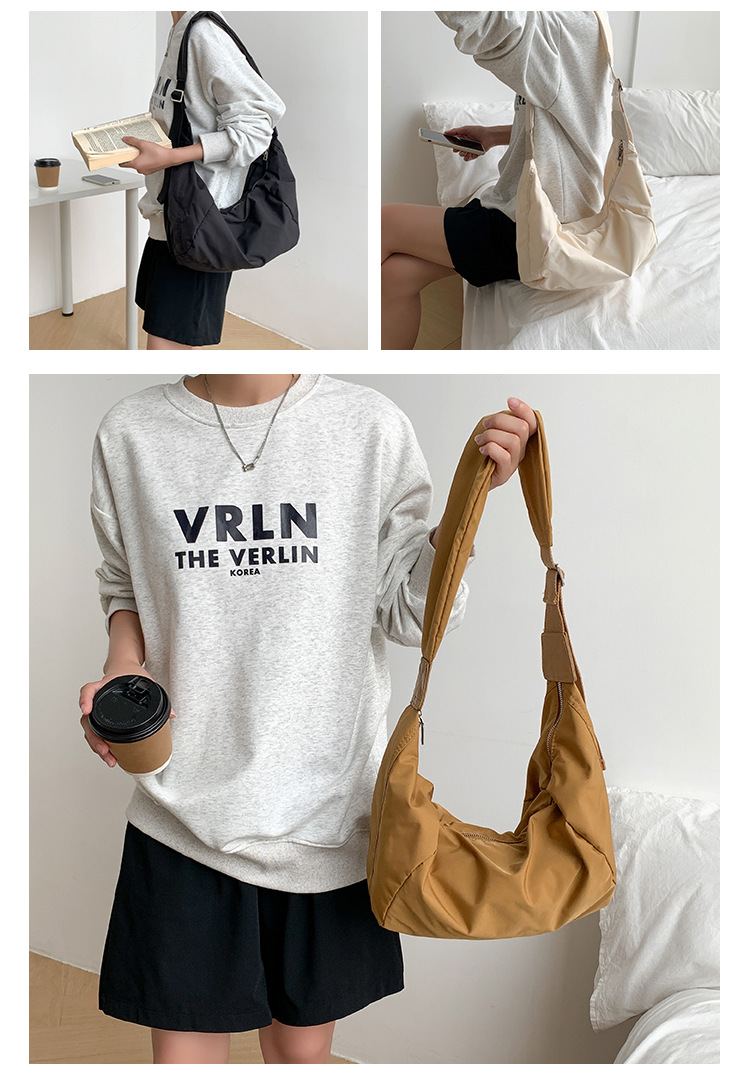 韩国ins大容量斜挎包小众日系原宿单肩邮差包时尚中性尼龙饺子包