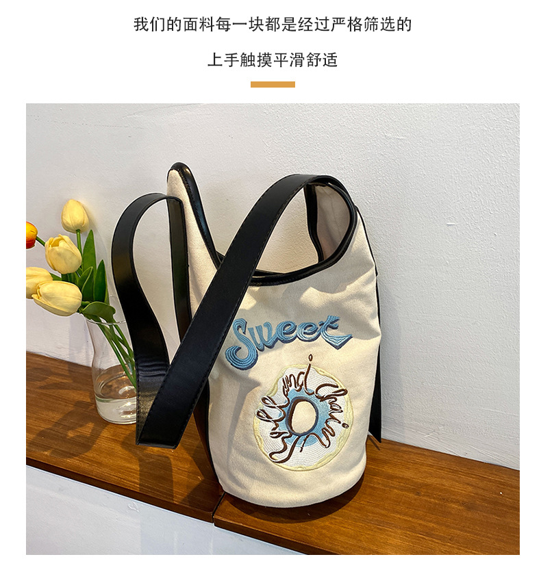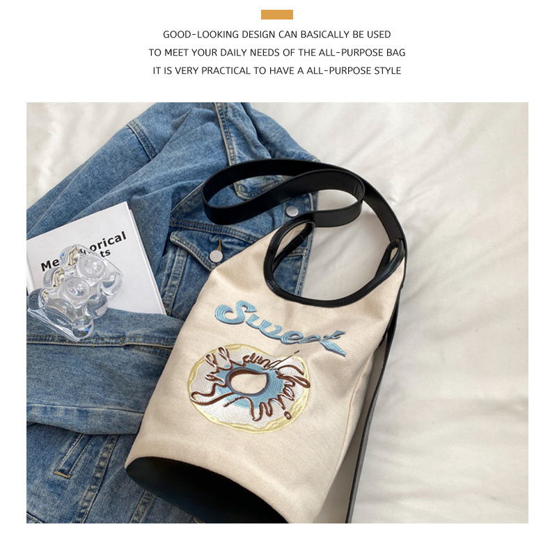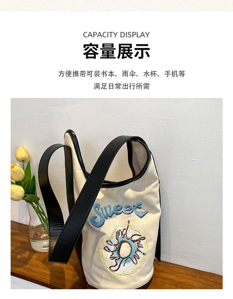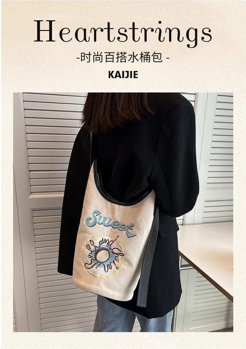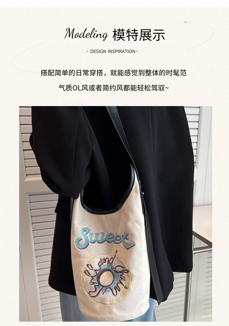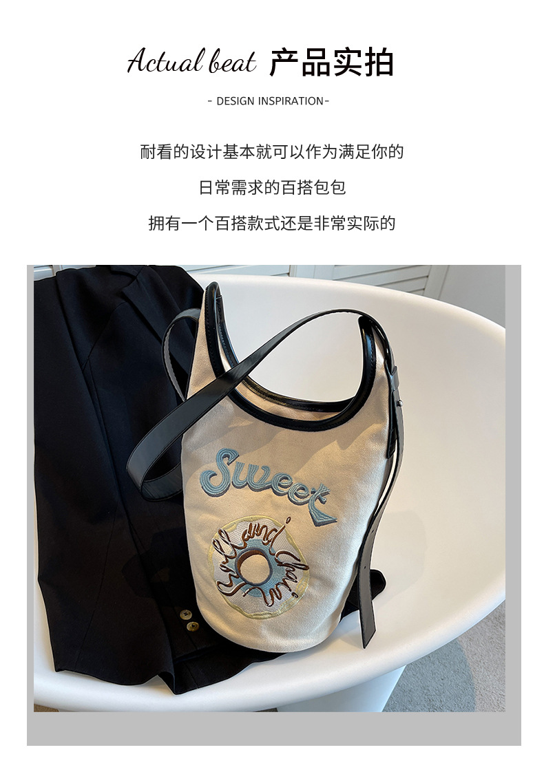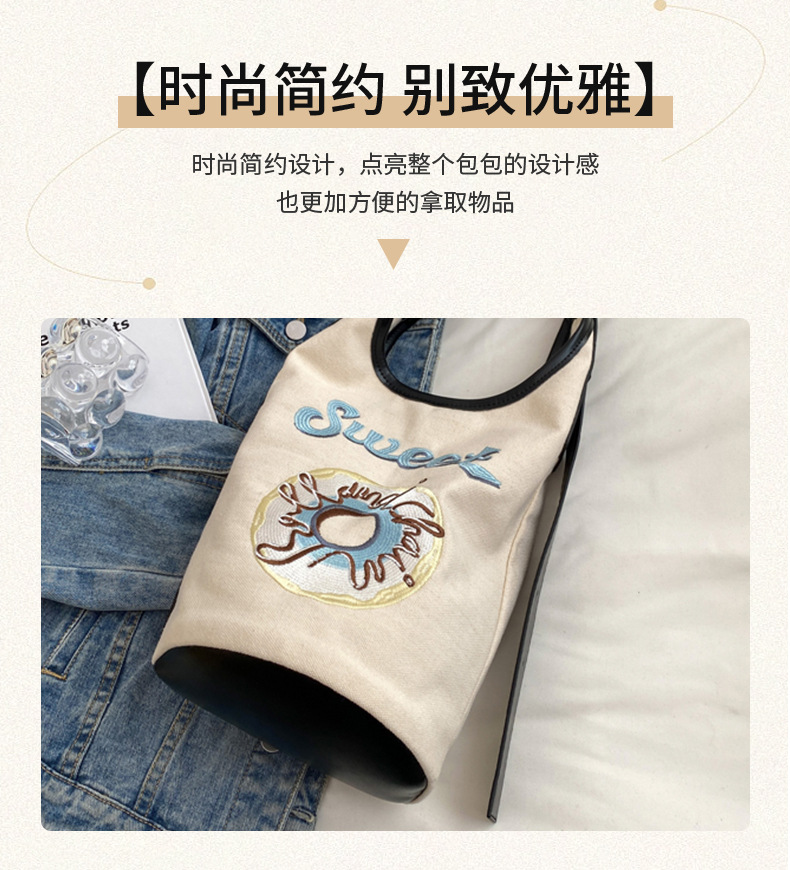 日韩ins甜美甜甜圈单肩包女小众设计时尚百搭水桶包刺绣斜挎女包