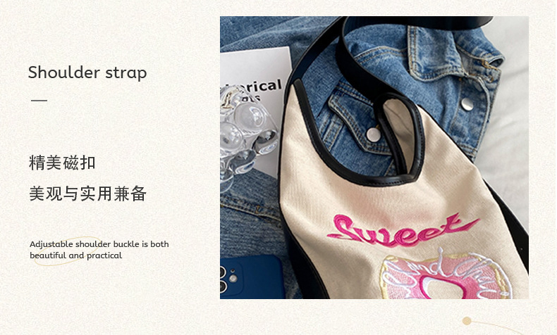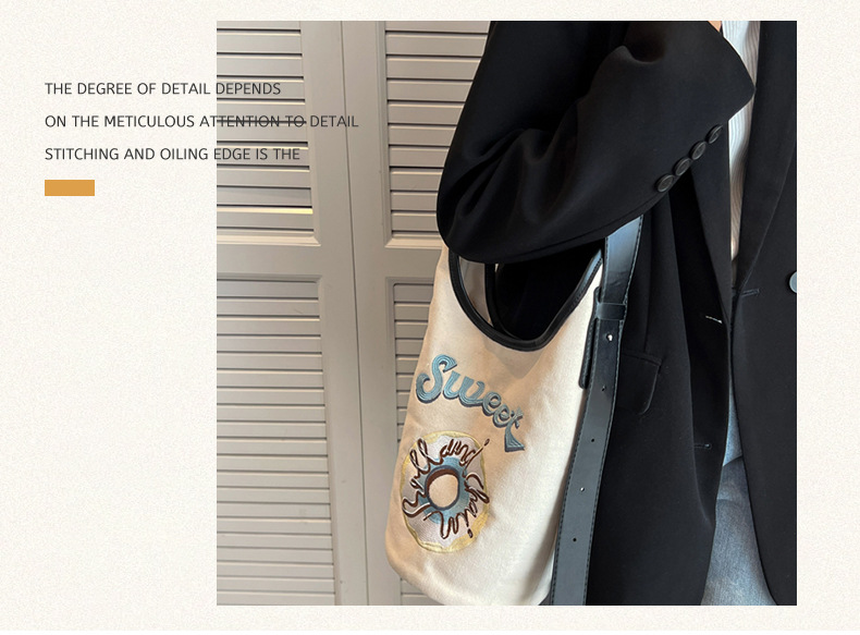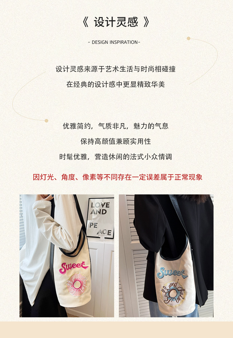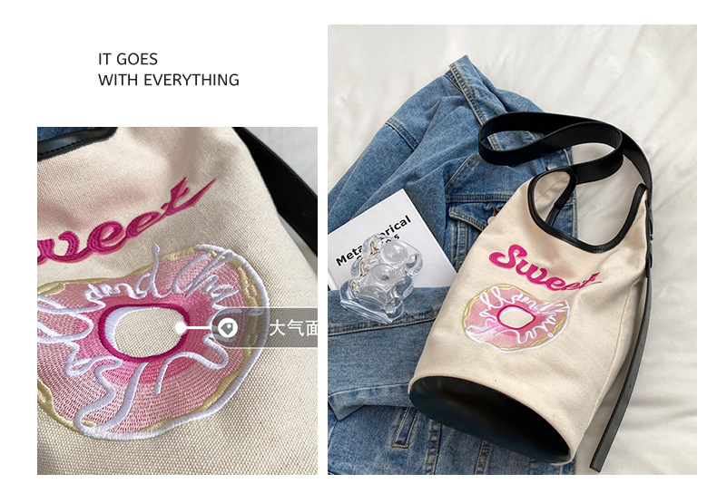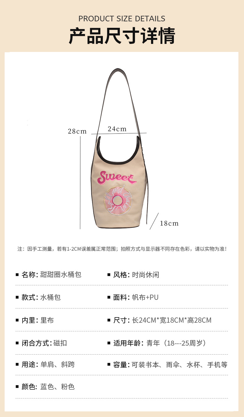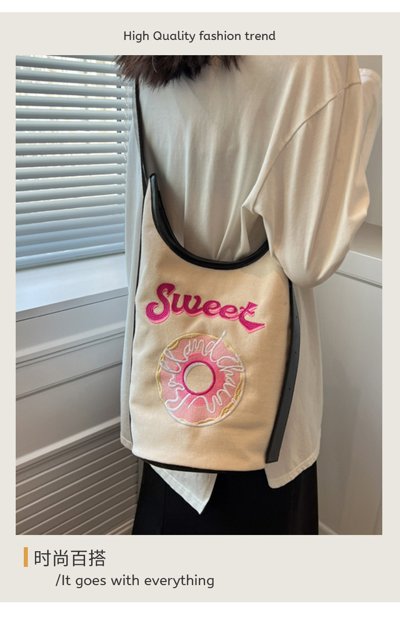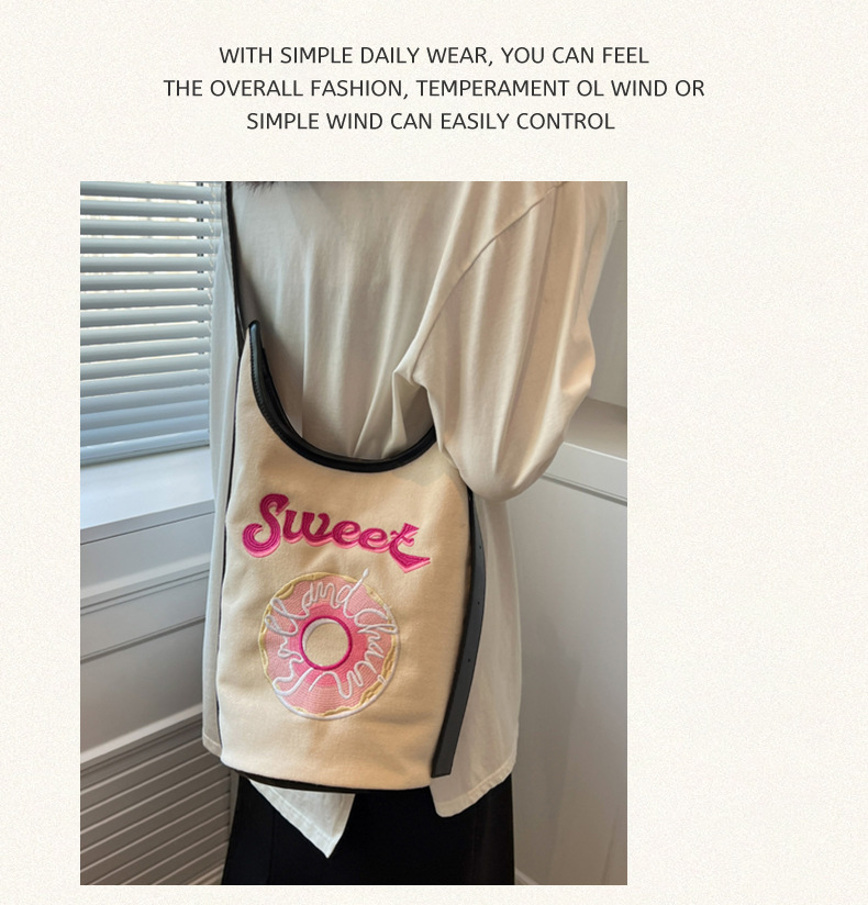 日韩ins甜美甜甜圈单肩包女小众设计时尚百搭水桶包刺绣斜挎女包