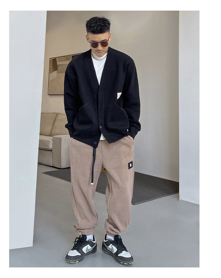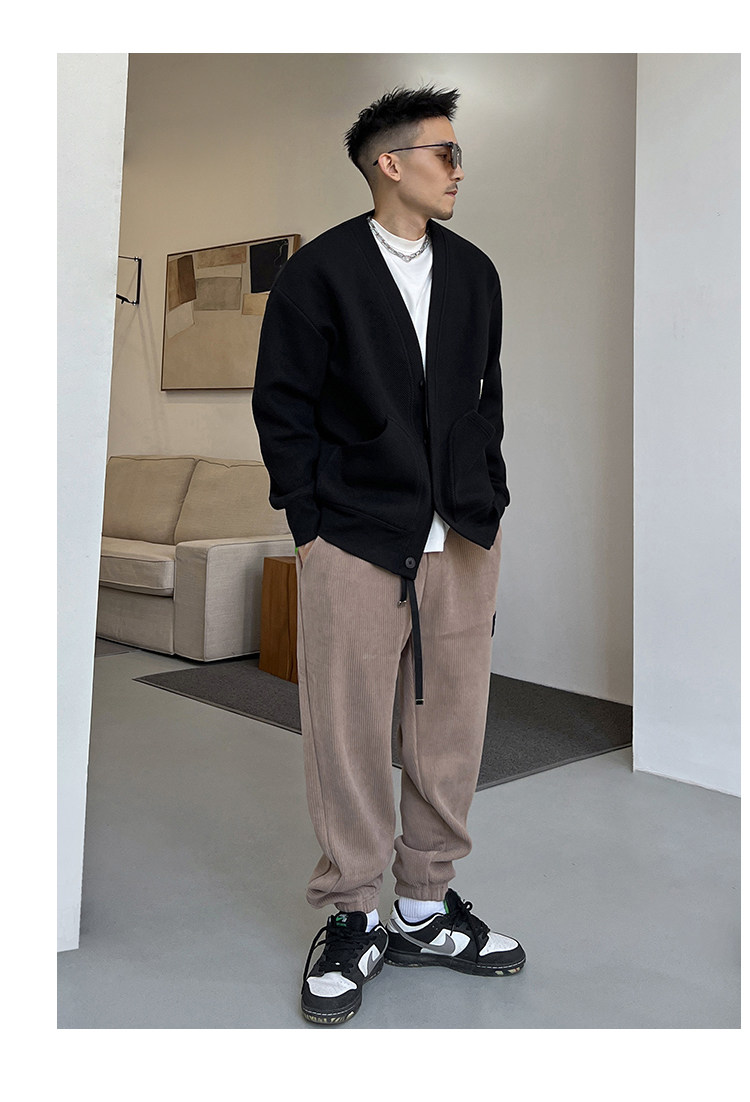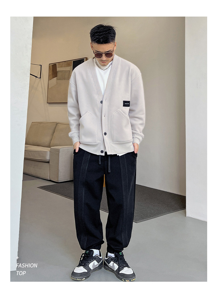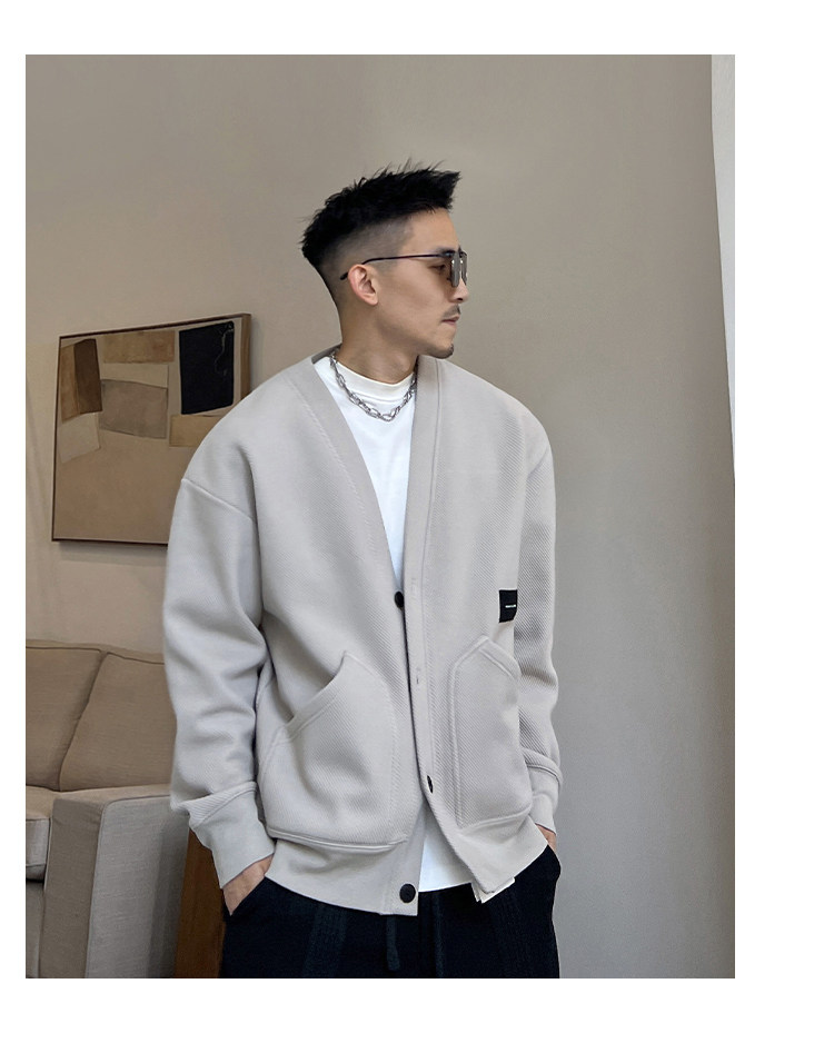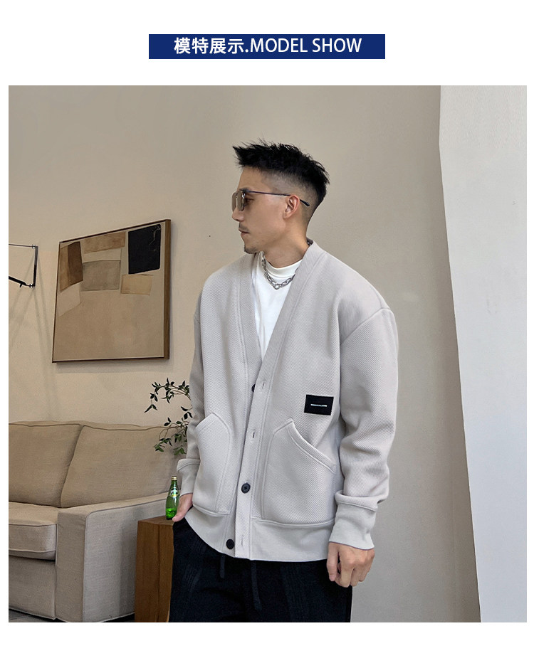 杠叔春秋季男士宽松休闲V领开衫夹克时尚百搭长袖男装帅气外套潮
