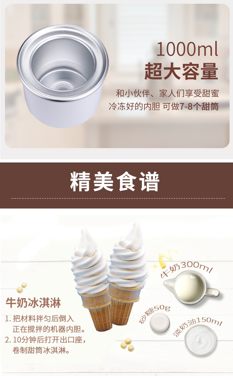 班尼兔冰淇淋机家用自制小型迷你方便快捷大容量DIY全自动甜筒机