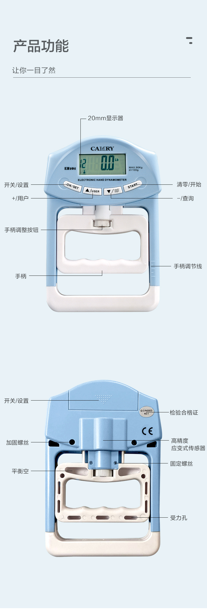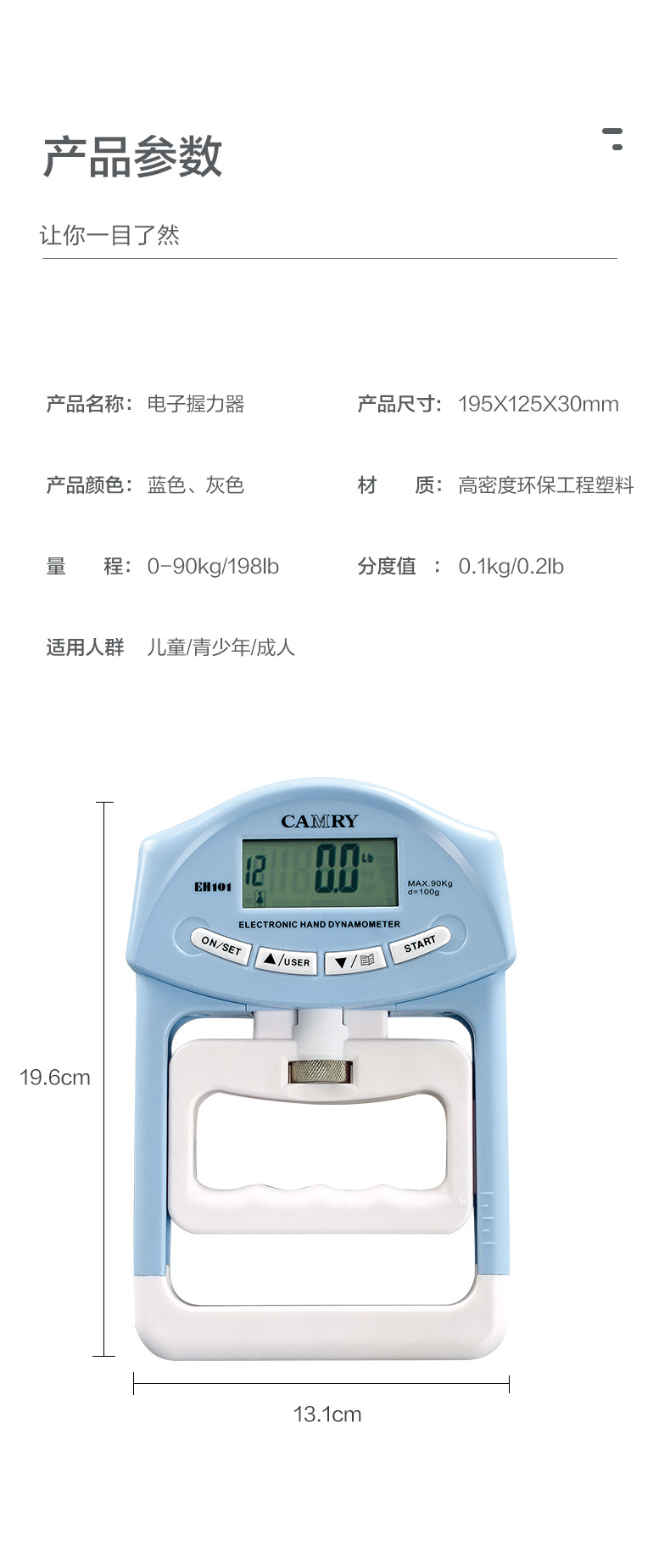 香山EH101电子握力器男女学生中考体育可调节训练器材手力握力计