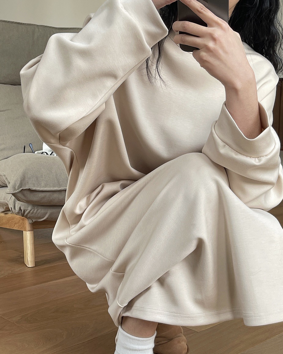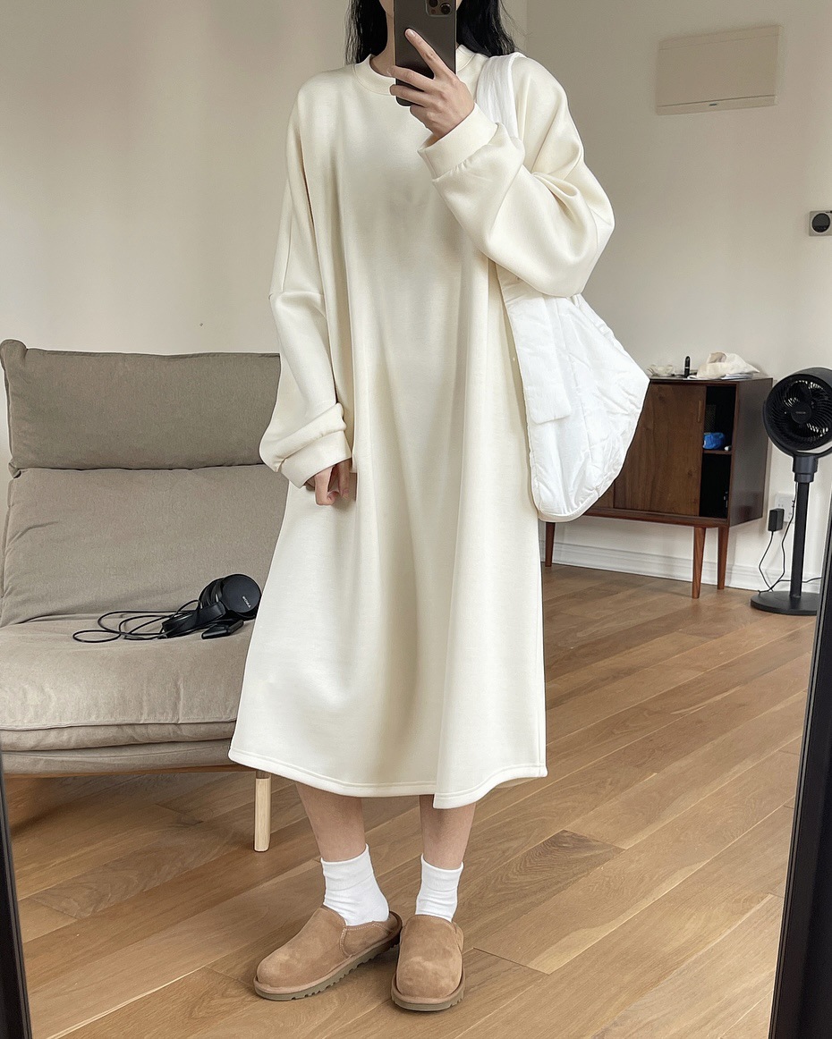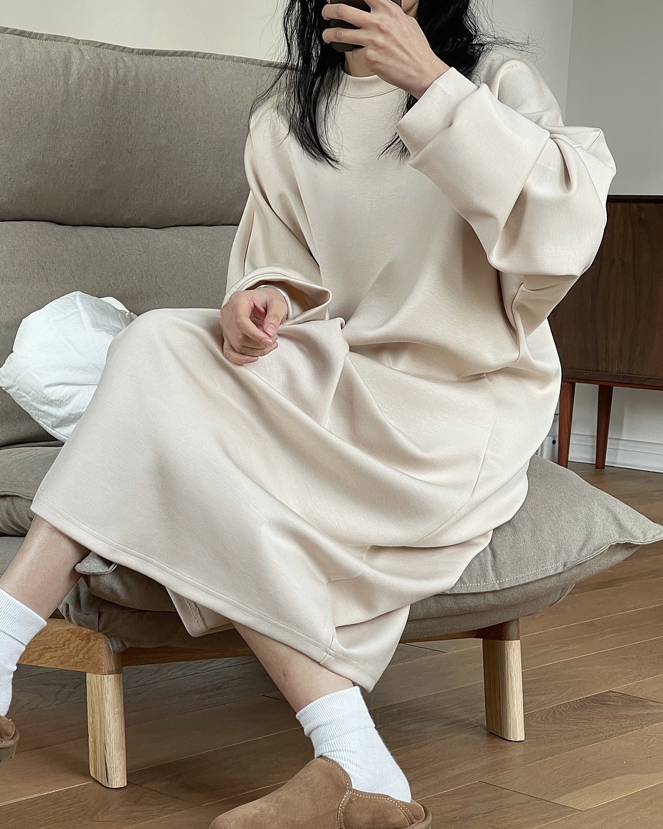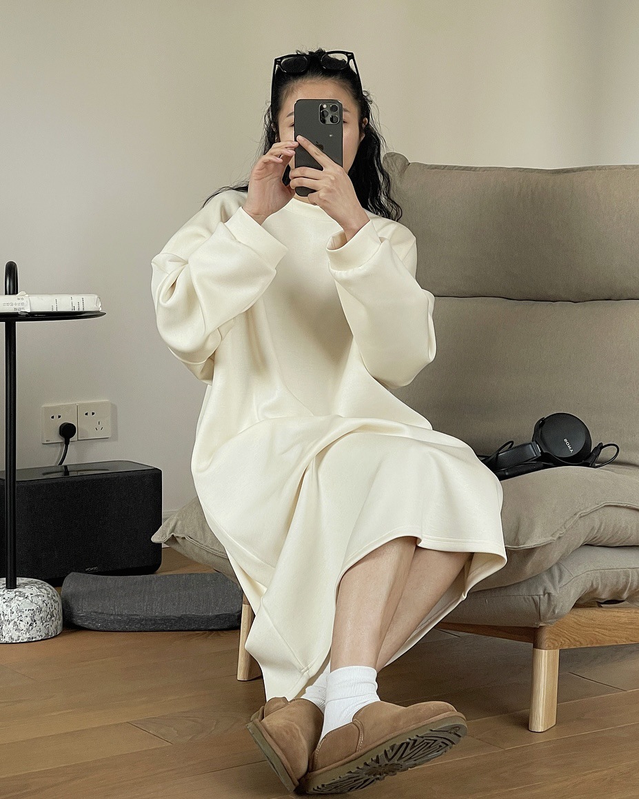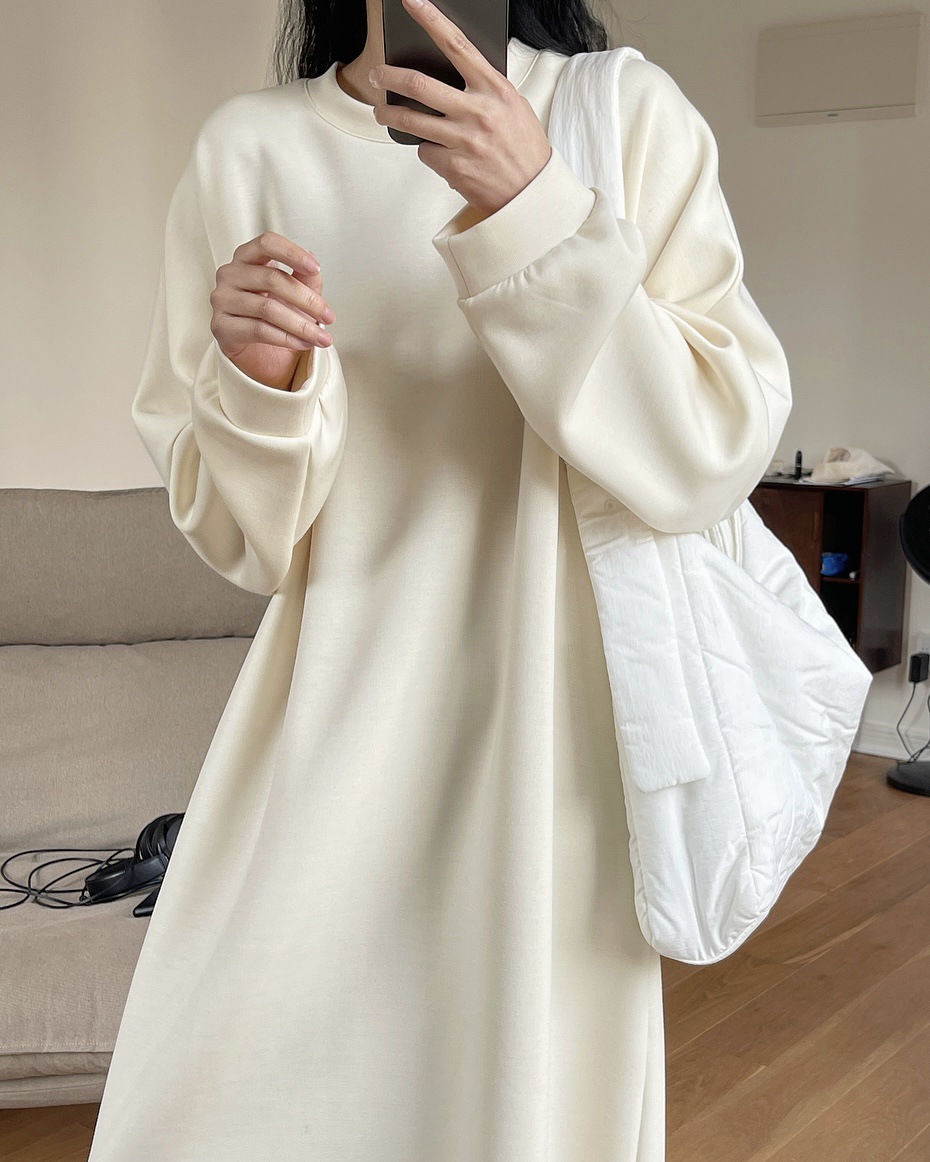 봄 트렌디한 라운드넥 에어레이어 맨투맨 원피스