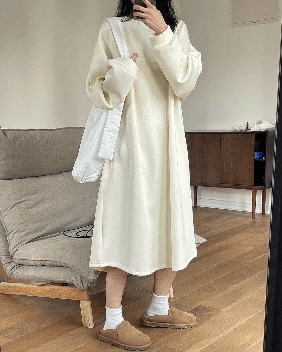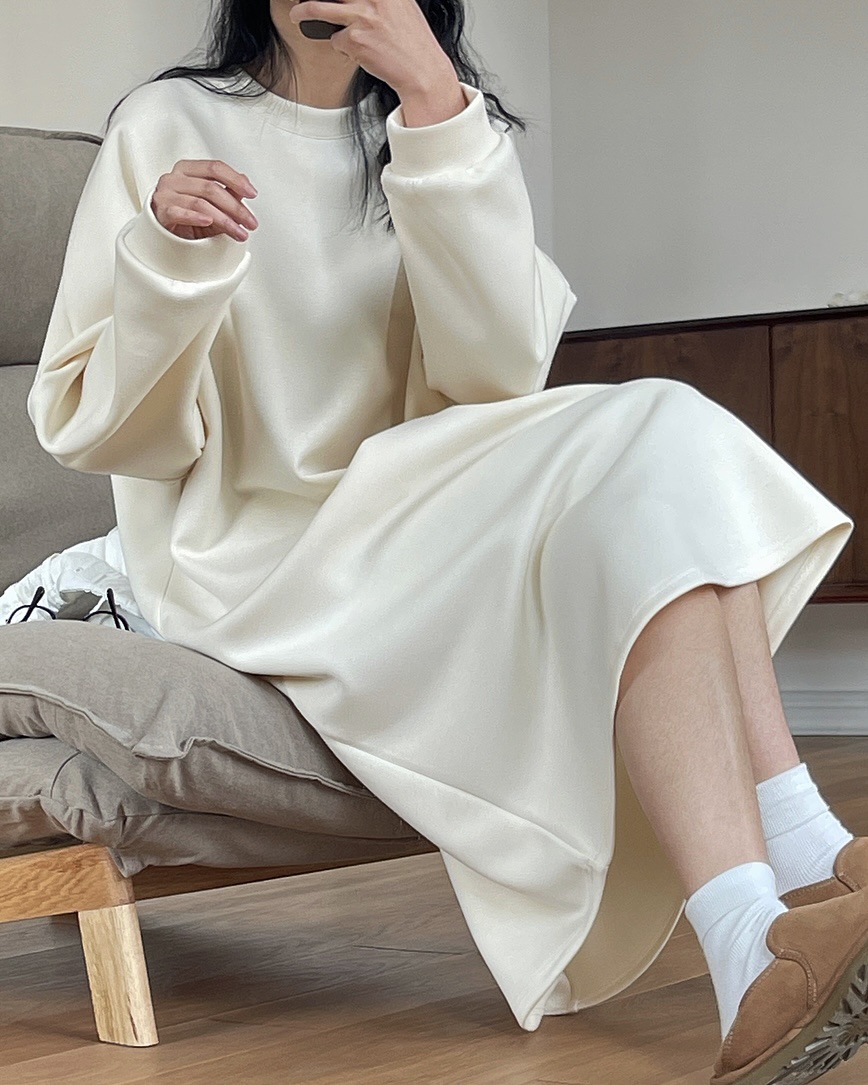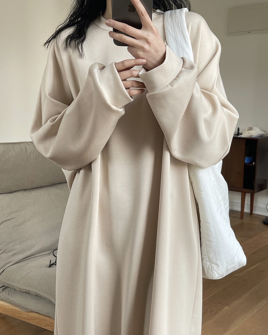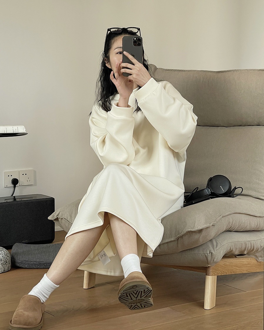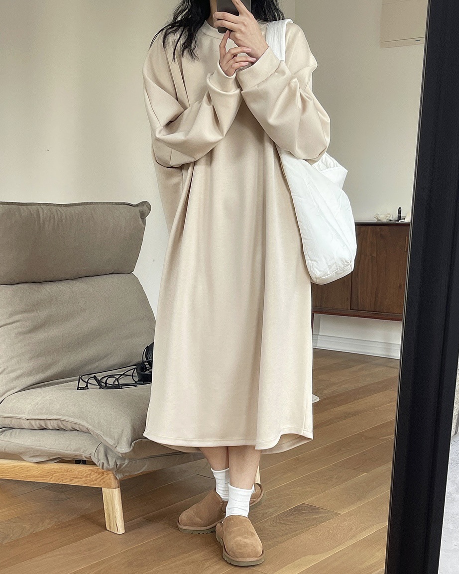 봄 트렌디한 라운드넥 에어레이어 맨투맨 원피스