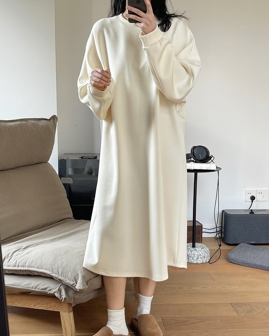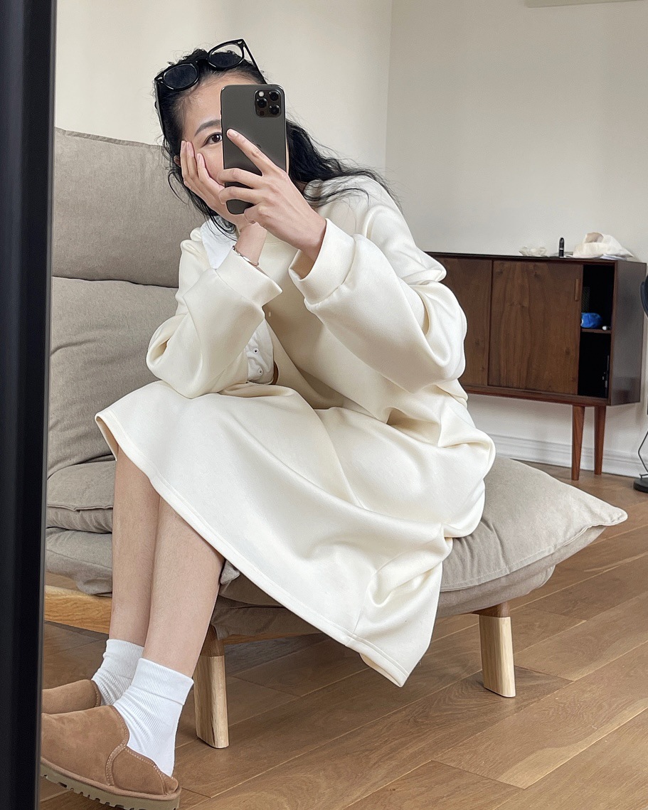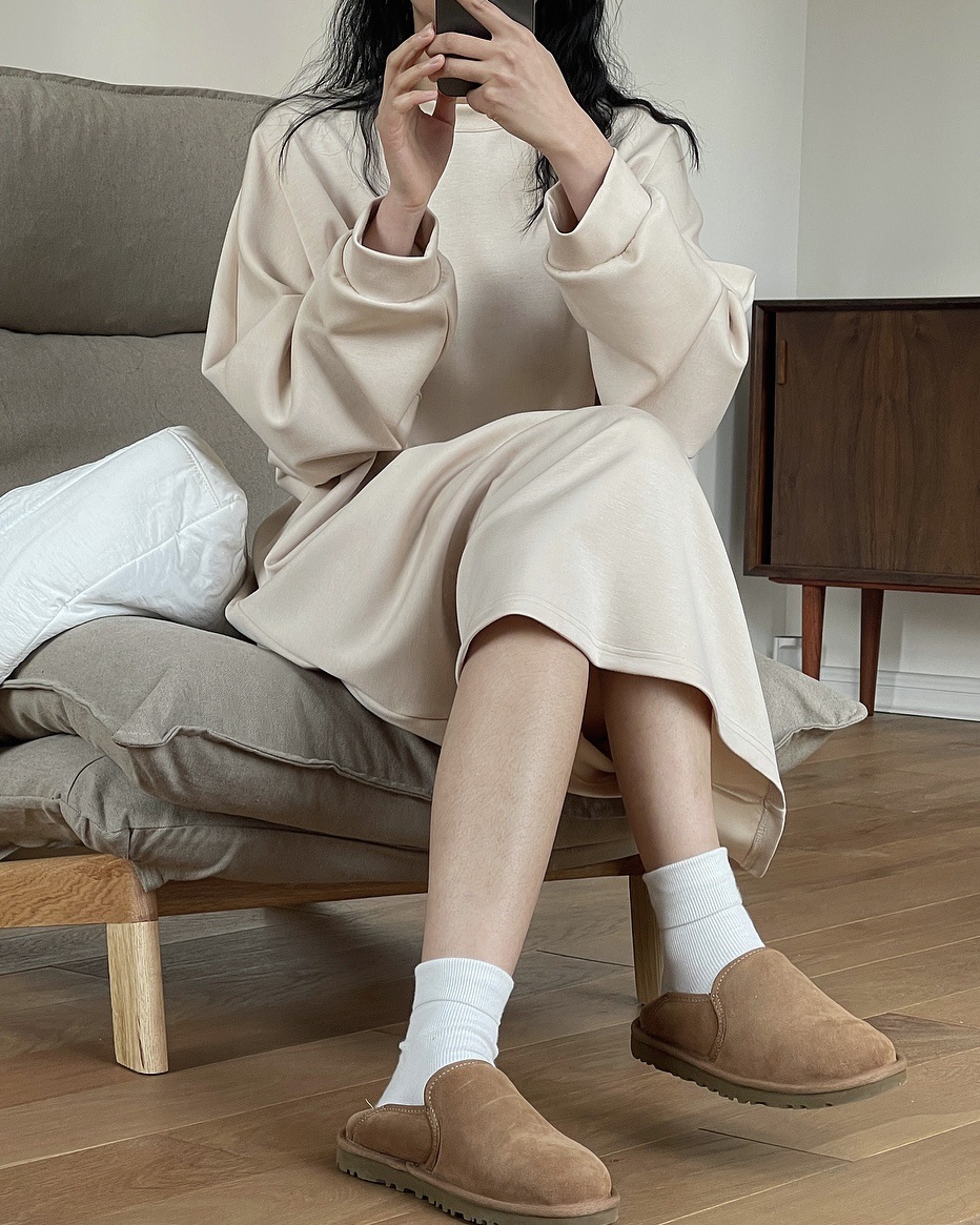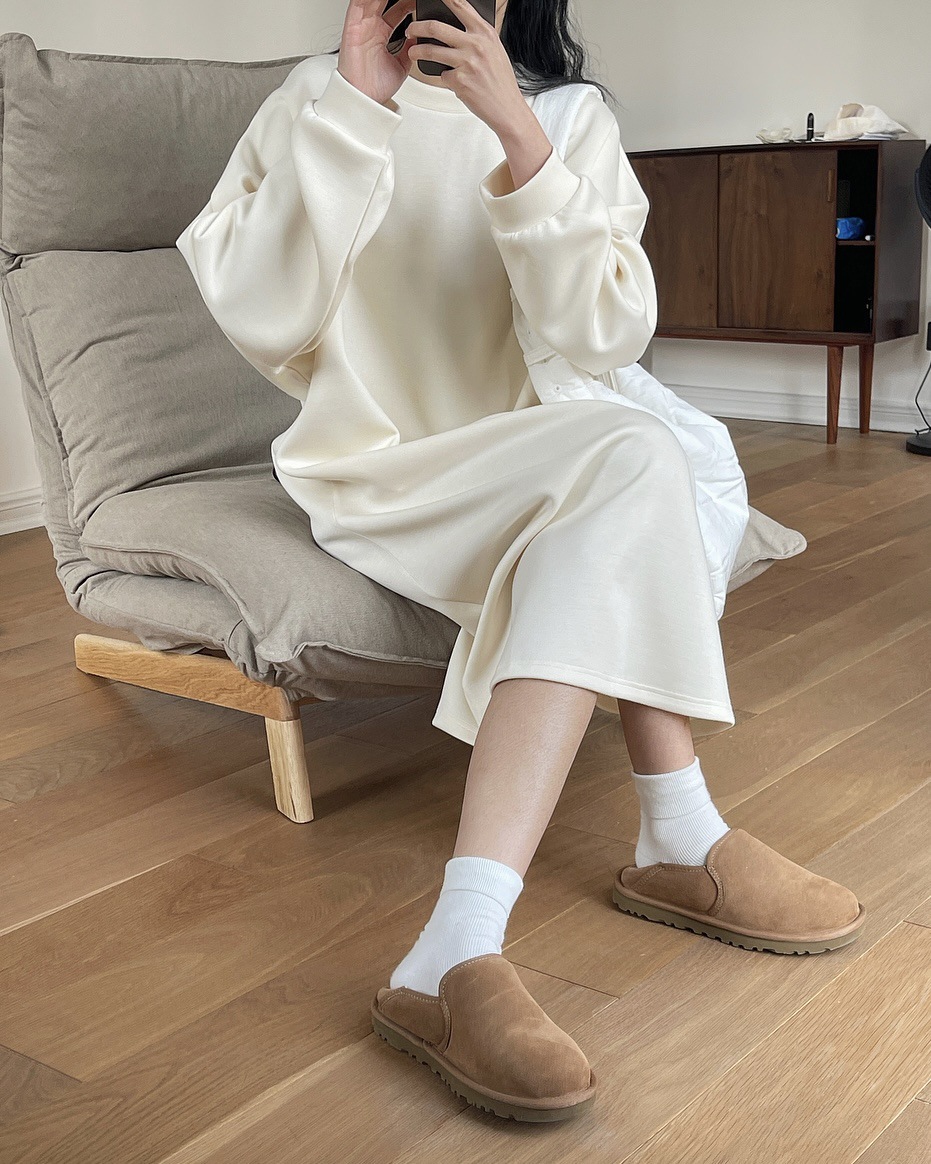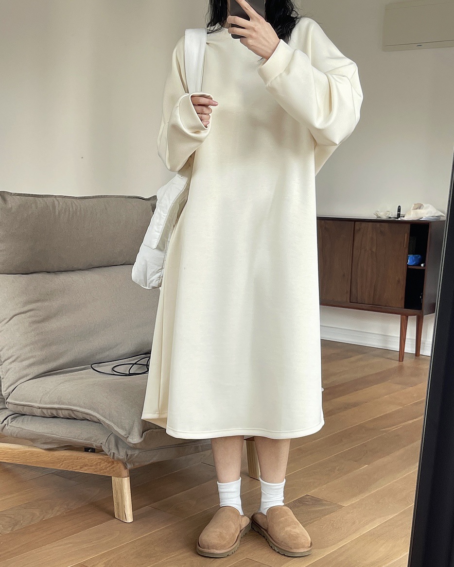 봄 트렌디한 라운드넥 에어레이어 맨투맨 원피스