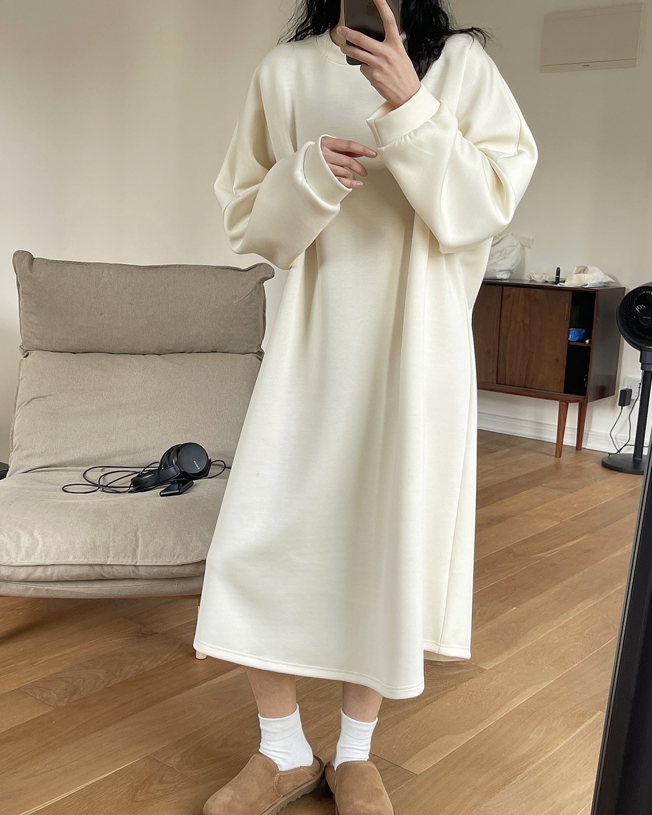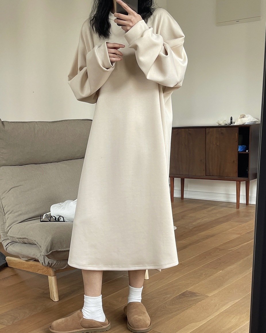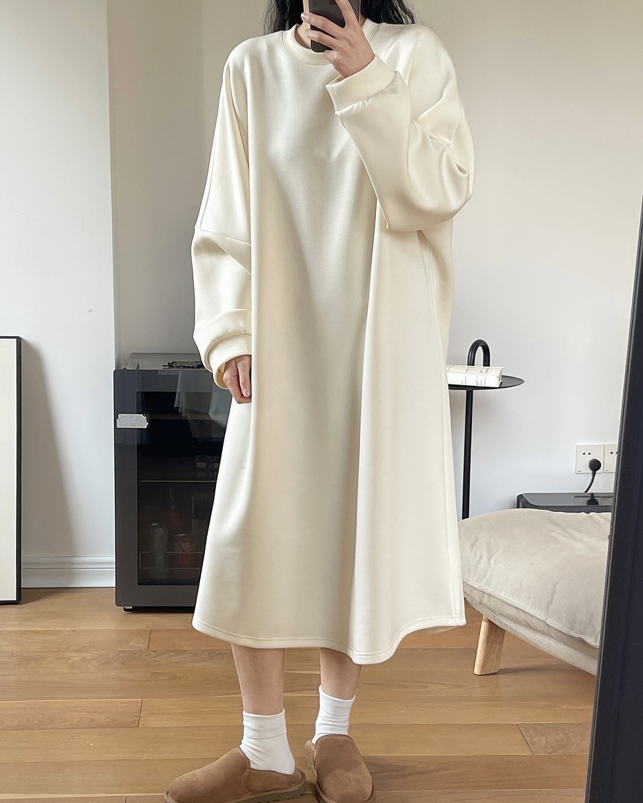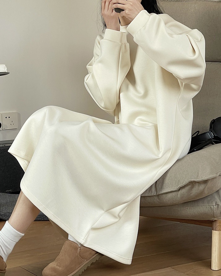 卢浮春季新款韩版时髦圆领空气层卫衣连衣裙宽松休闲显瘦中长裙女
