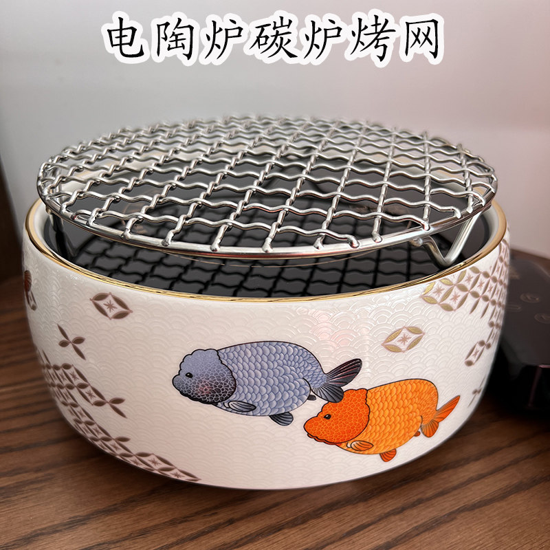圆形不锈钢电陶炉炭炉烤网围炉煮茶迷你烧烤网带脚空气炸锅烤肉网