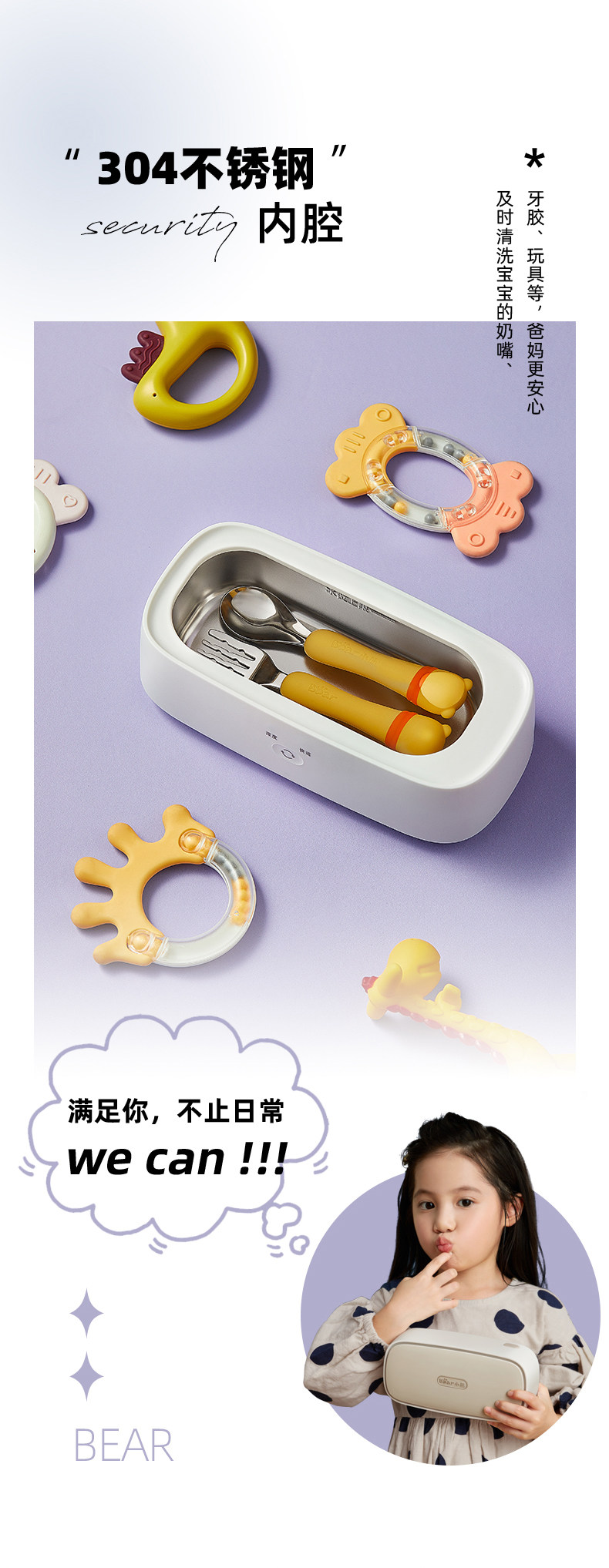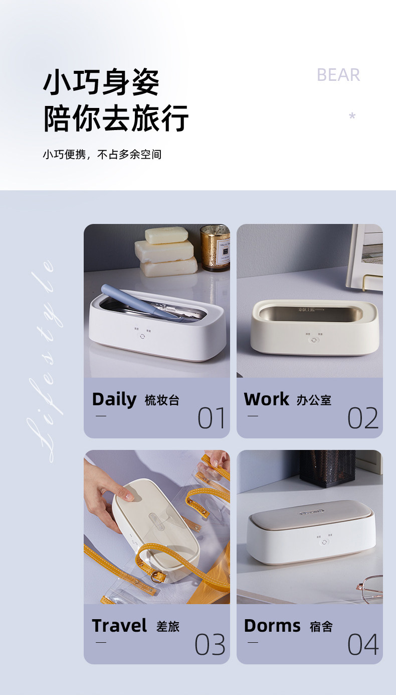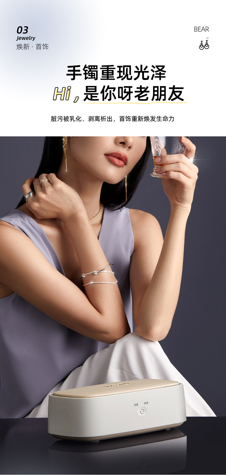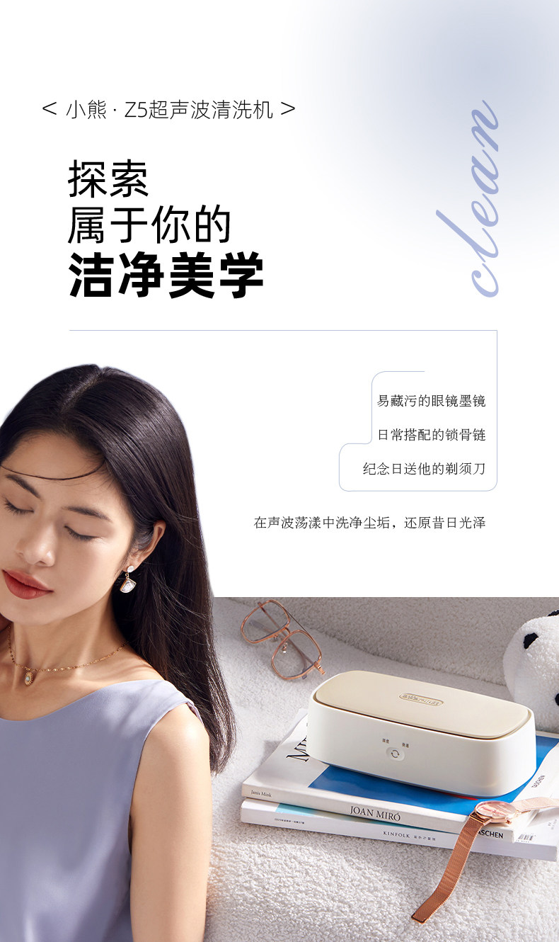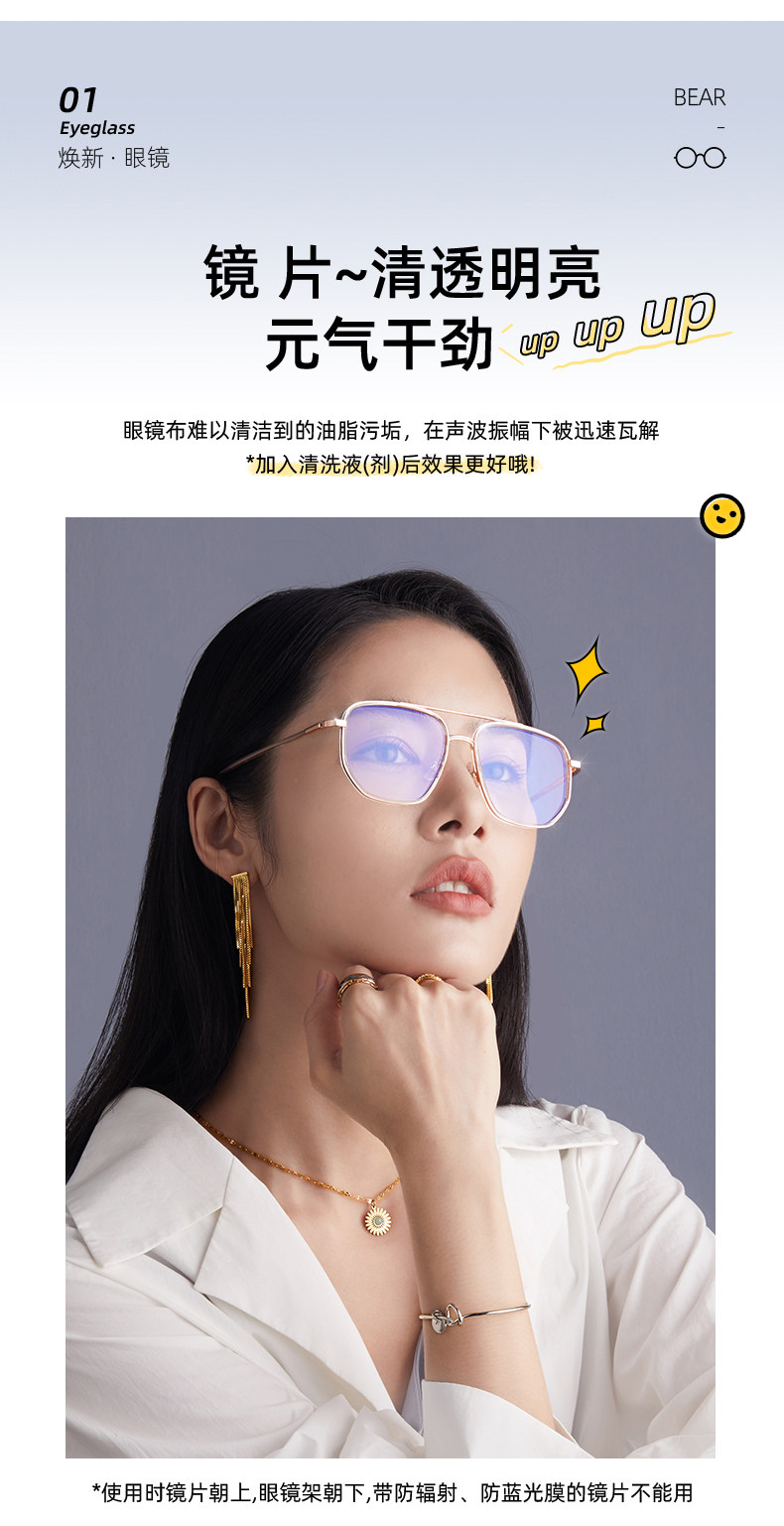 小熊超声波清洗机家用洗眼镜机清洁器牙套手表首饰自动清洗器眼睛