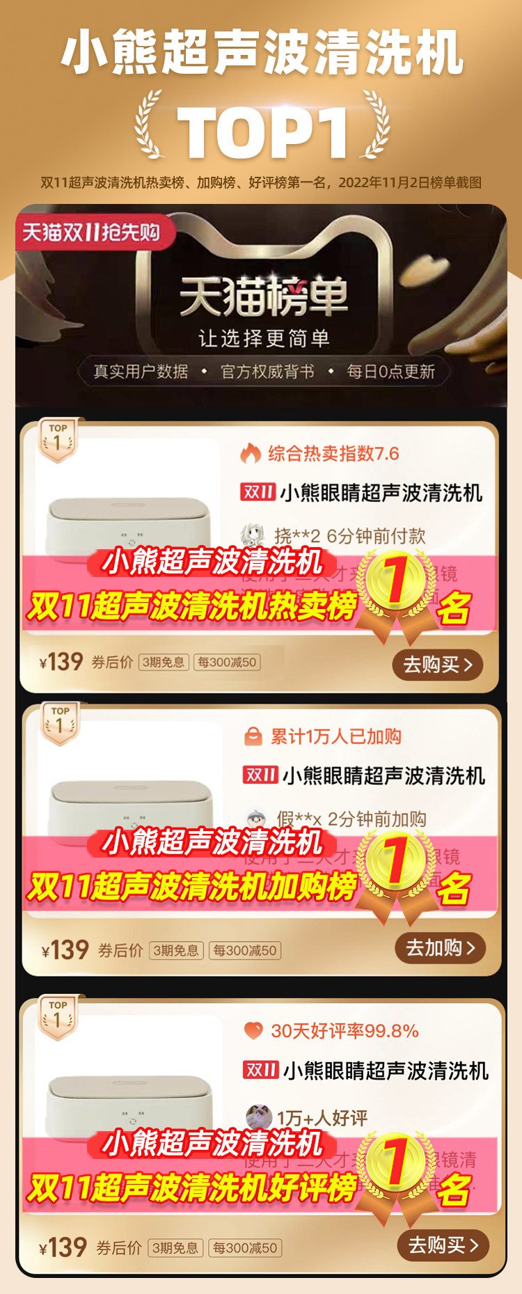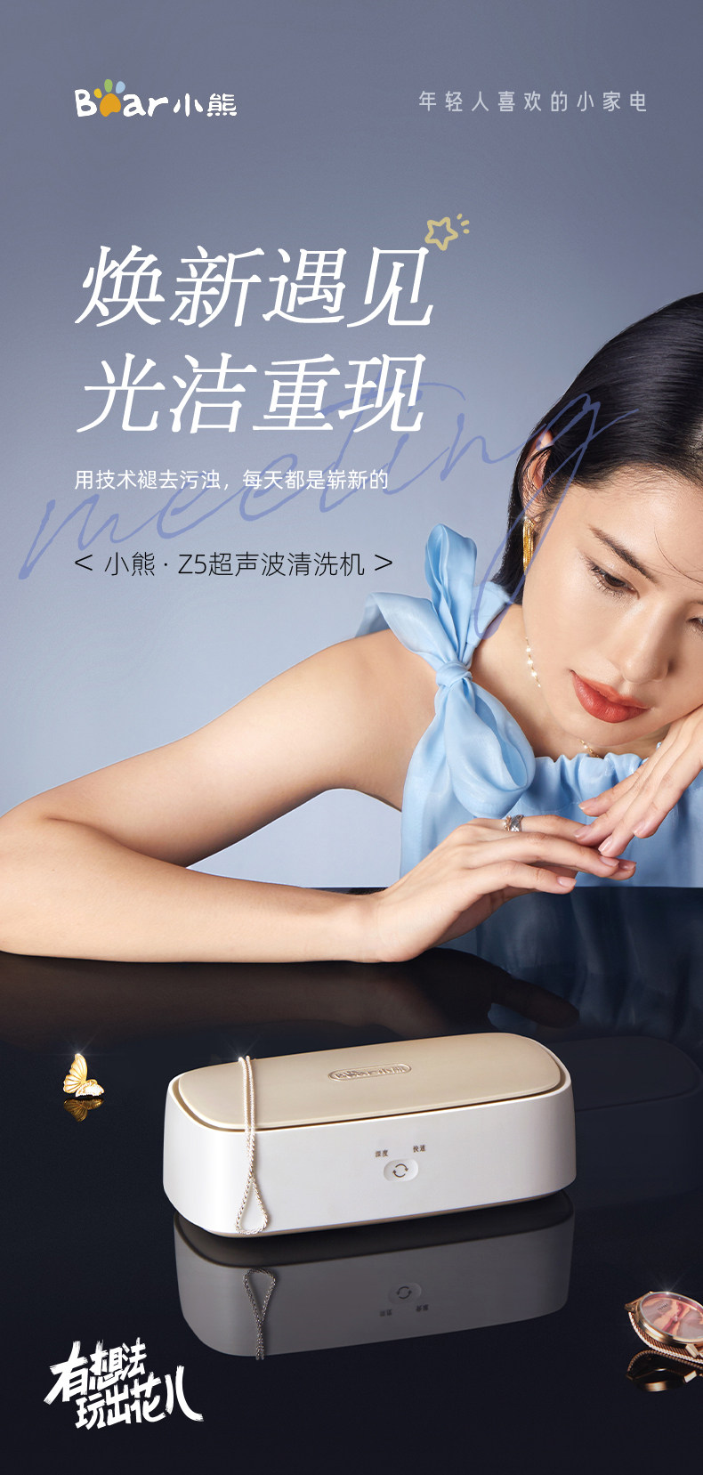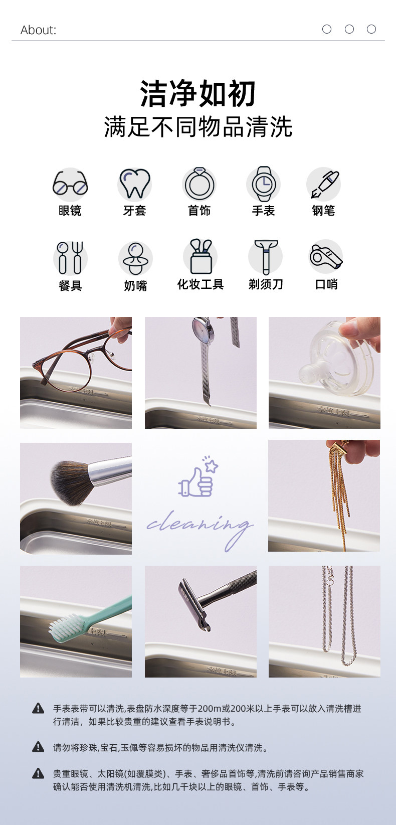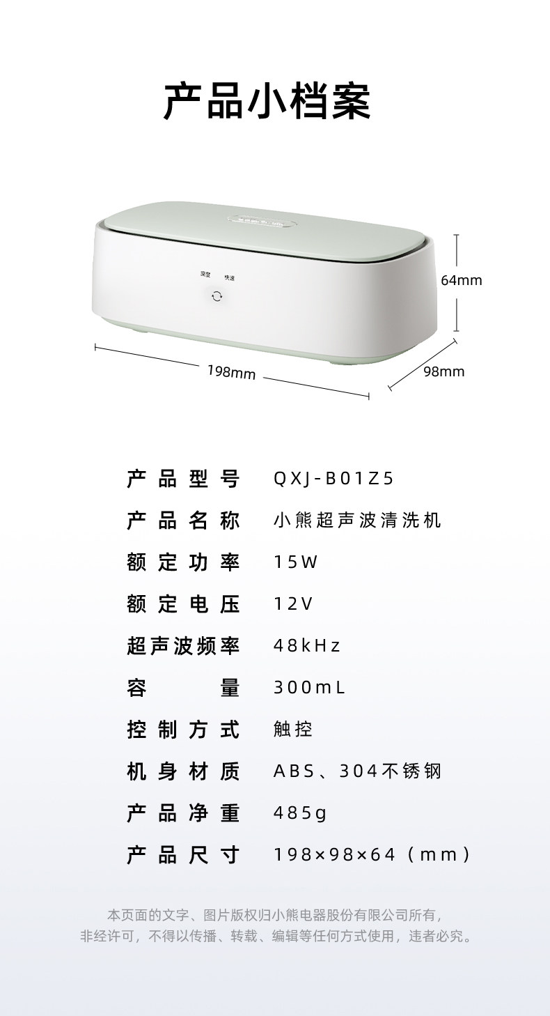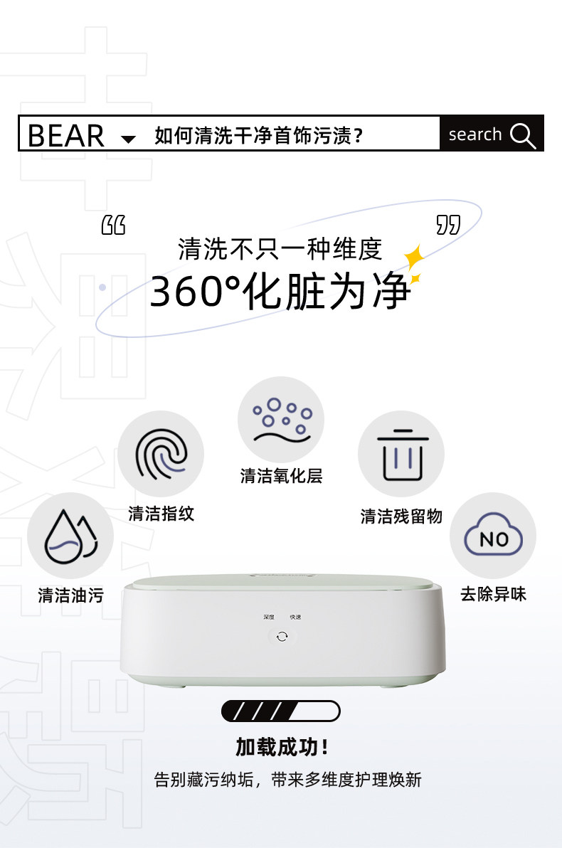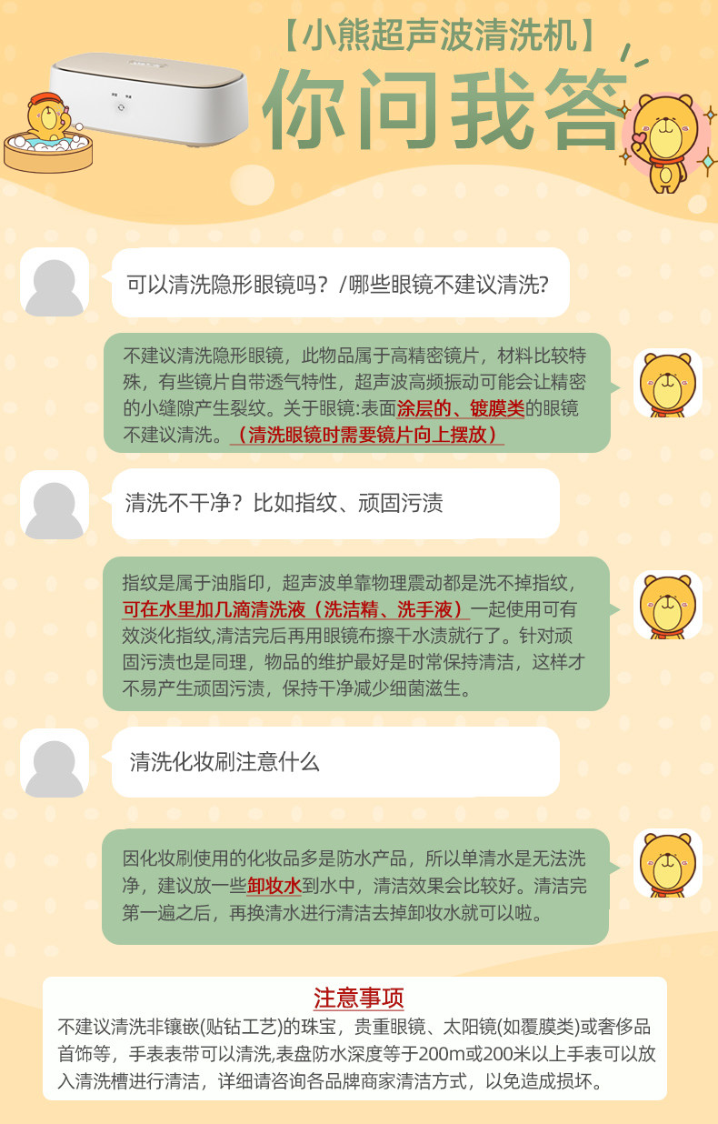 小熊超声波清洗机家用洗眼镜机清洁器牙套手表首饰自动清洗器眼睛