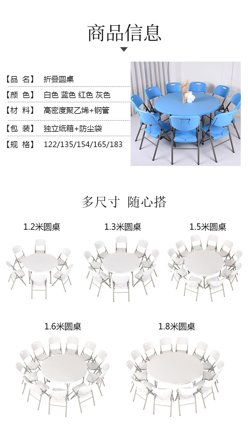 可收折叠圆桌餐桌家用圆形塑料大圆台园桌面椅歺桌吃饭桌拆叠桌子