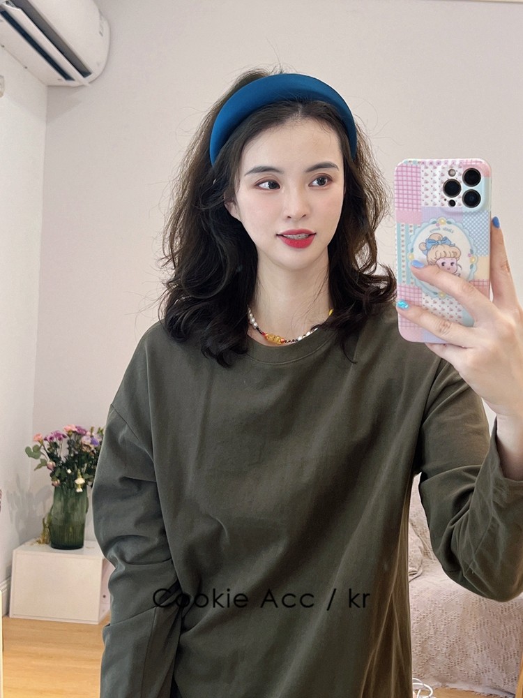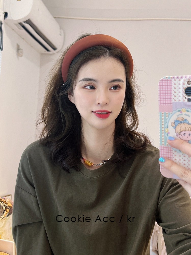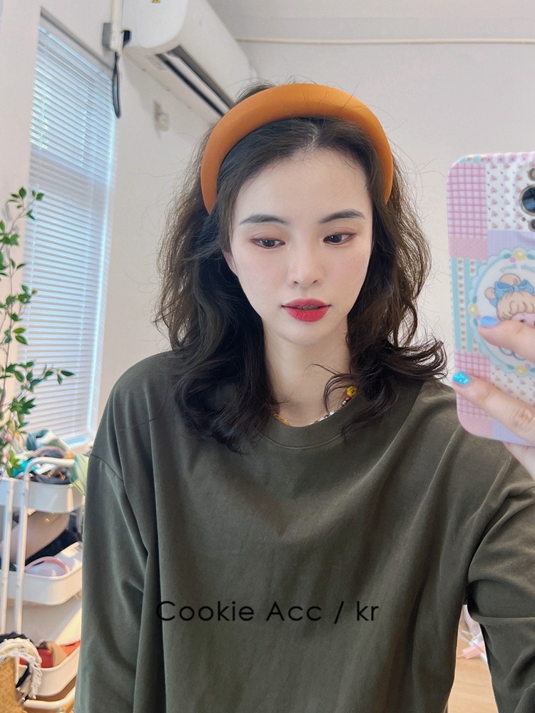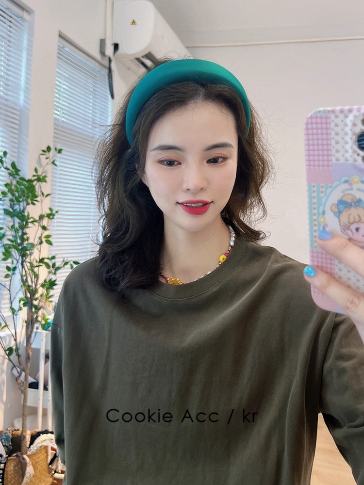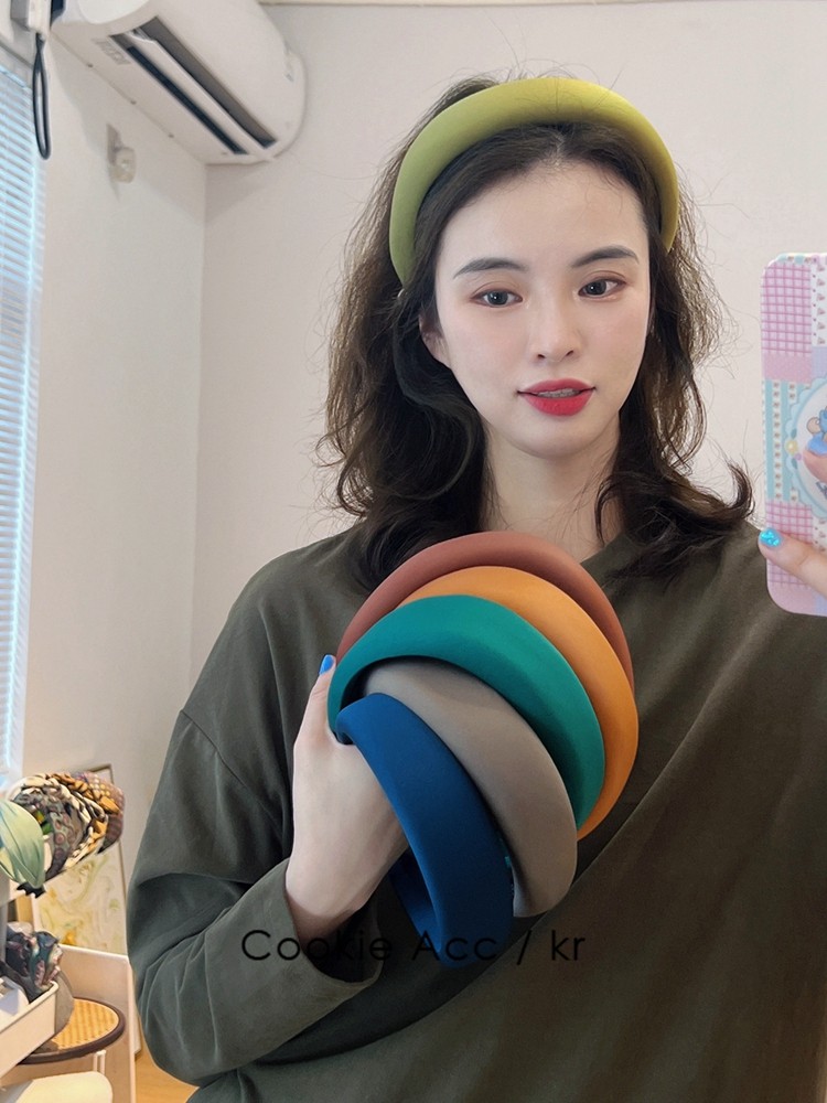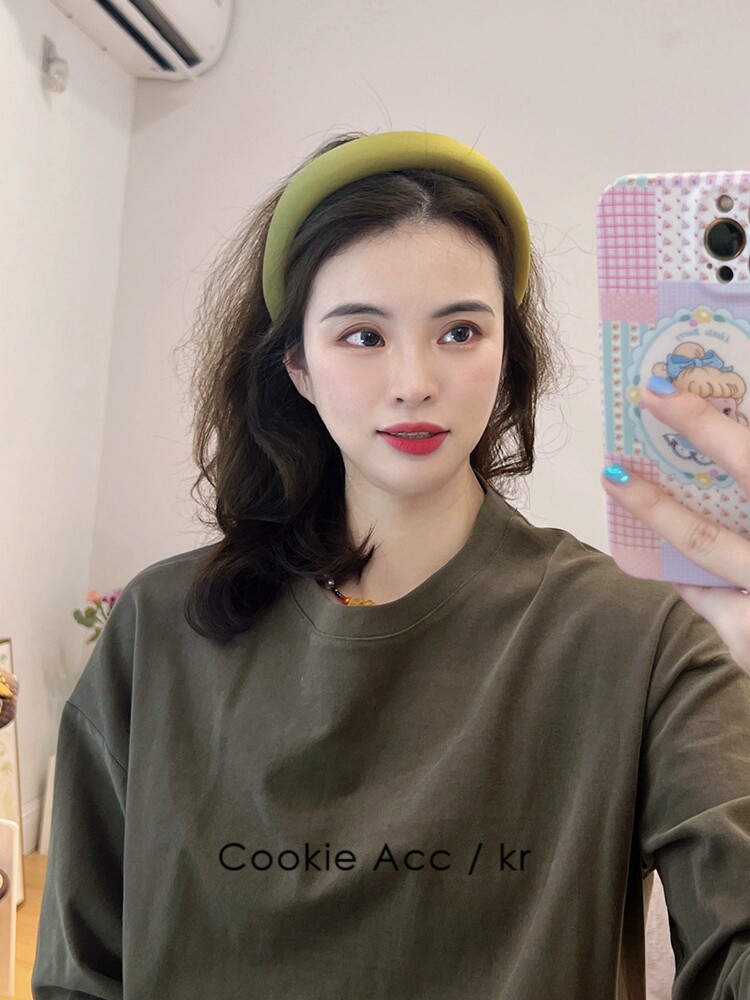 cookie饰品韩国新款高级感缎面绿色时尚海绵发箍高颅顶头箍压发