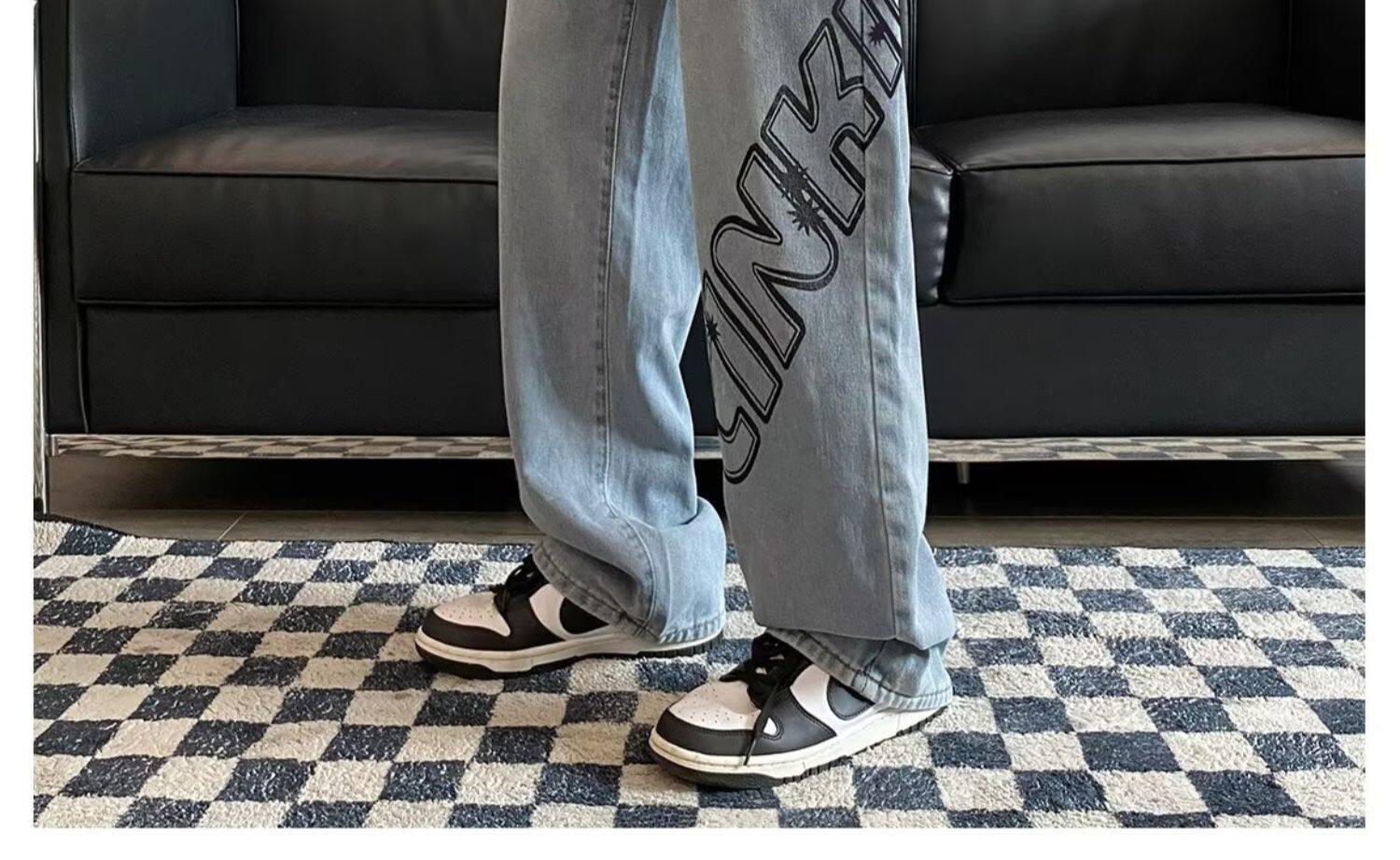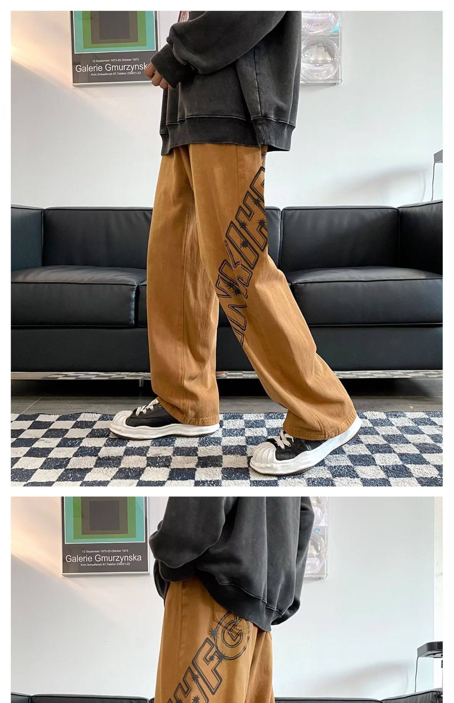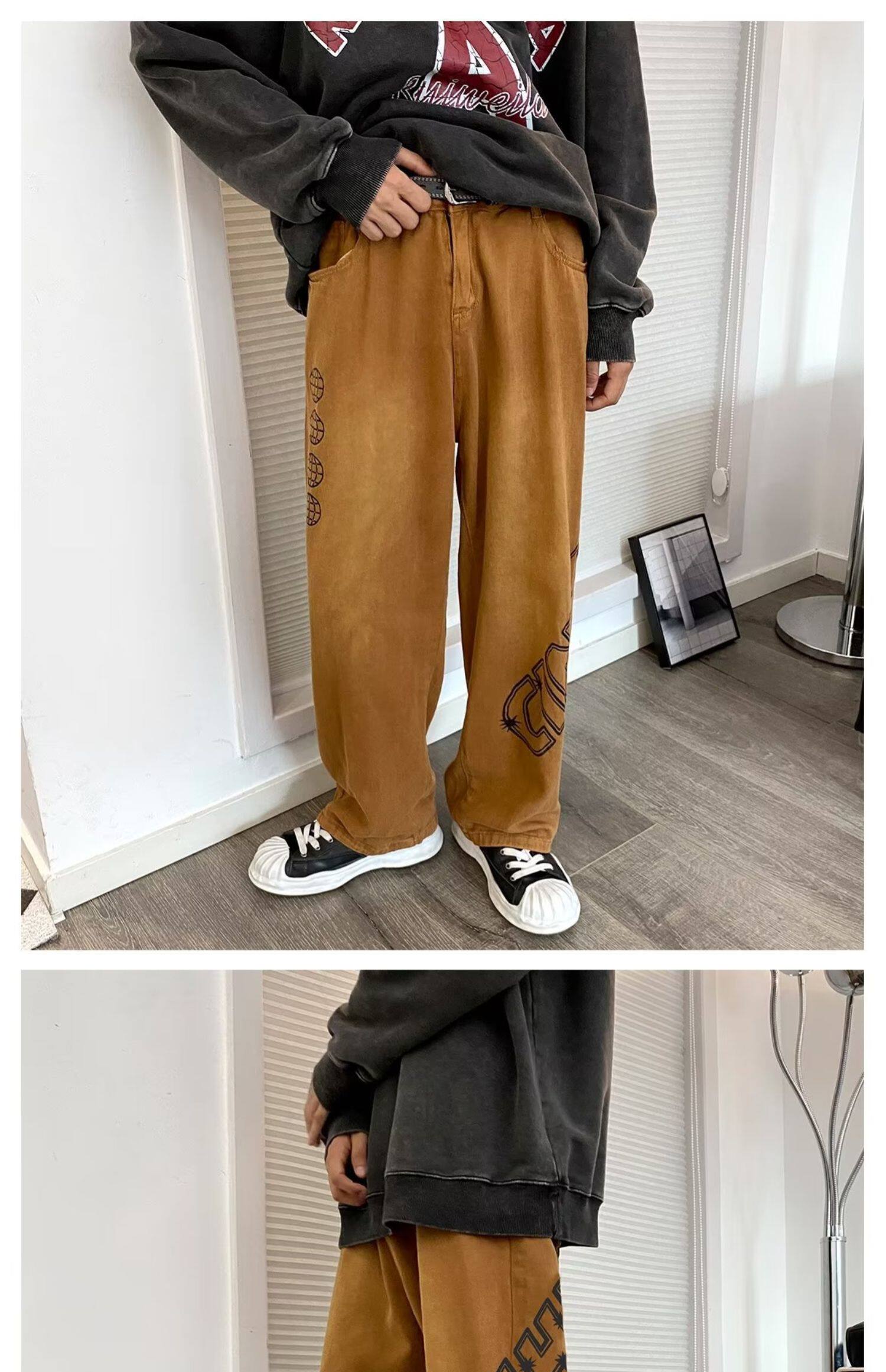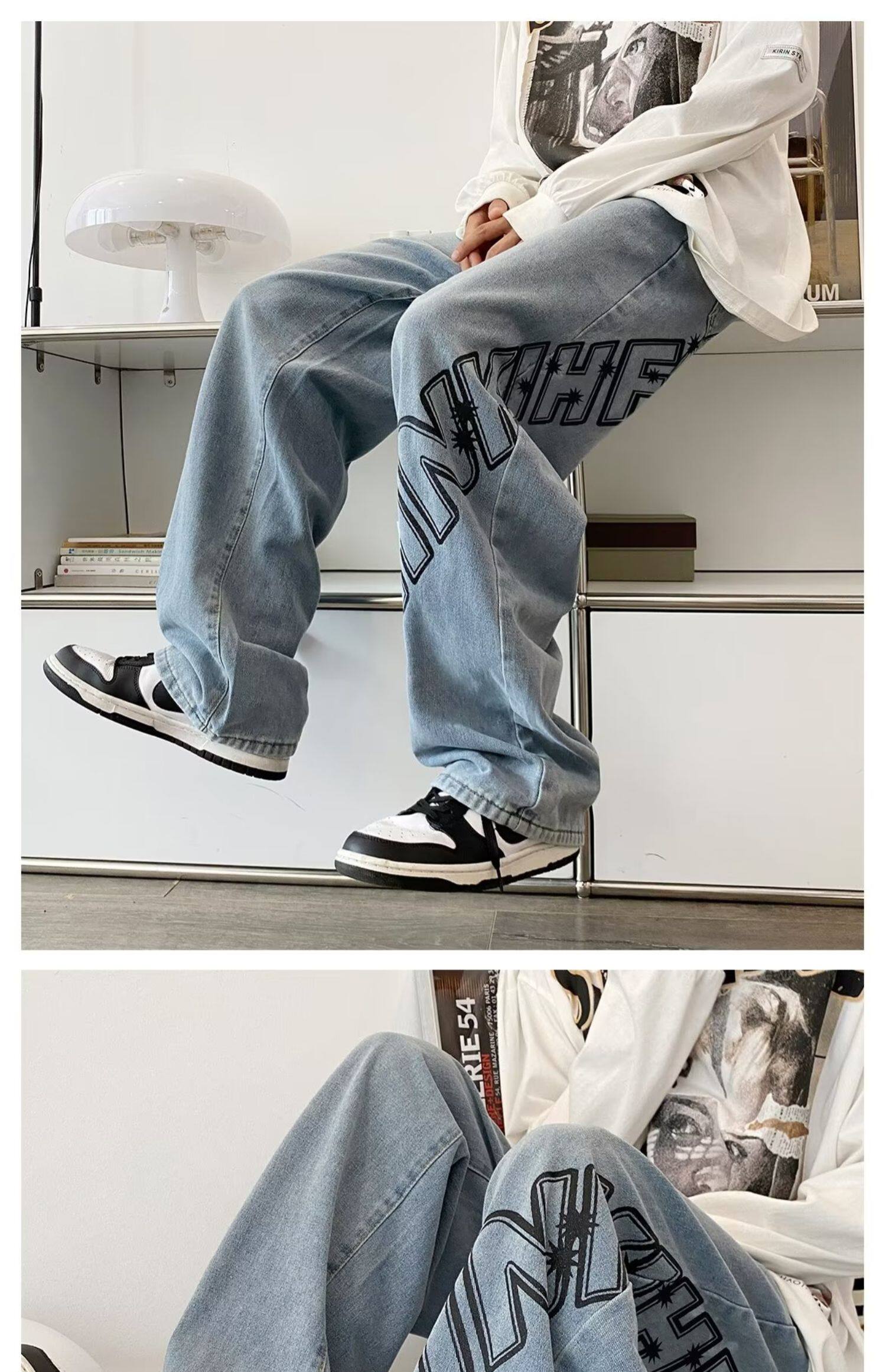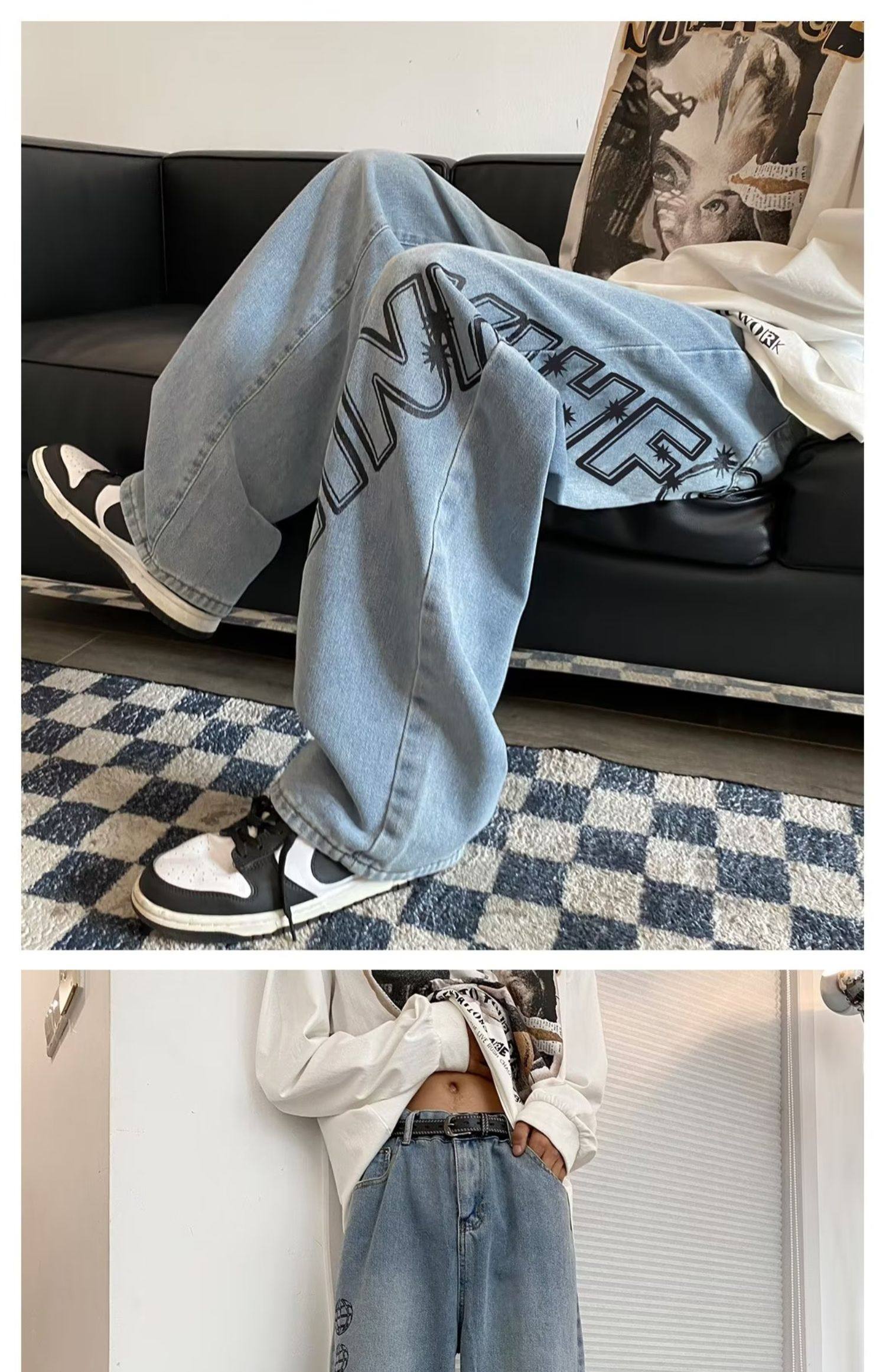 古着牛仔裤vintage港风春秋高街潮流印花字母男裤子hiphop阔腿裤