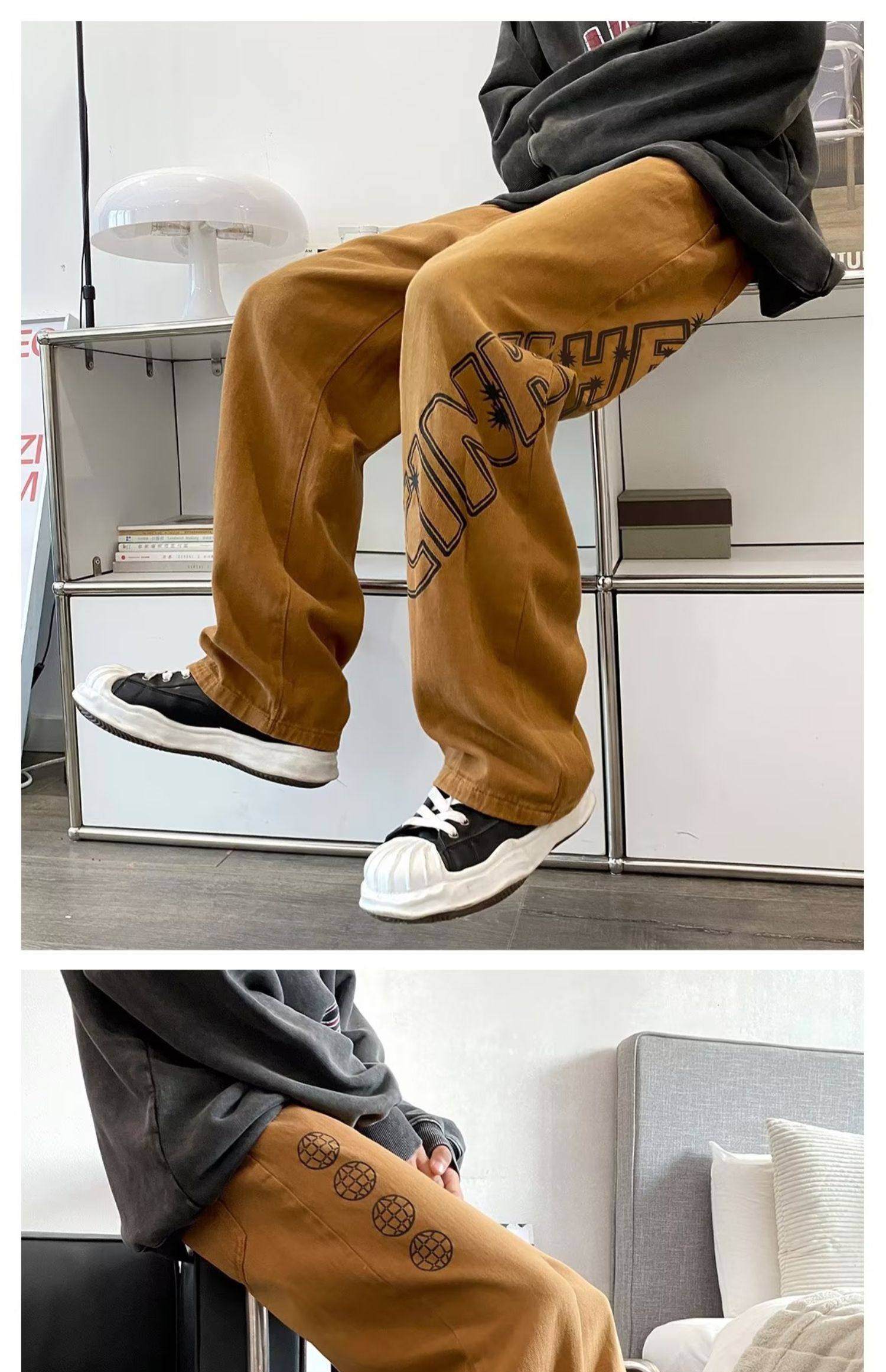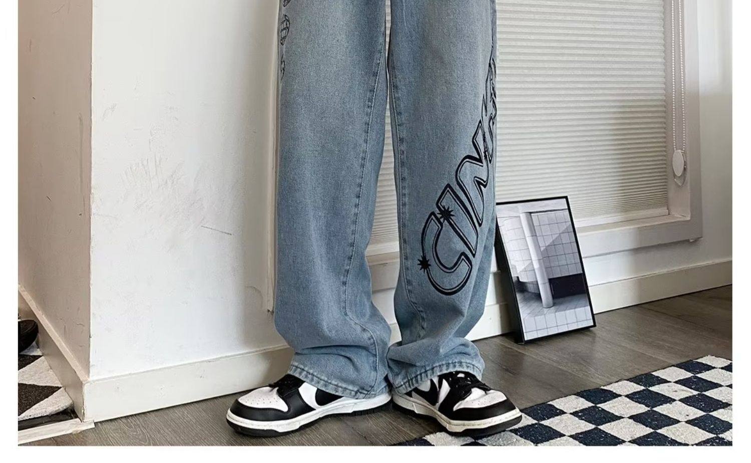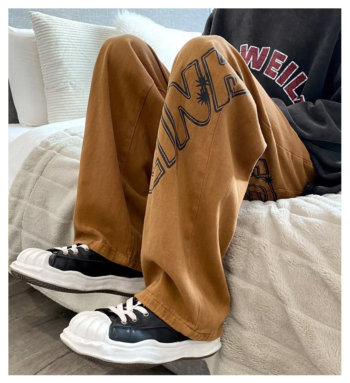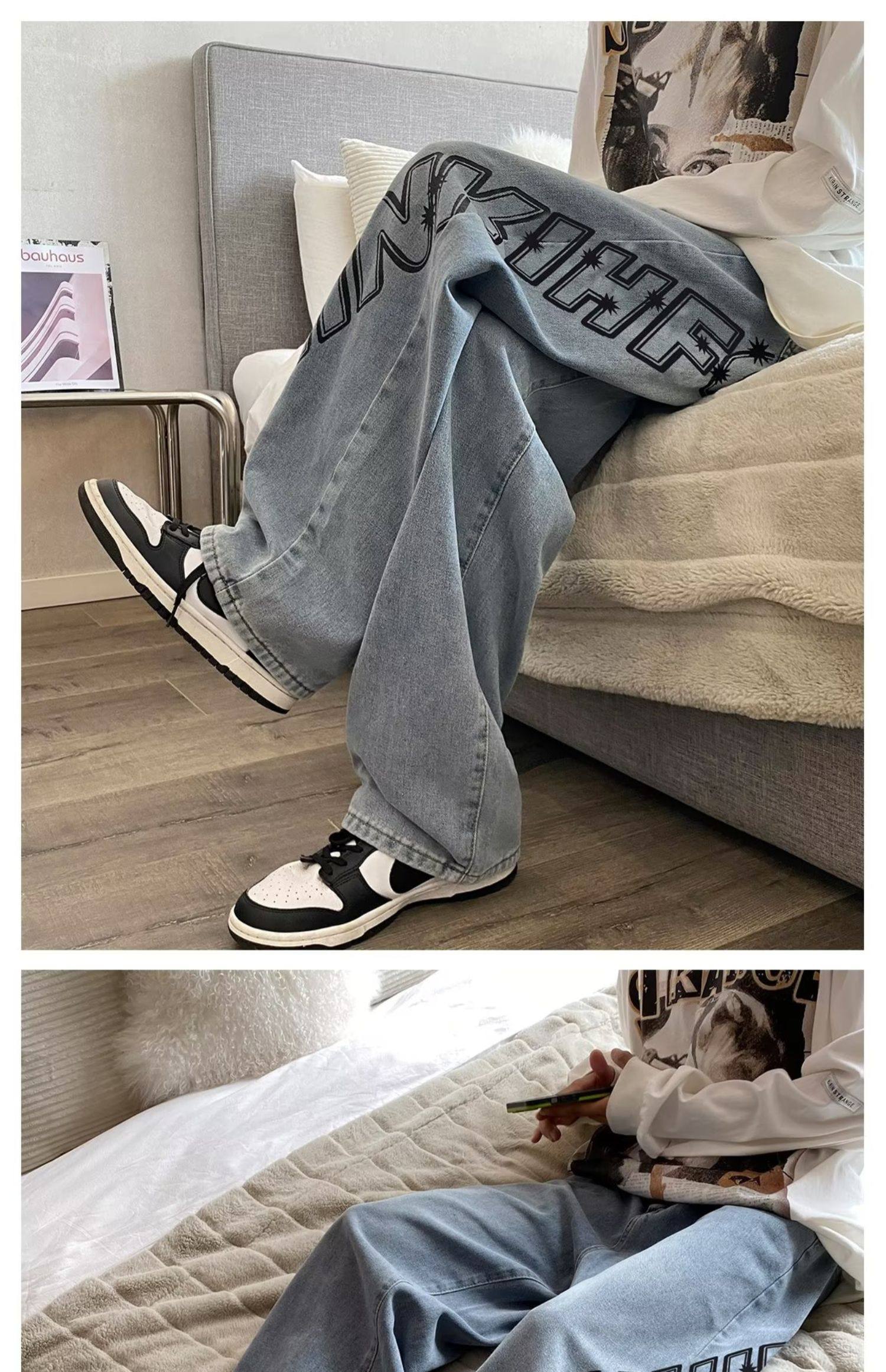 古着牛仔裤vintage港风春秋高街潮流印花字母男裤子hiphop阔腿裤