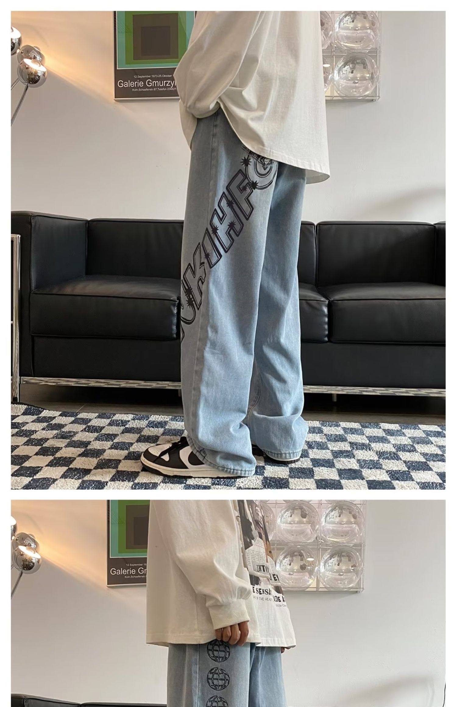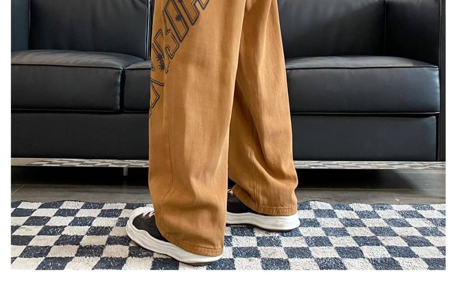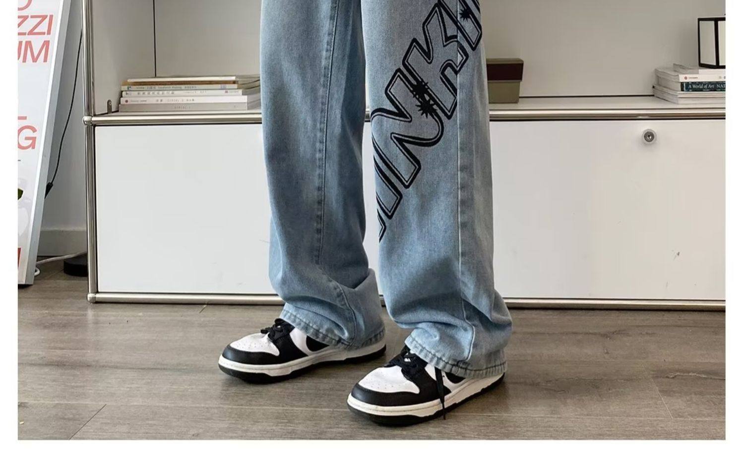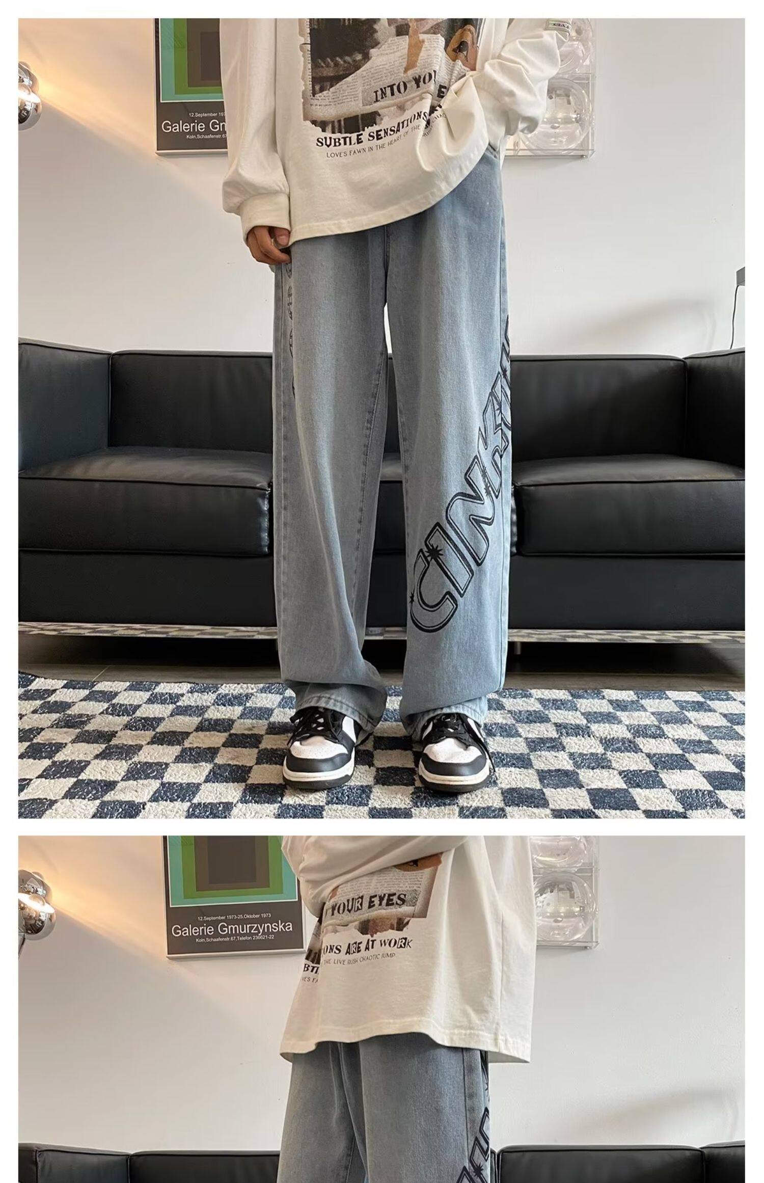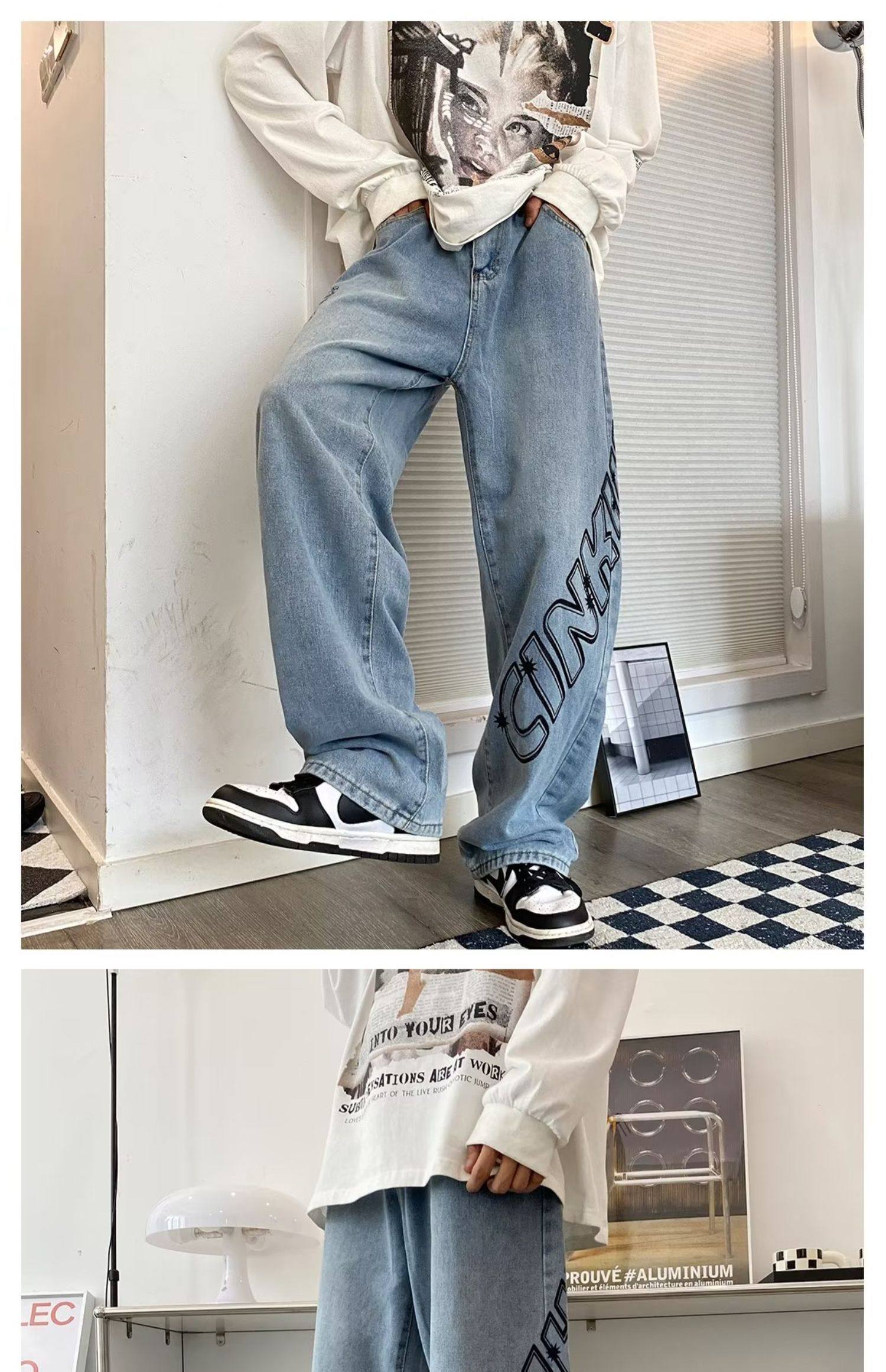 古着牛仔裤vintage港风春秋高街潮流印花字母男裤子hiphop阔腿裤