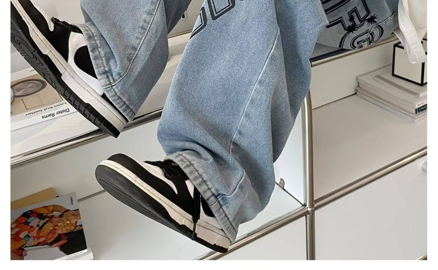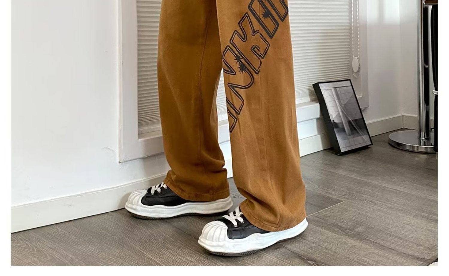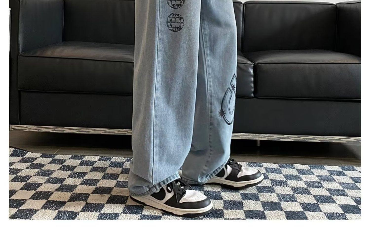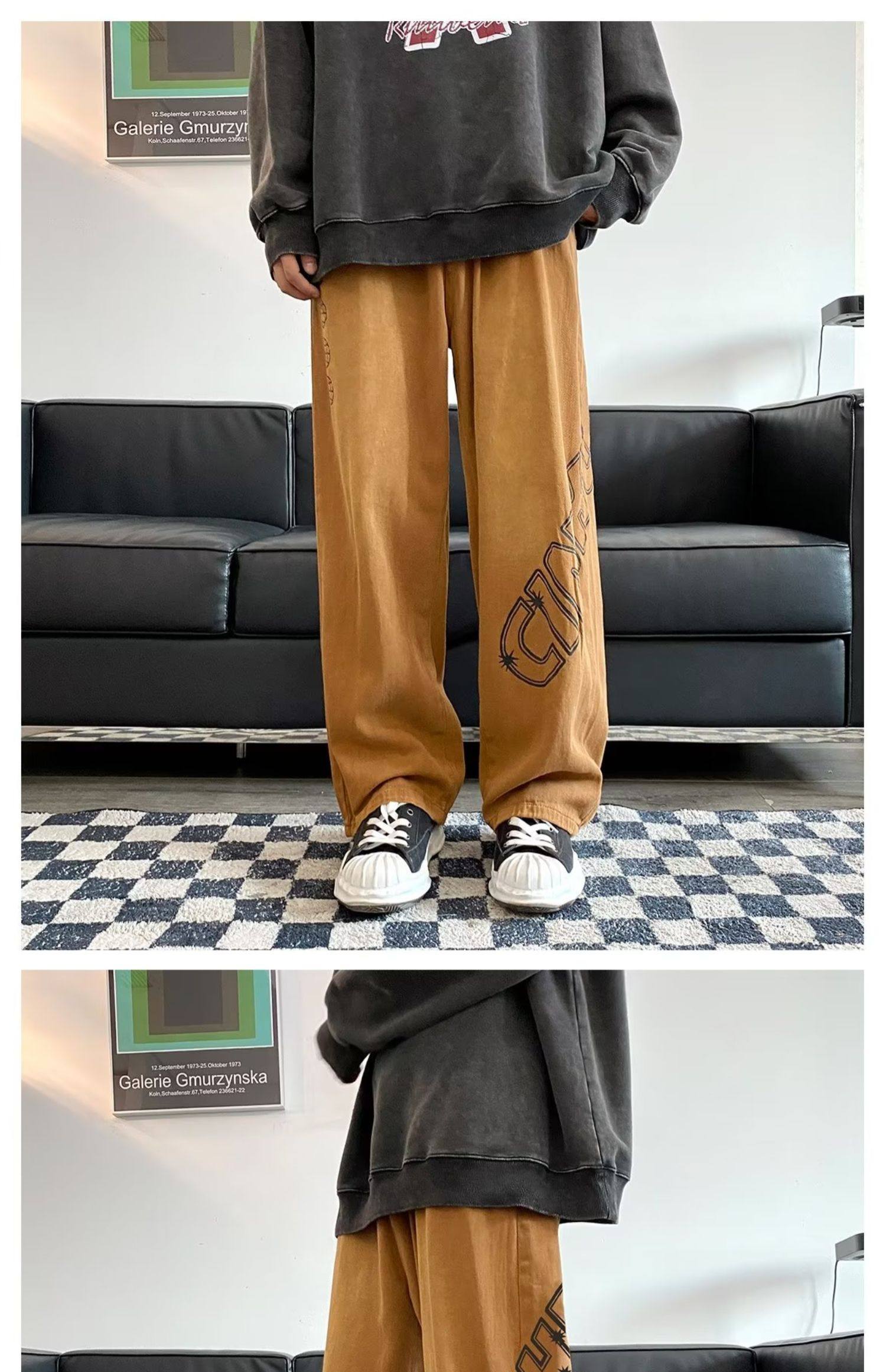 古着牛仔裤vintage港风春秋高街潮流印花字母男裤子hiphop阔腿裤
