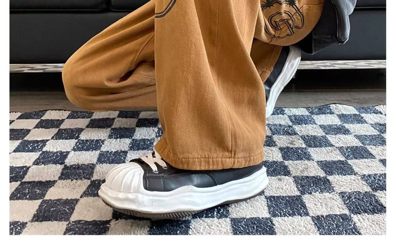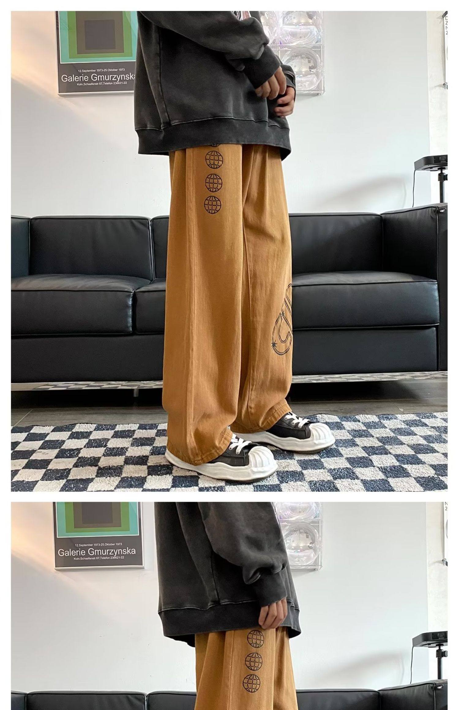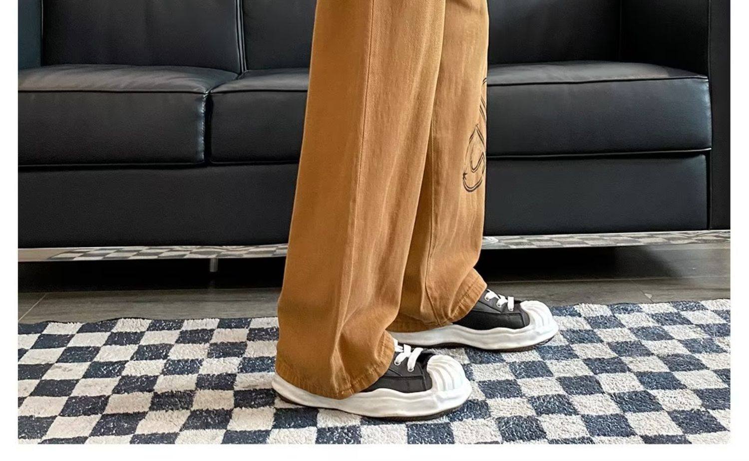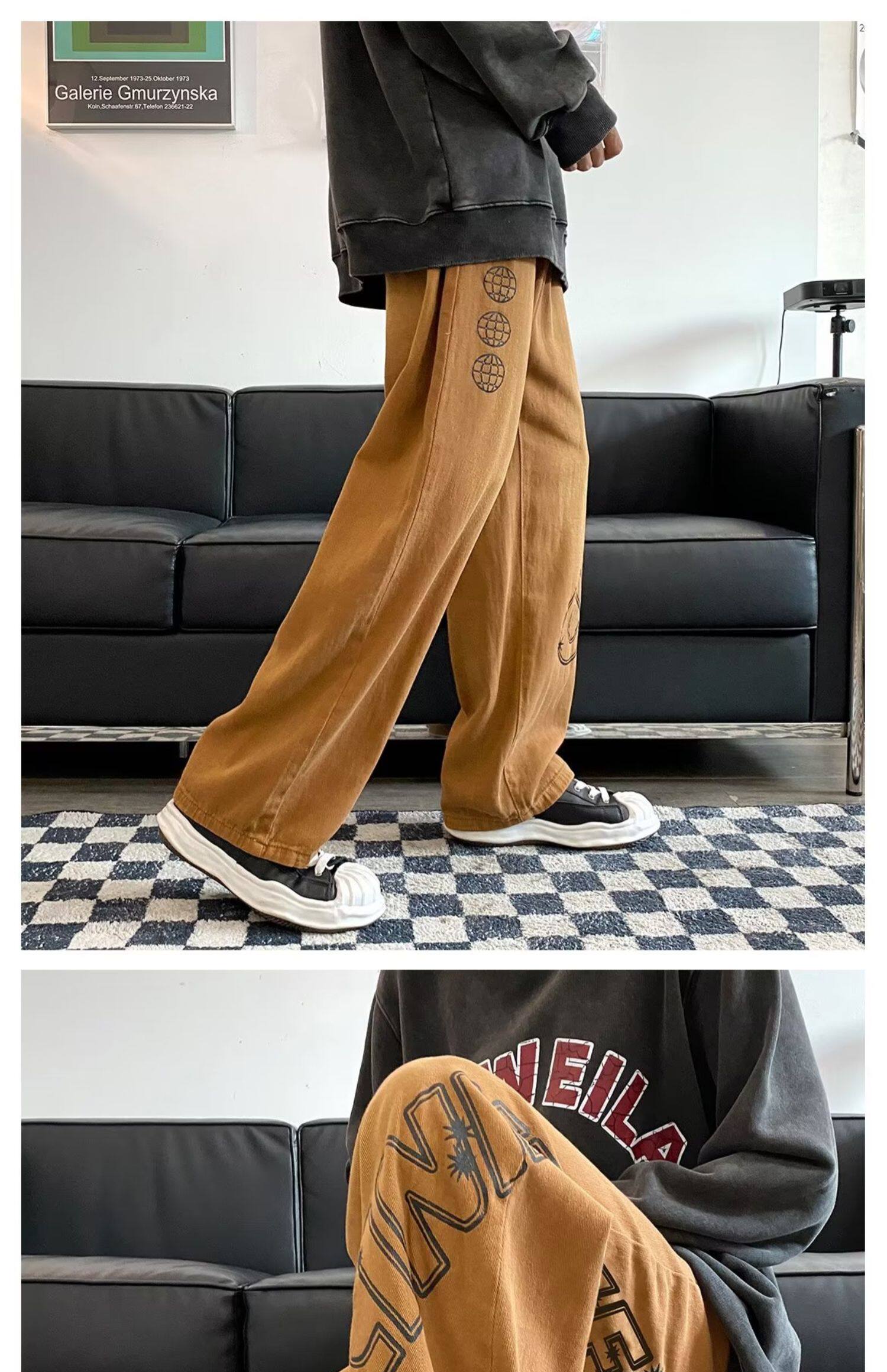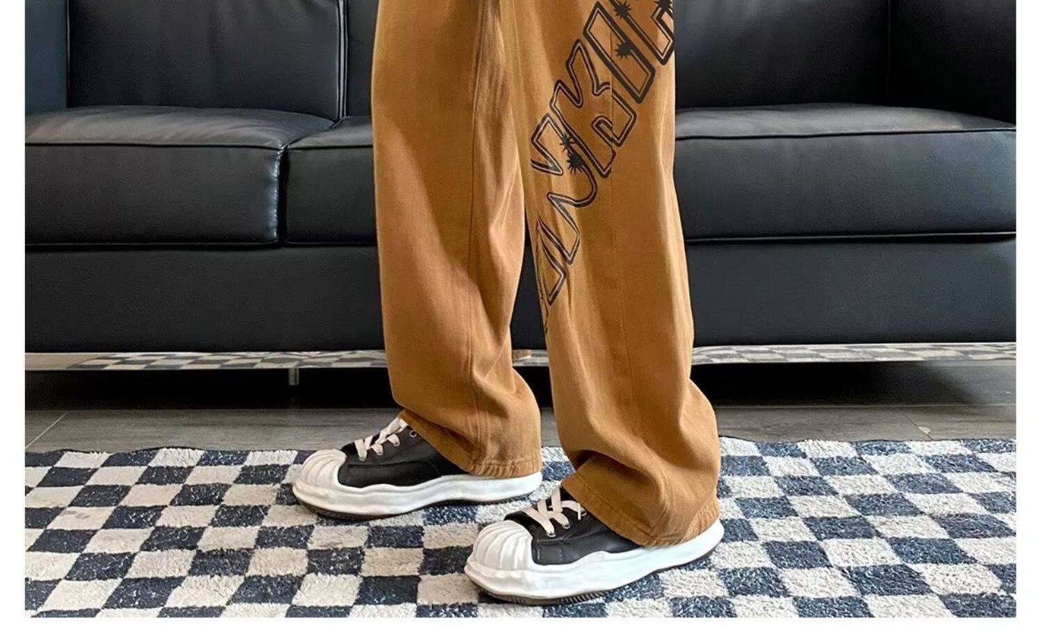 古着牛仔裤vintage港风春秋高街潮流印花字母男裤子hiphop阔腿裤