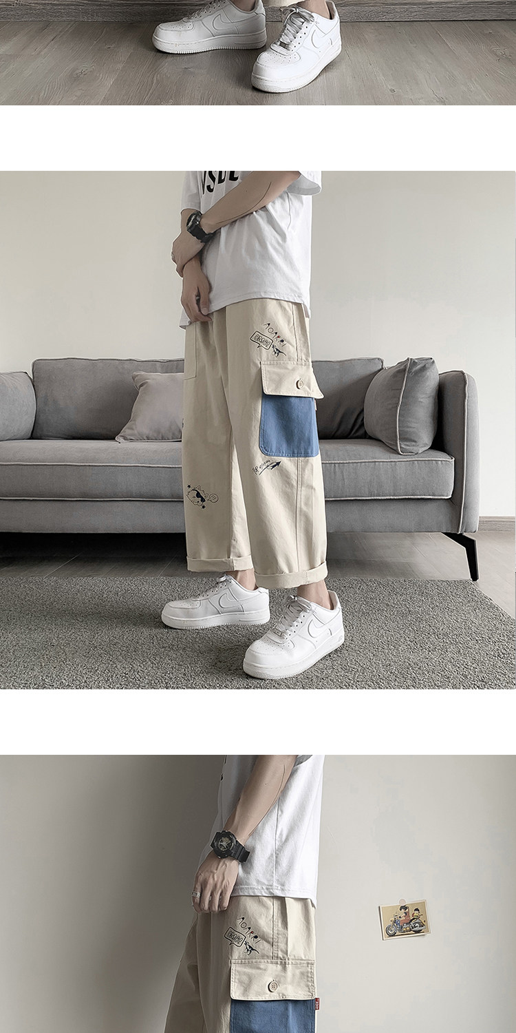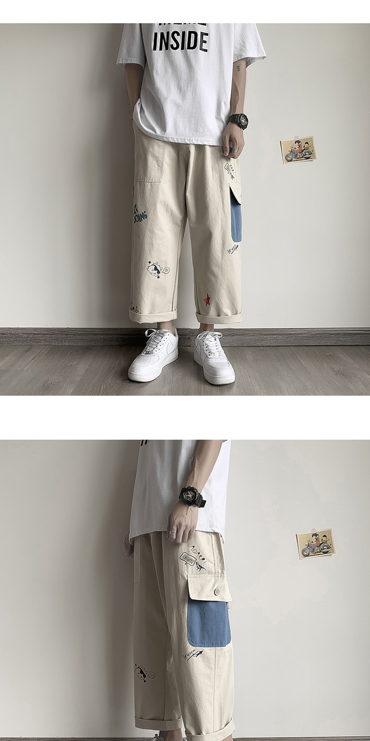 港风裤子男潮牌ins宽松阔腿裤韩版潮流痞帅工装裤嘻哈直筒九分裤