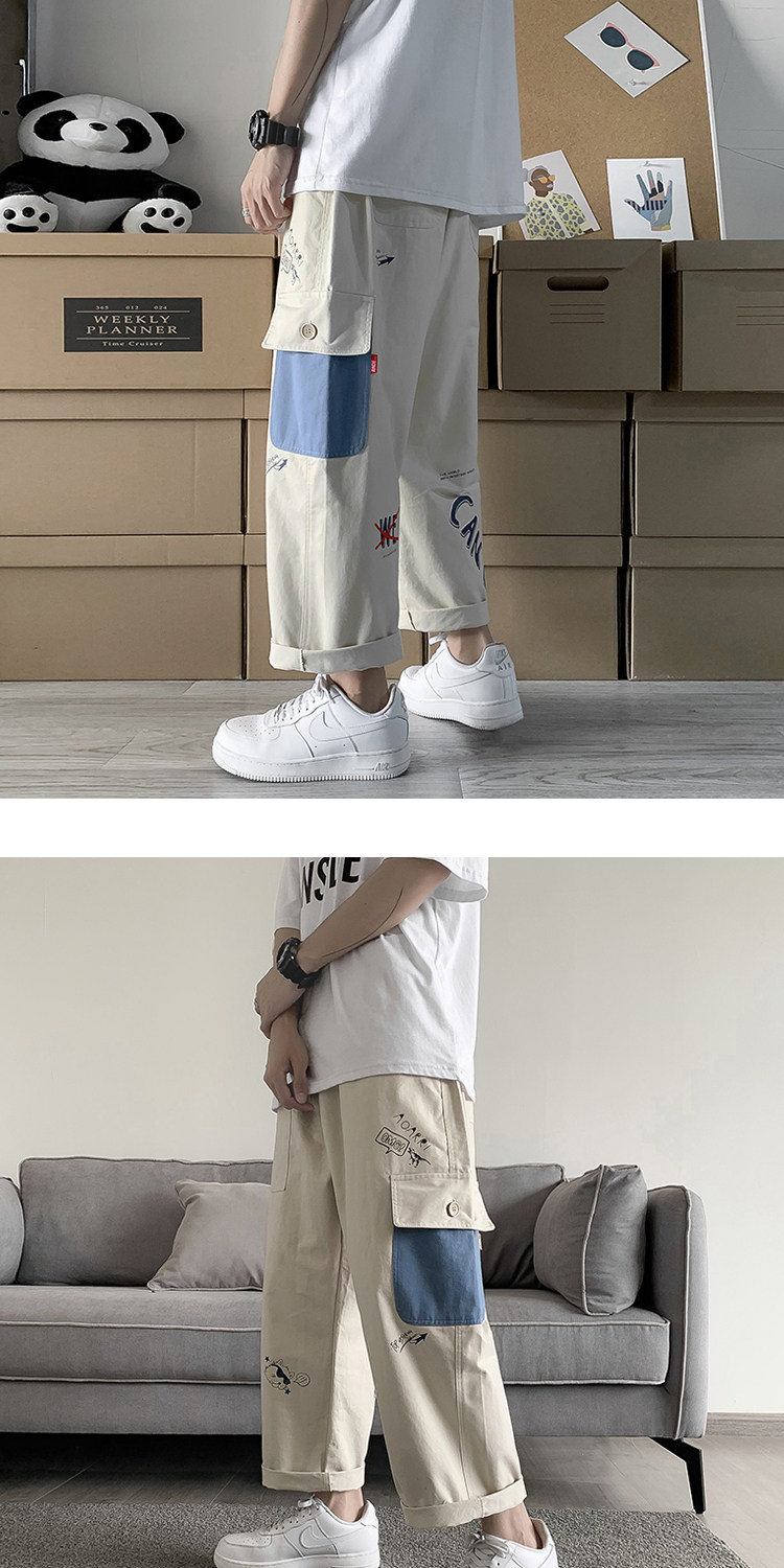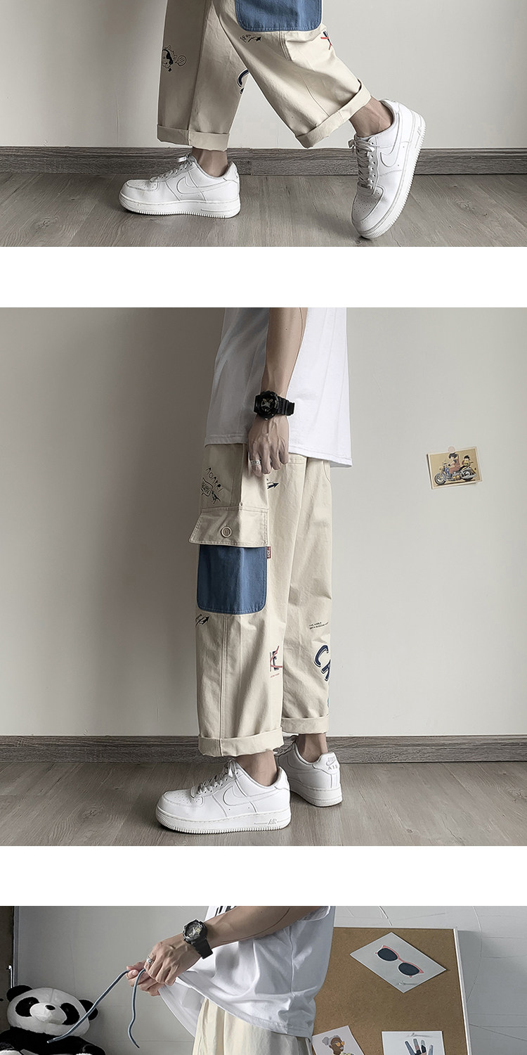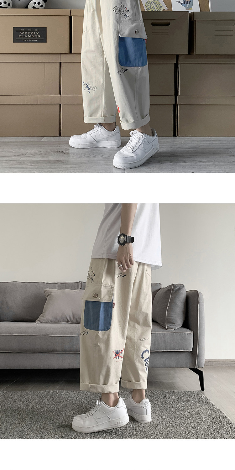 홍콩풍 힙합 일자 9부 와이드 팬츠