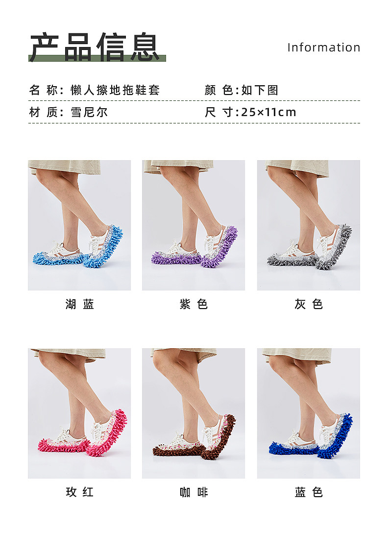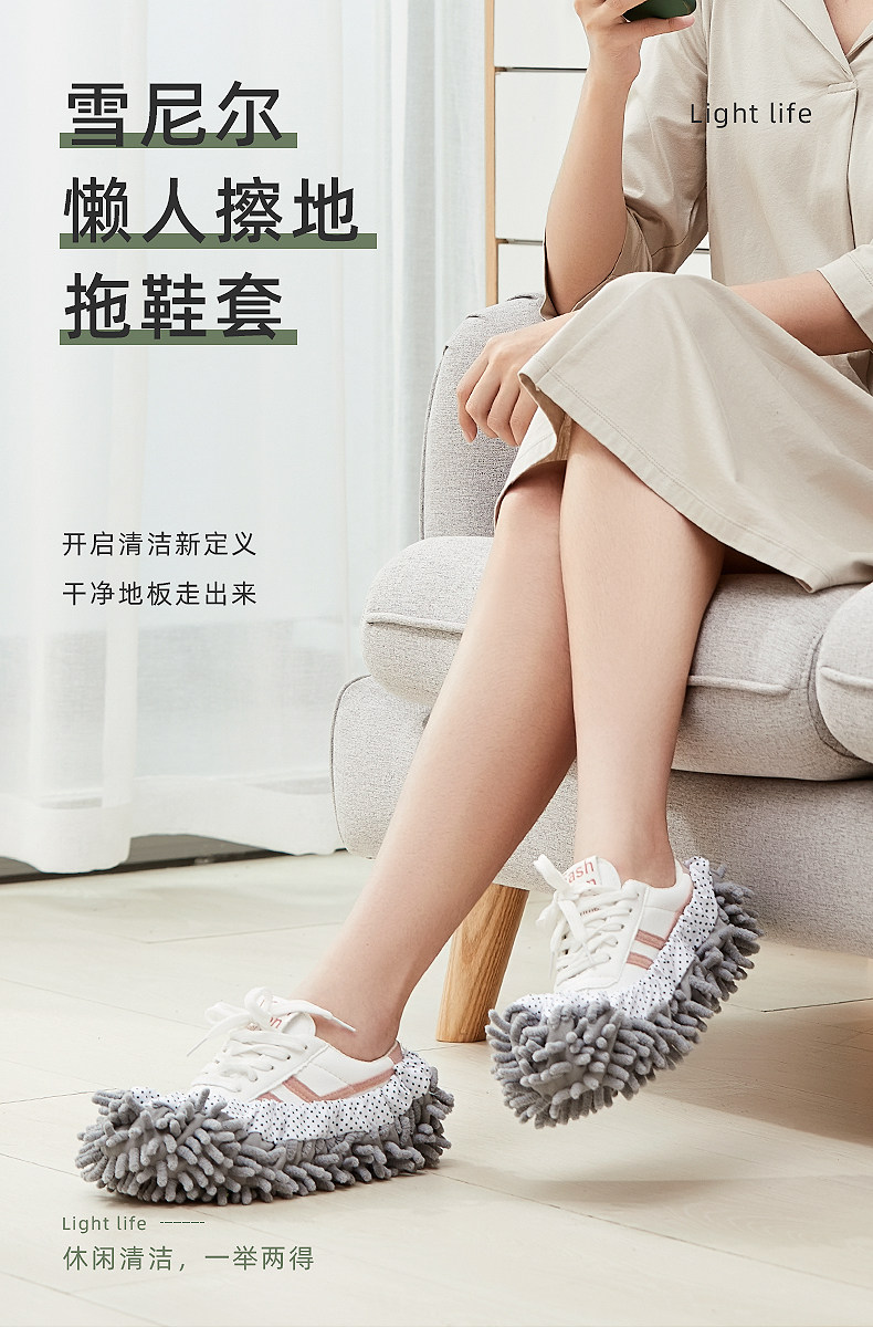 6双装懒人清洁擦地拖鞋套家用雪尼尔软底地板扫地静音鞋套可拆洗