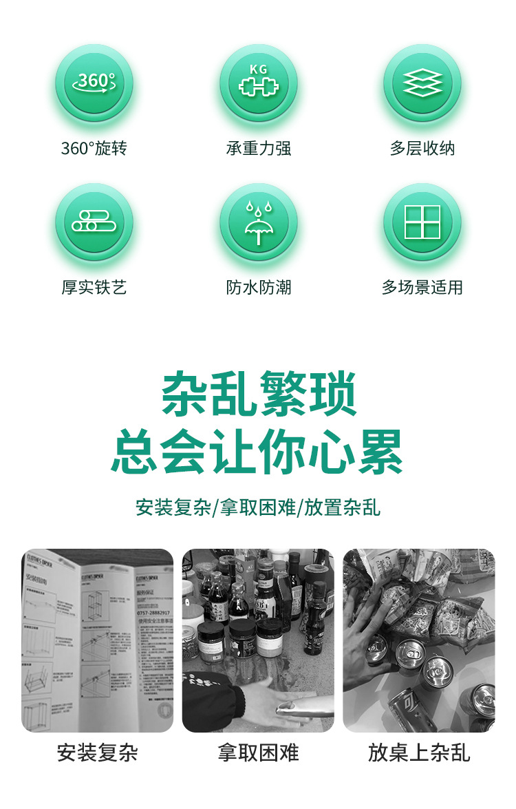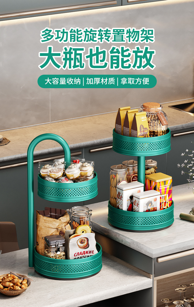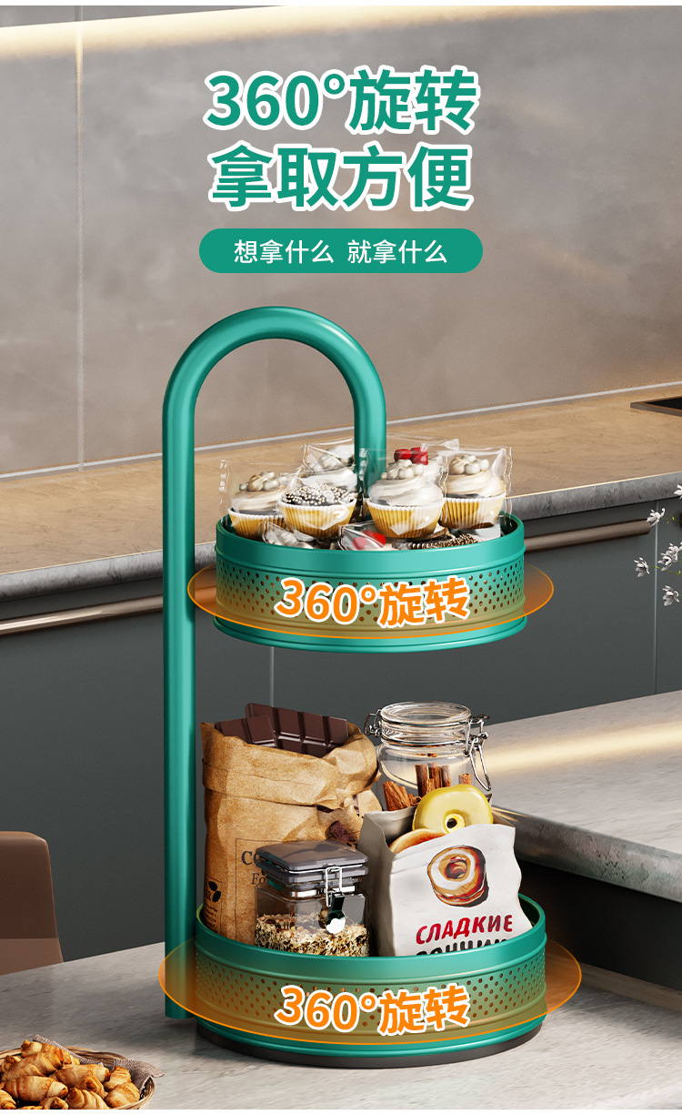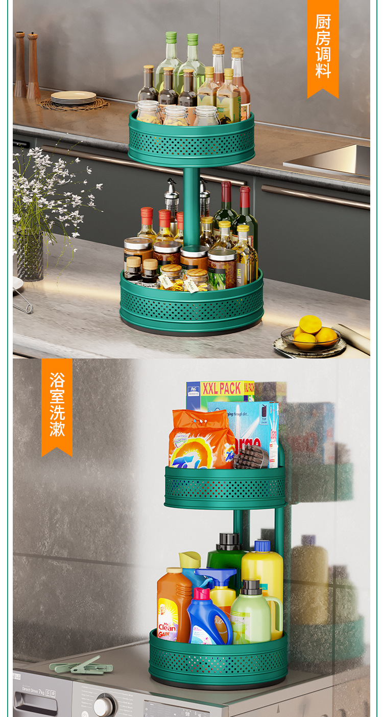 360度旋转调料架 多层酱料香料瓶罐置物架 杂物收纳架厨房置物架