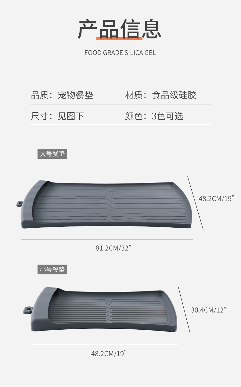 亚马逊新品大号猫狗宠物垫硅胶宠物餐食垫防水易清洁猫狗宠物用品