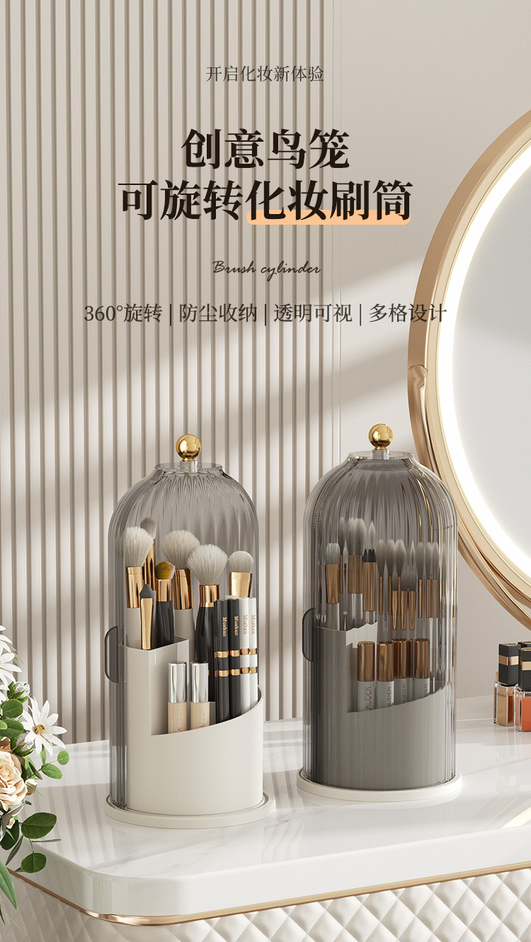 化妆品收纳盒旋转防尘化妆刷收纳筒梳妆台桌面笔筒口红眼影置物架