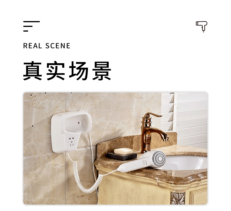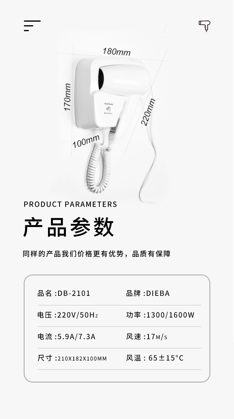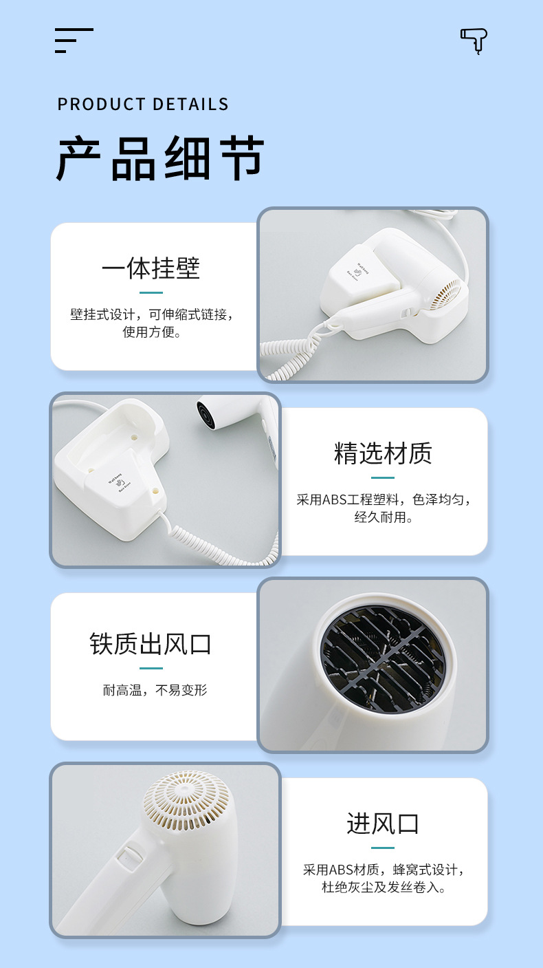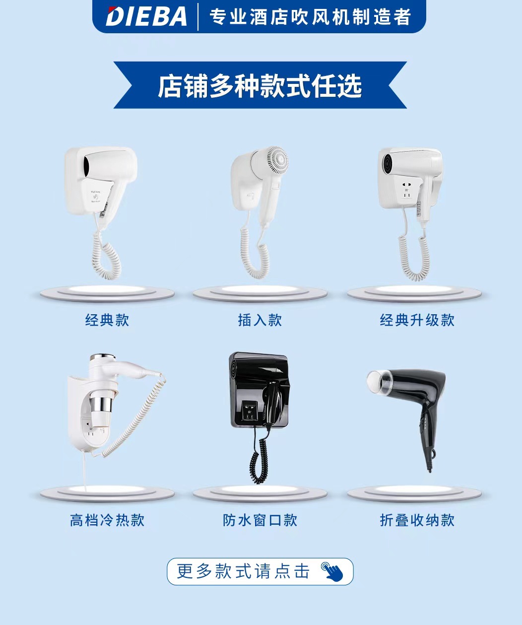 DIEBA电宝酒店吹风机壁挂式电吹风宾馆干发器浴室吹风筒厂家批发