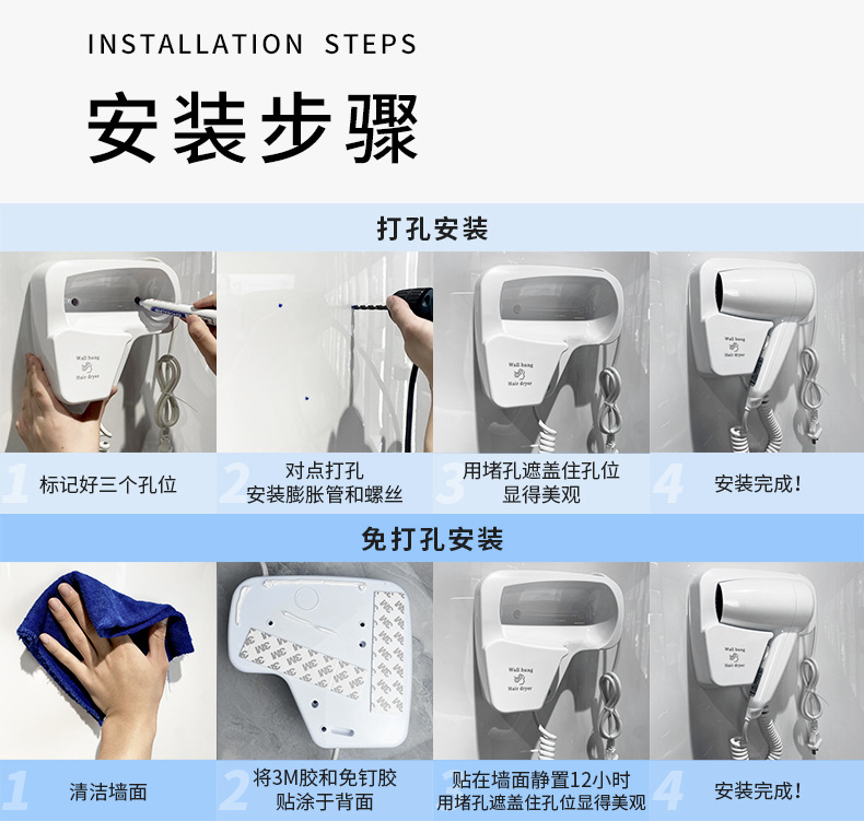 DIEBA 덴보 호텔 드라이기 벽걸이 전기 드라이기 호텔 드라이기 욕실 드라이기 제조업체 도매