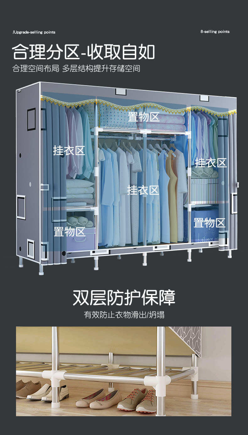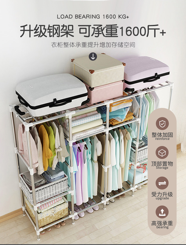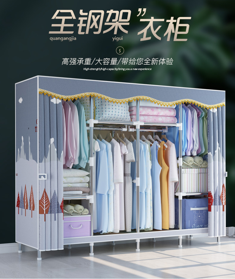 布衣柜出租房用经济型家用卧室简易衣柜结实耐用宿舍收纳组装衣橱
