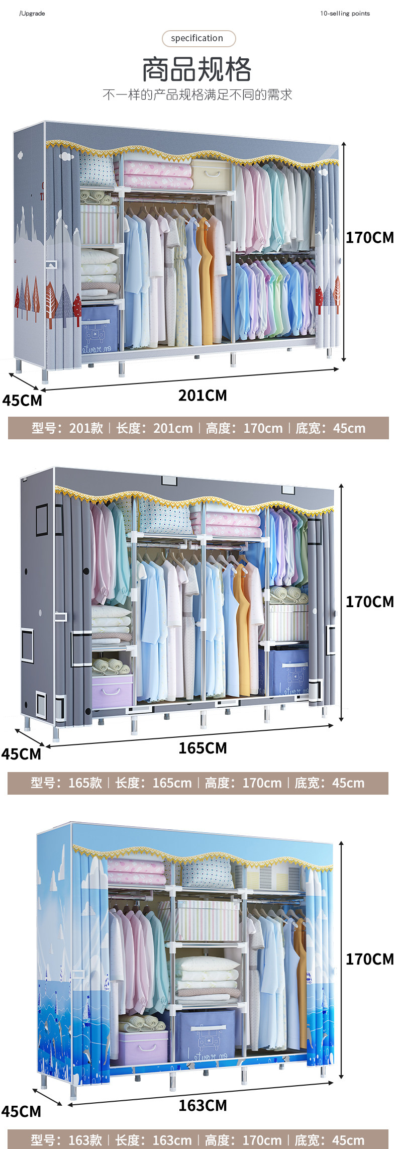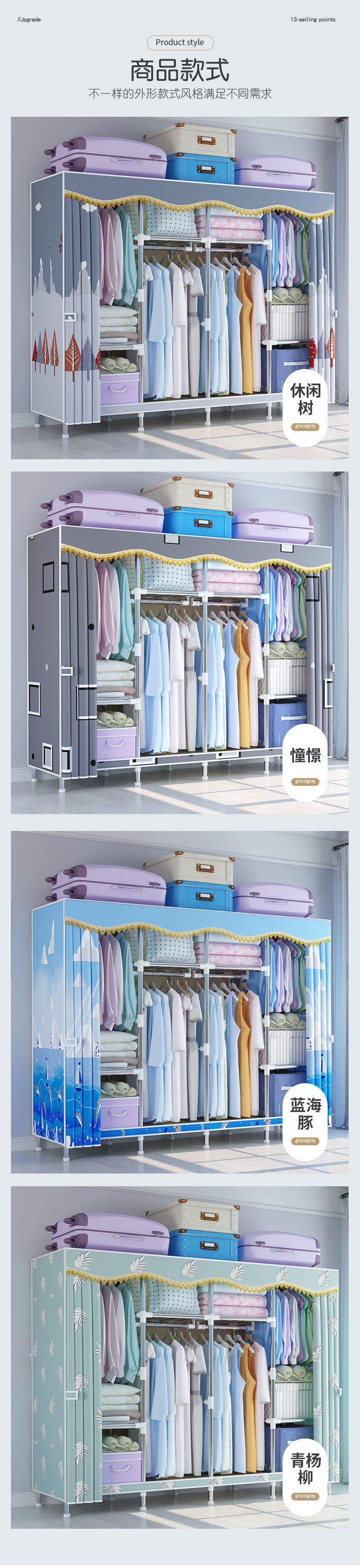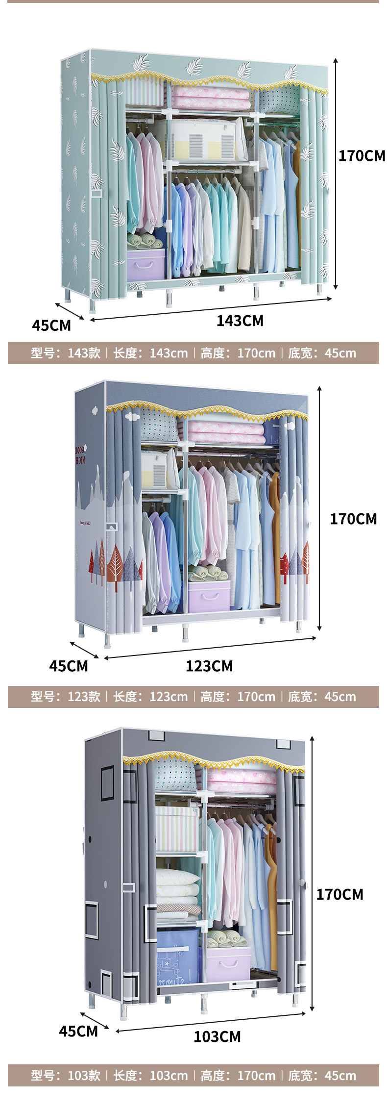 布衣柜出租房用经济型家用卧室简易衣柜结实耐用宿舍收纳组装衣橱