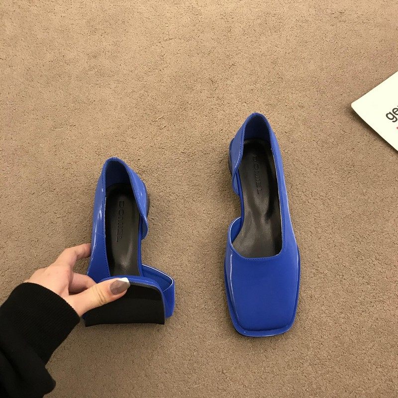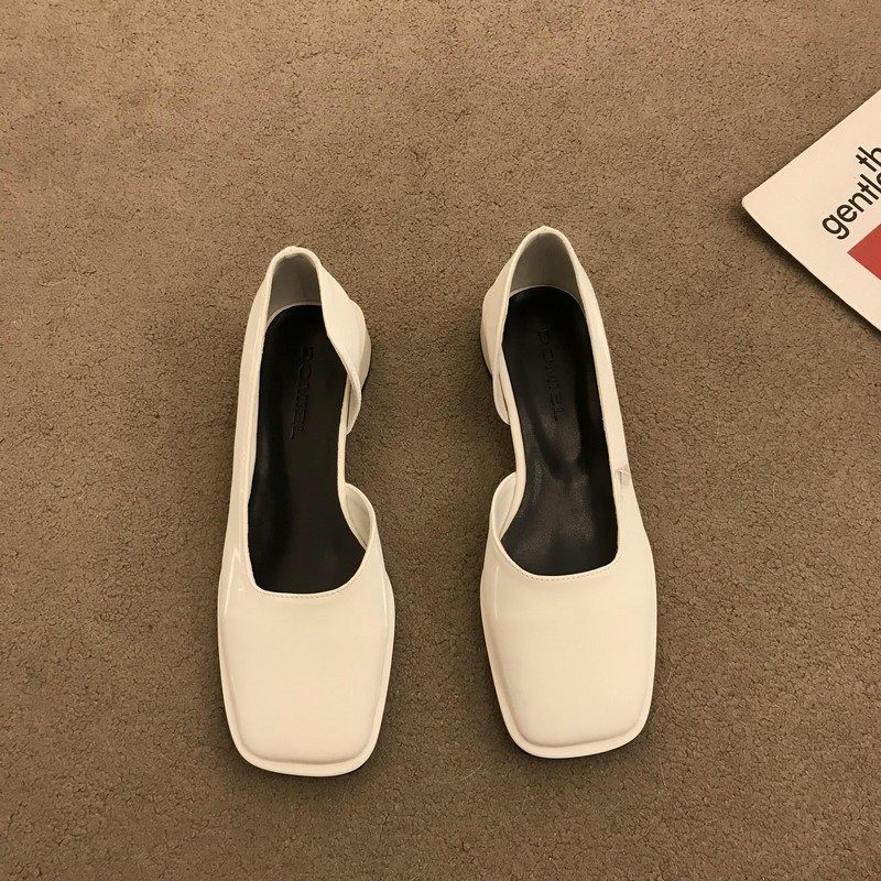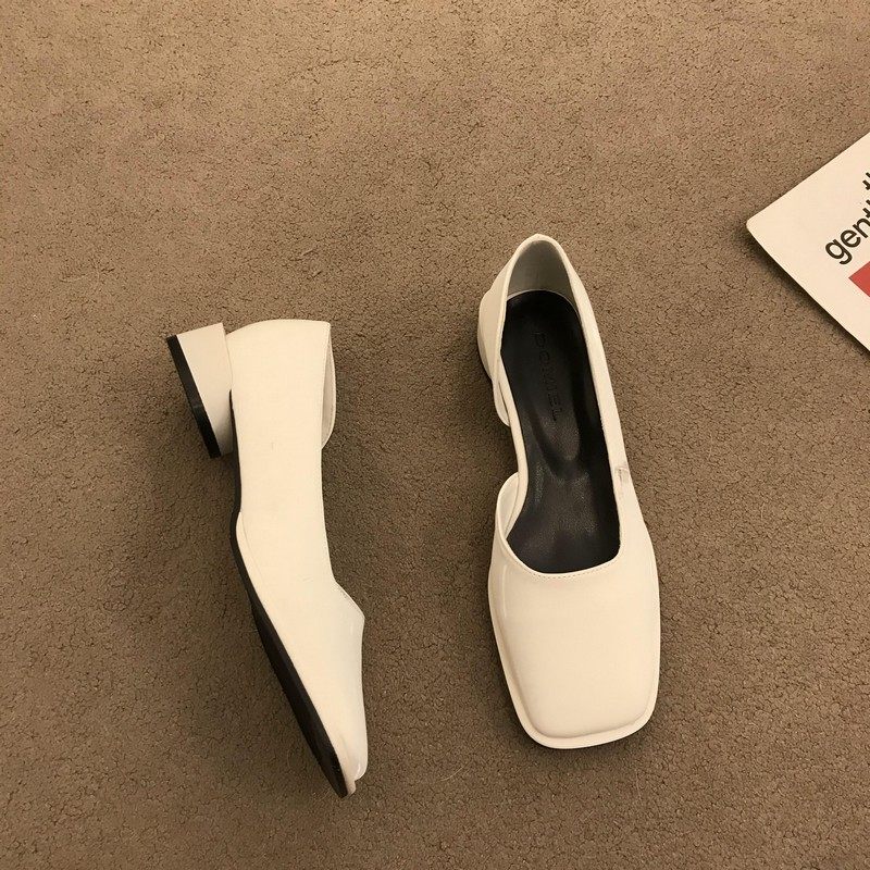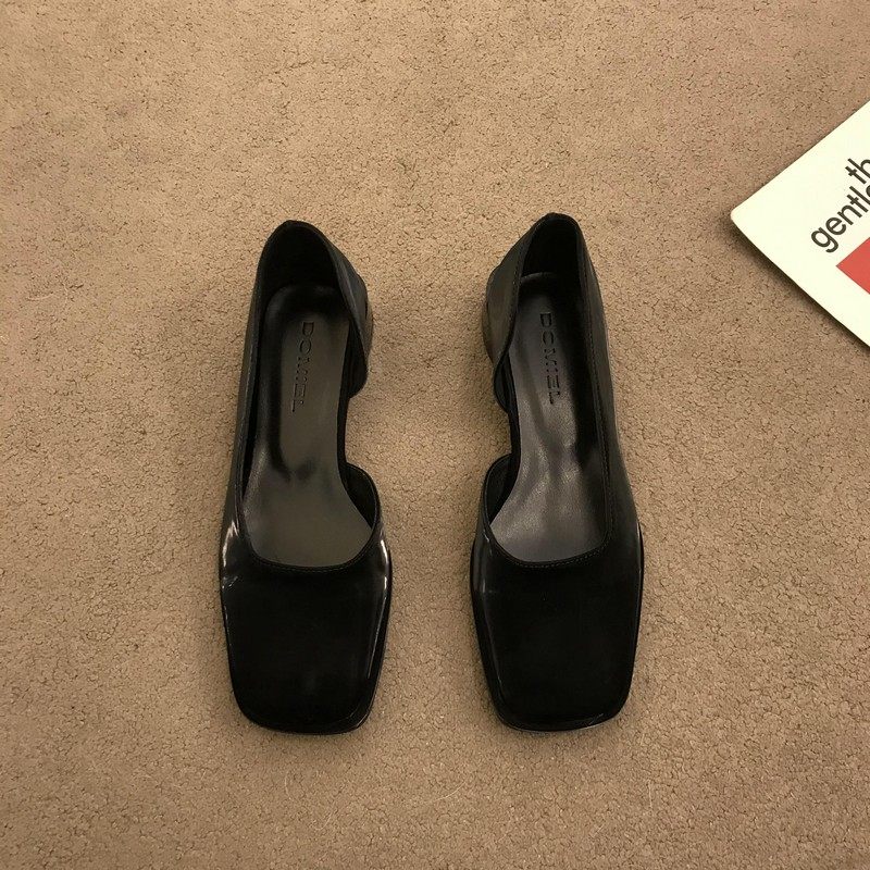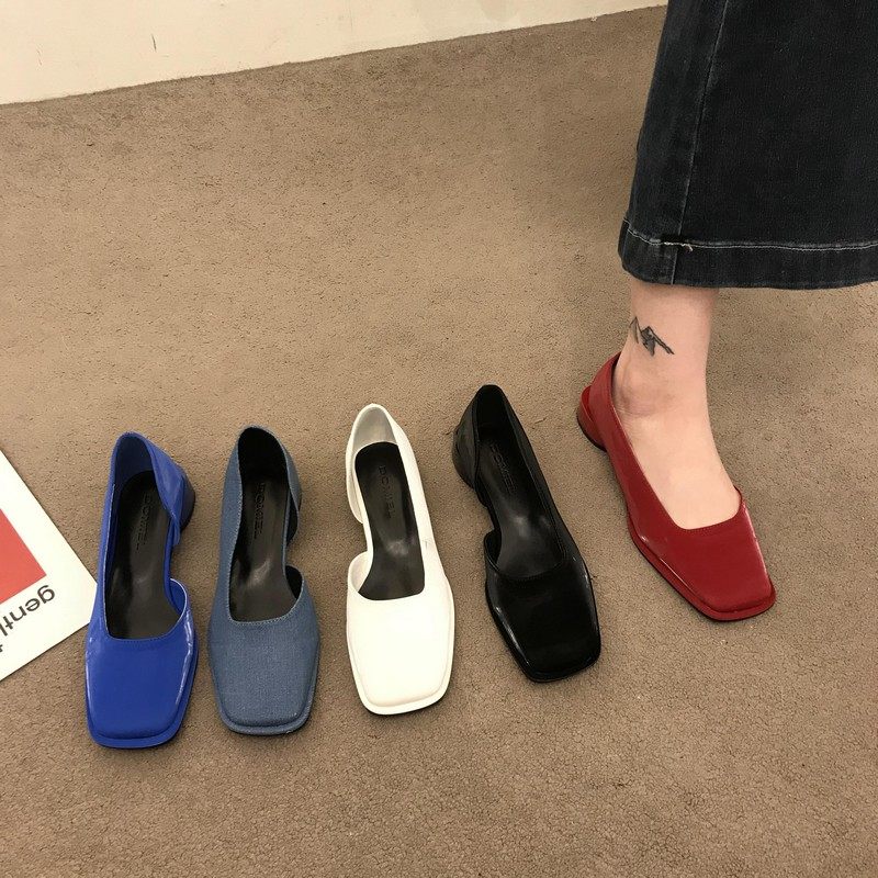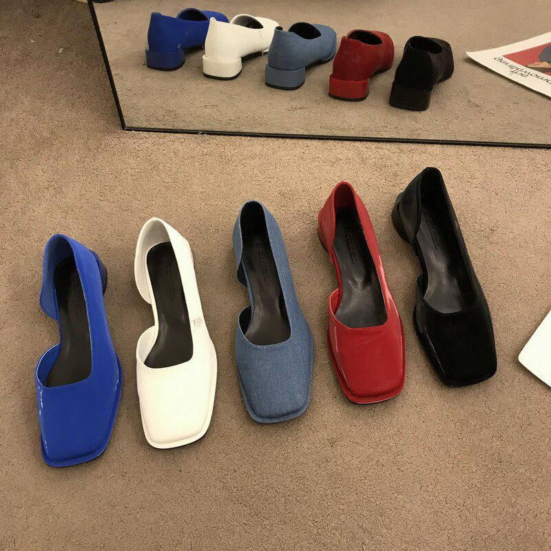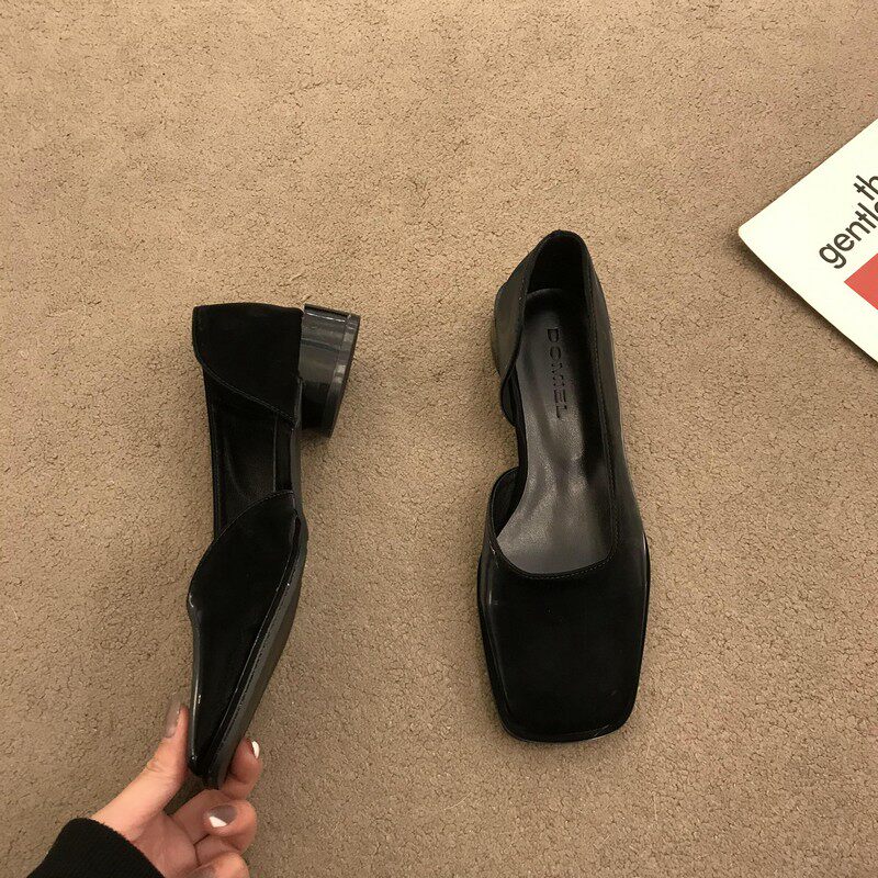 2023春季新款女鞋子时尚百搭方头侧空浅口单鞋女中跟粗跟低帮女鞋