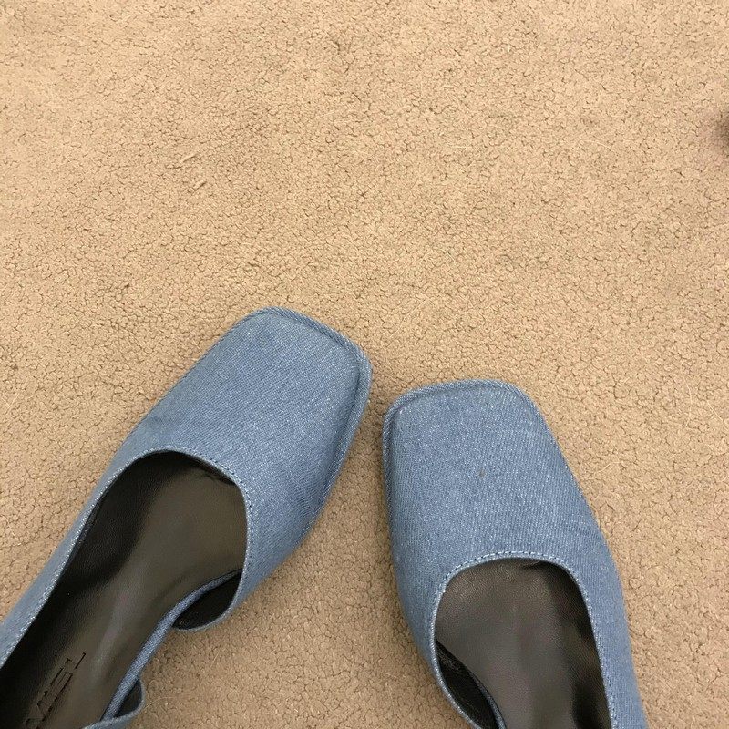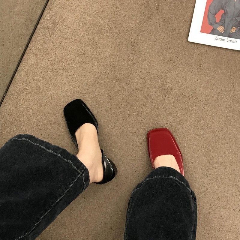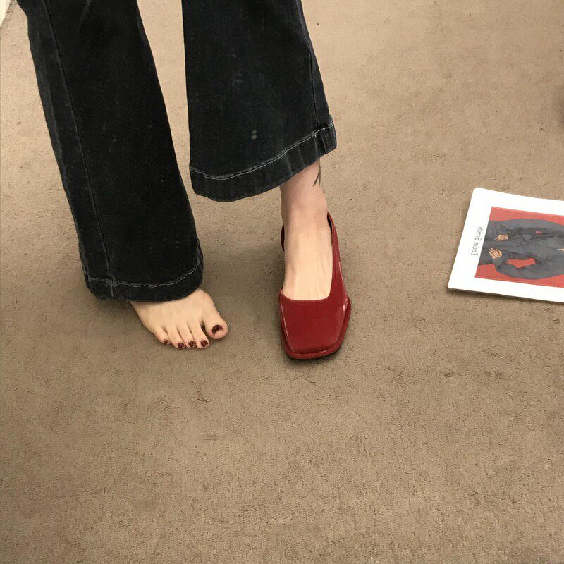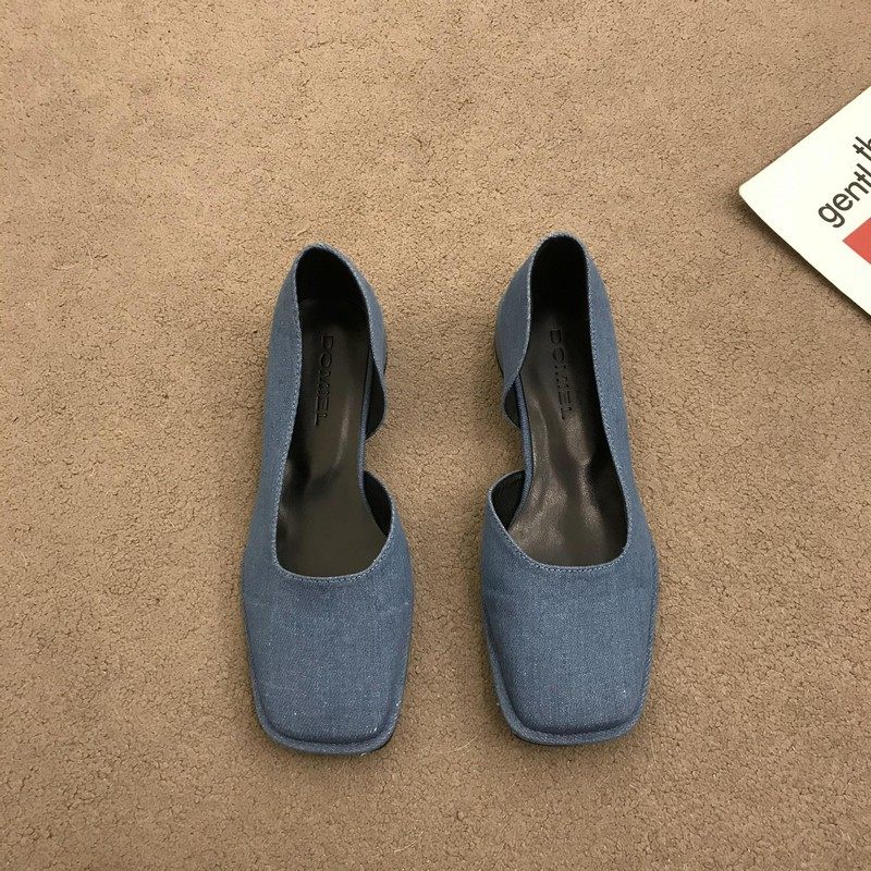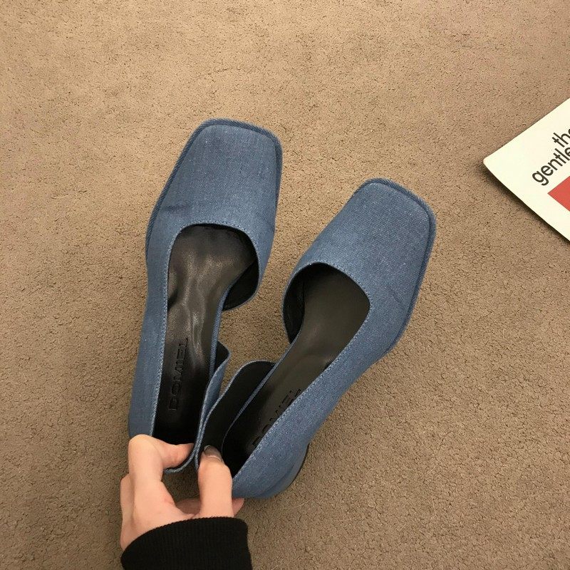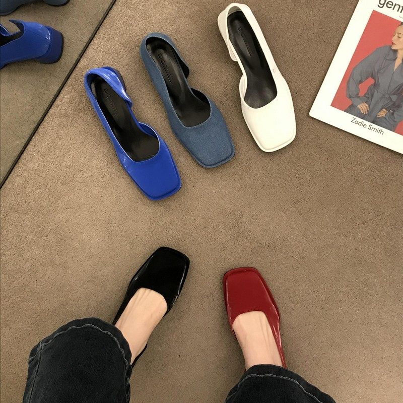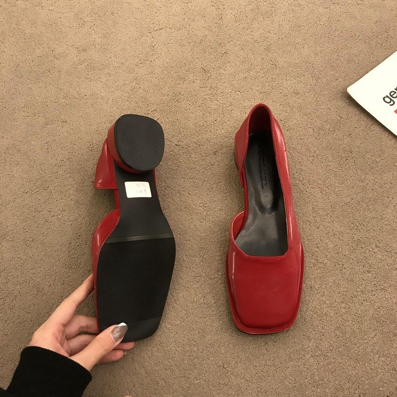 2023春季新款女鞋子时尚百搭方头侧空浅口单鞋女中跟粗跟低帮女鞋