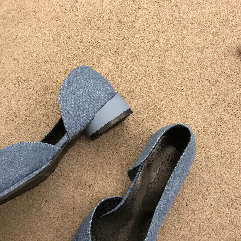 봄 스타일리쉬 사이드 오픈 펌프스 통굽 낮은 여성슈즈