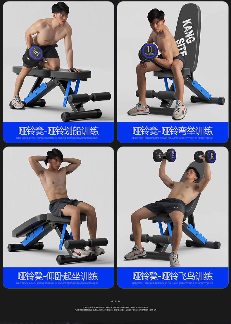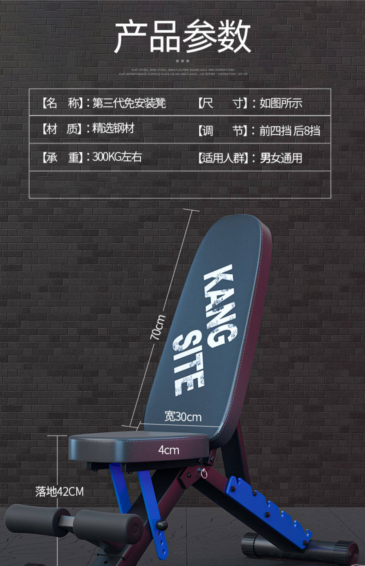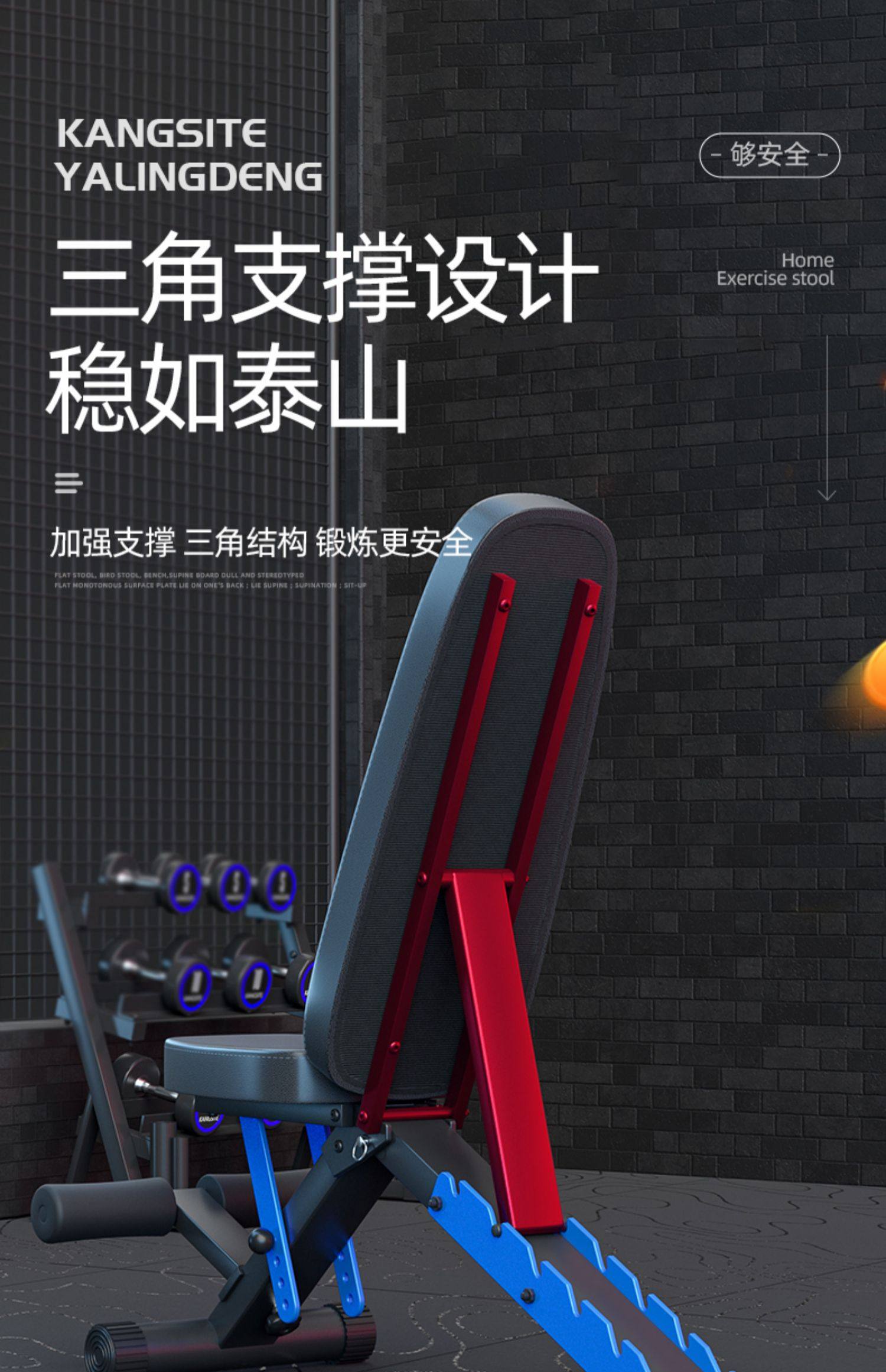 康斯特折叠哑铃凳家用健身椅可调节仰卧起坐辅助器材多功能卧推凳
