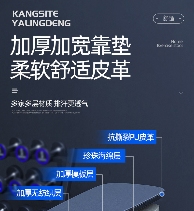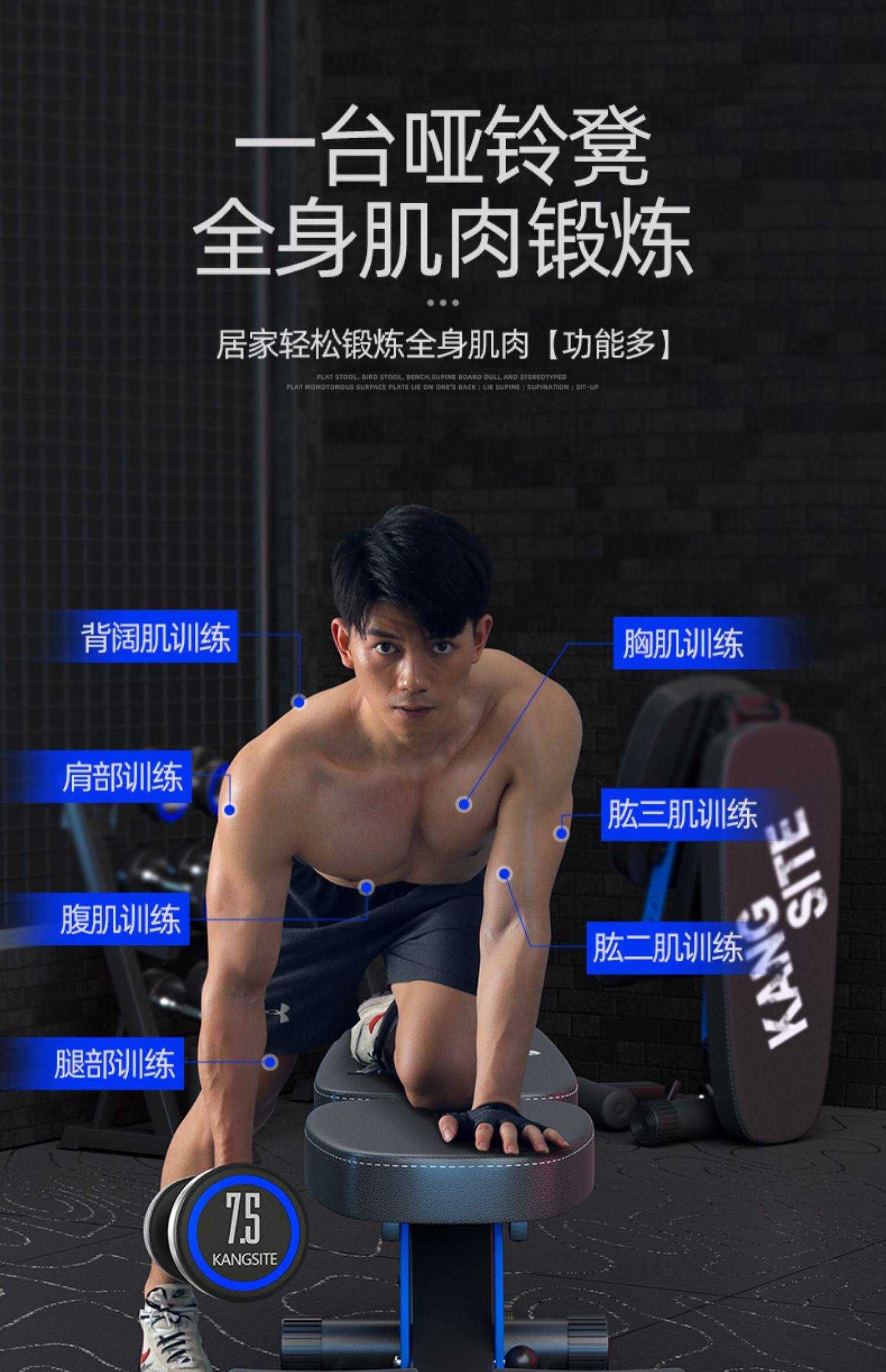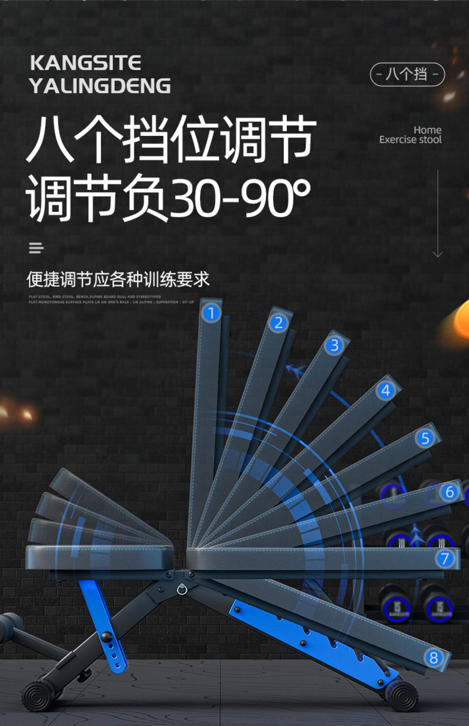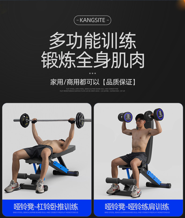 康斯特折叠哑铃凳家用健身椅可调节仰卧起坐辅助器材多功能卧推凳