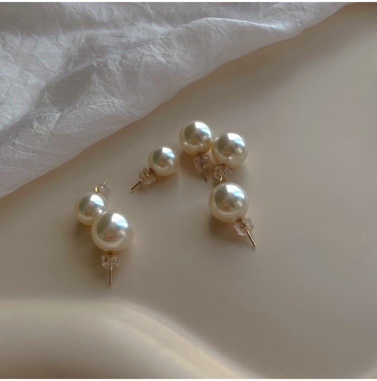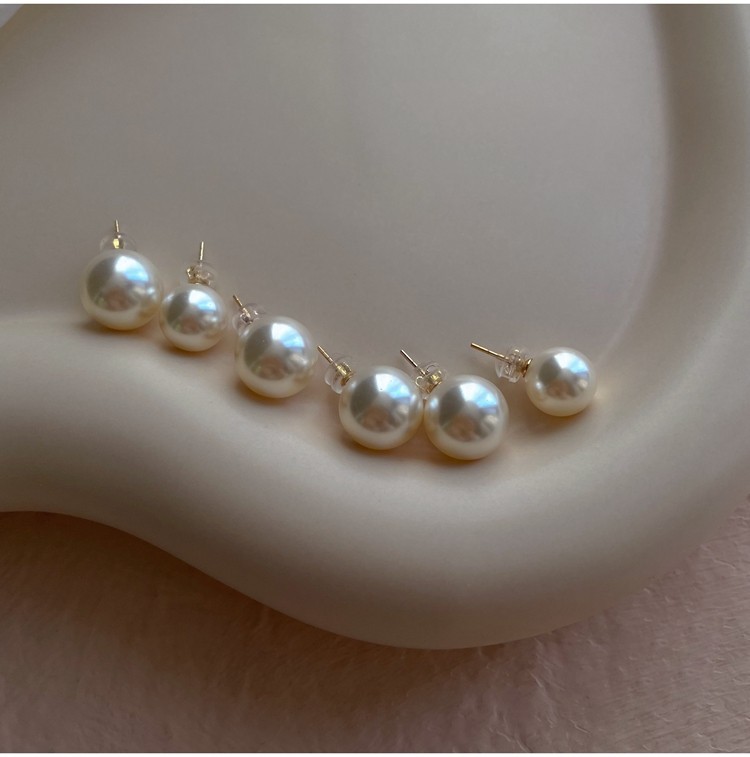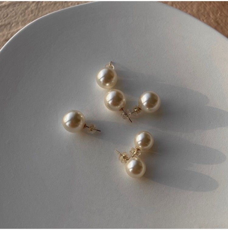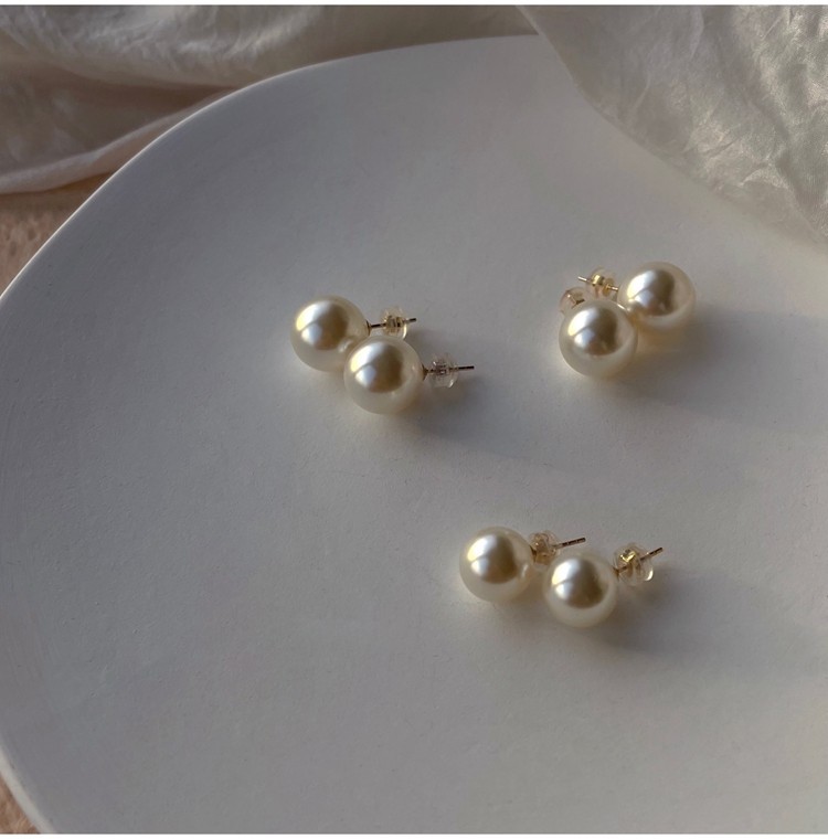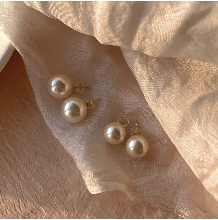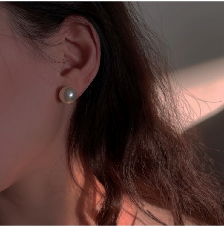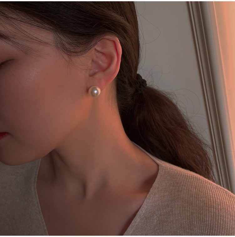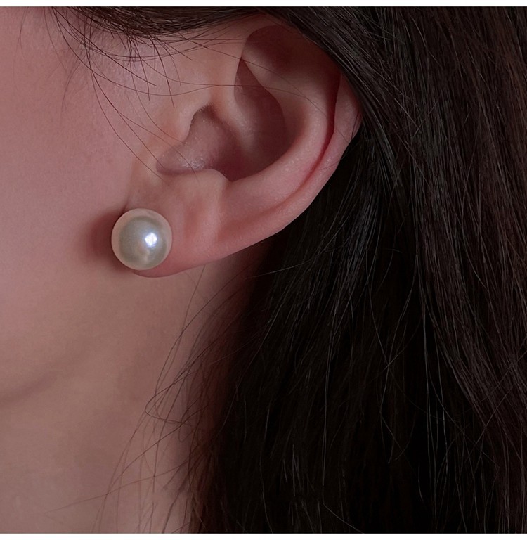 人气款大颗正圆强光珍珠耳钉fever复古14K包金施家珍珠耳环耳夹女
