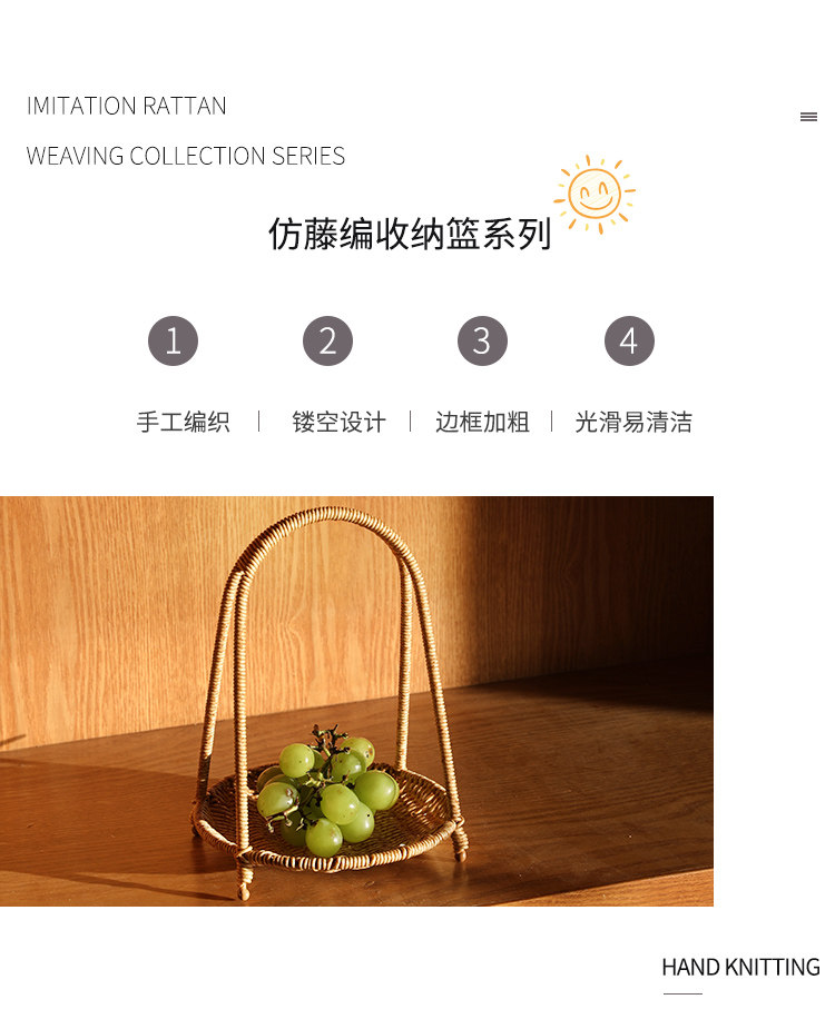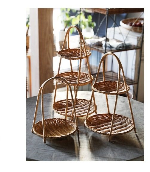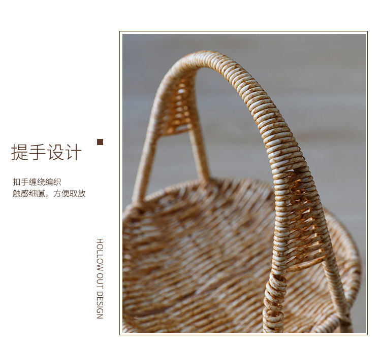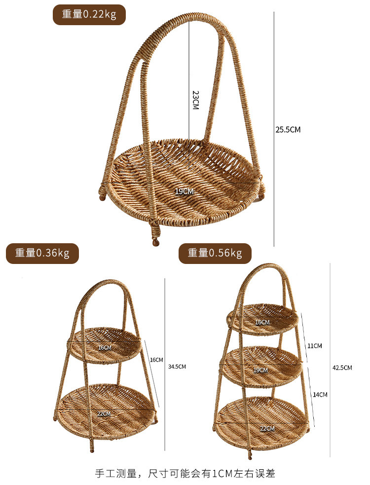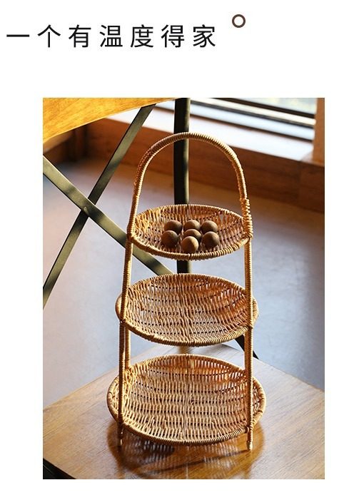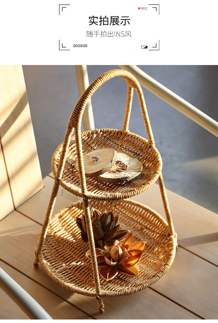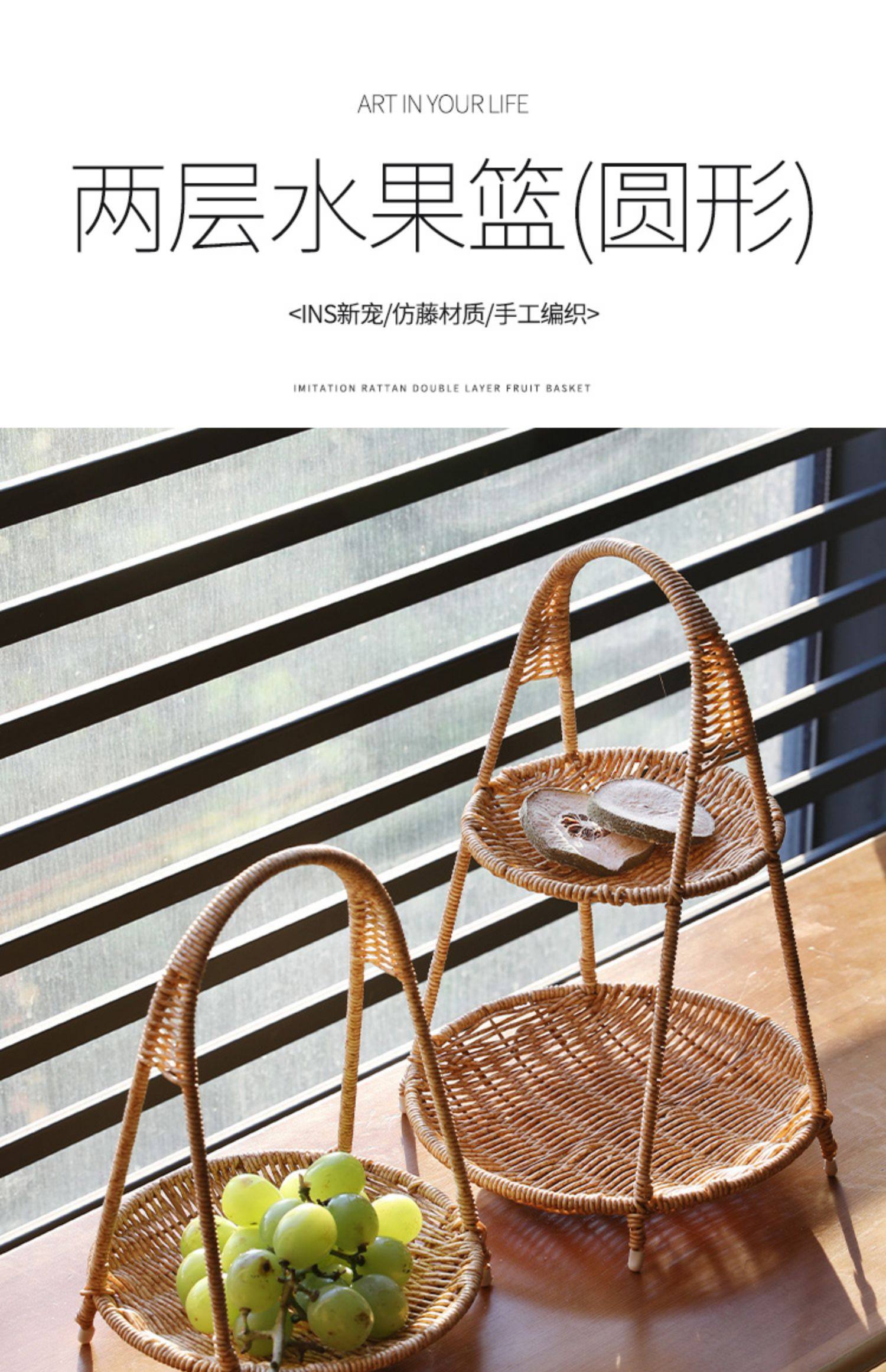 Kens创意多层水果盘欧式干果盘仿藤编家用零食盘糖果下午茶托盘篮
