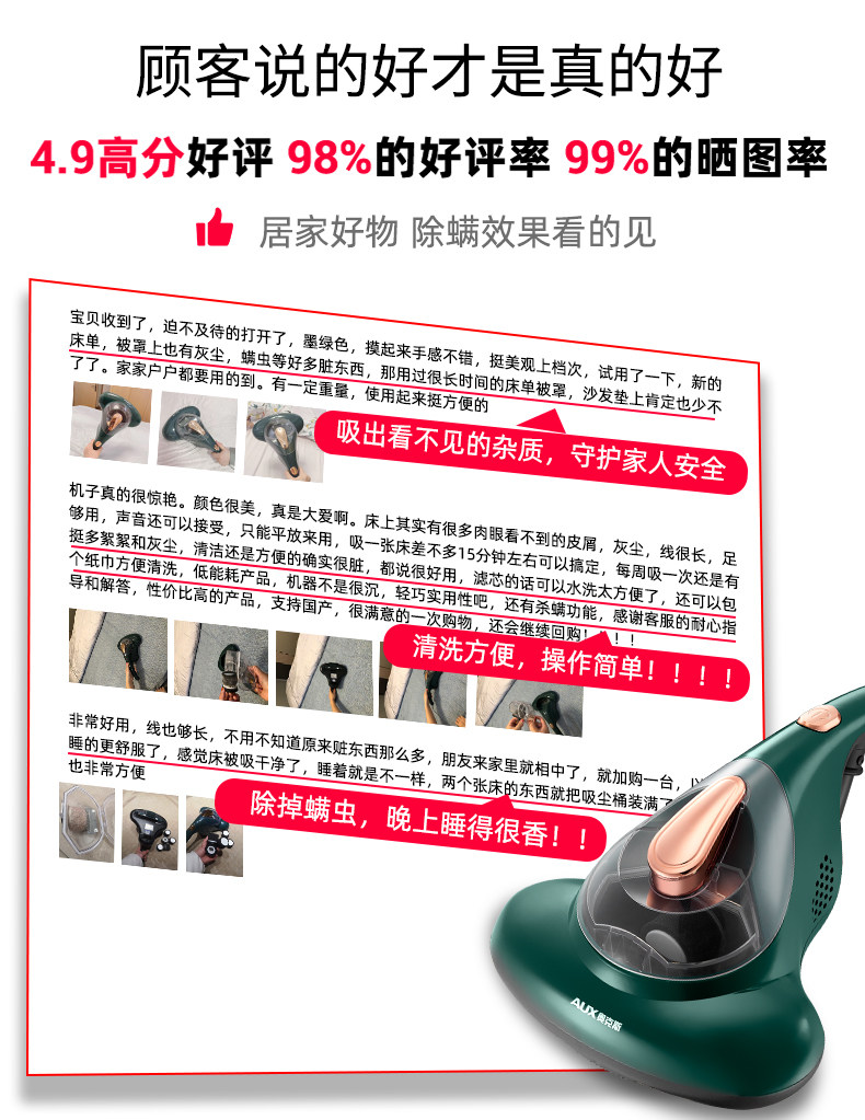 奥克斯除螨仪紫外线杀菌机家用床上去螨虫神器吸尘器床铺除吸小型