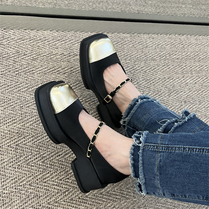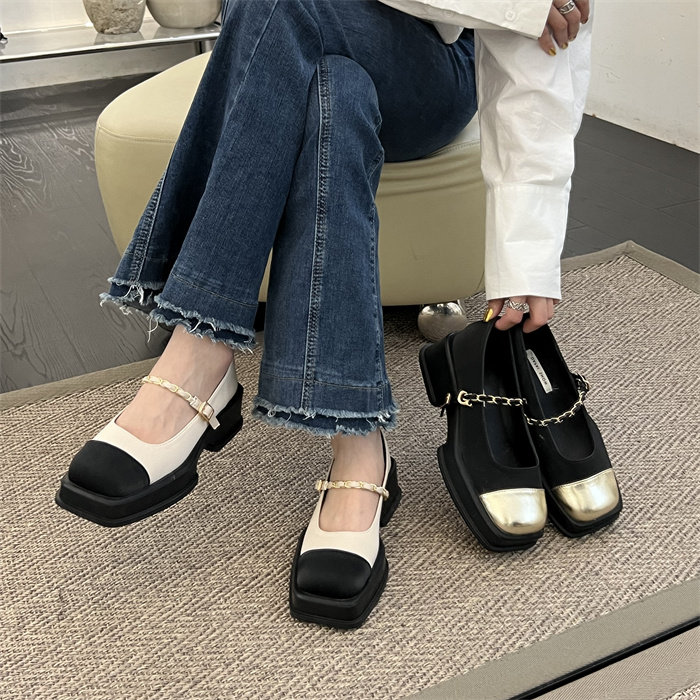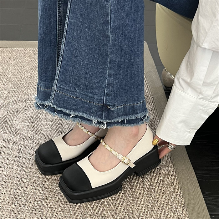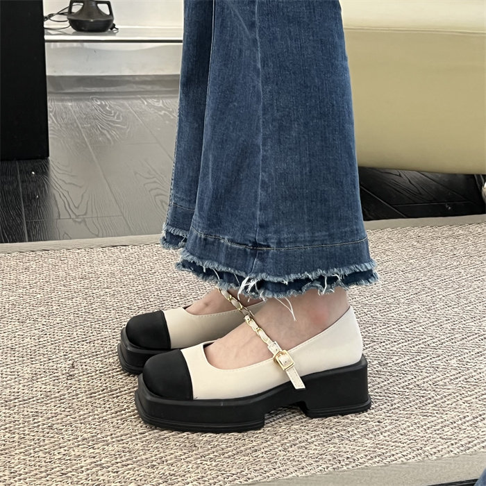 玛丽珍女鞋厚底小香风单鞋2023新款春秋时尚法式方头配裙子小皮鞋