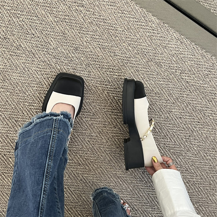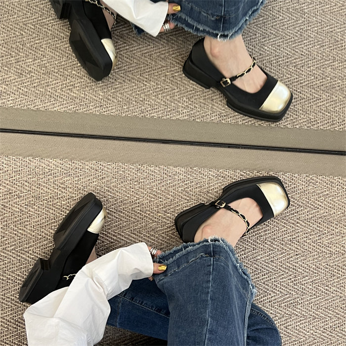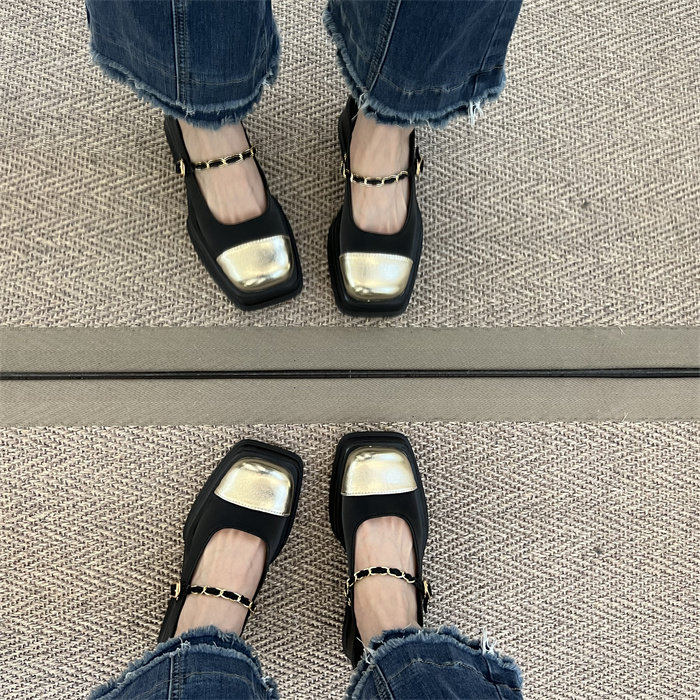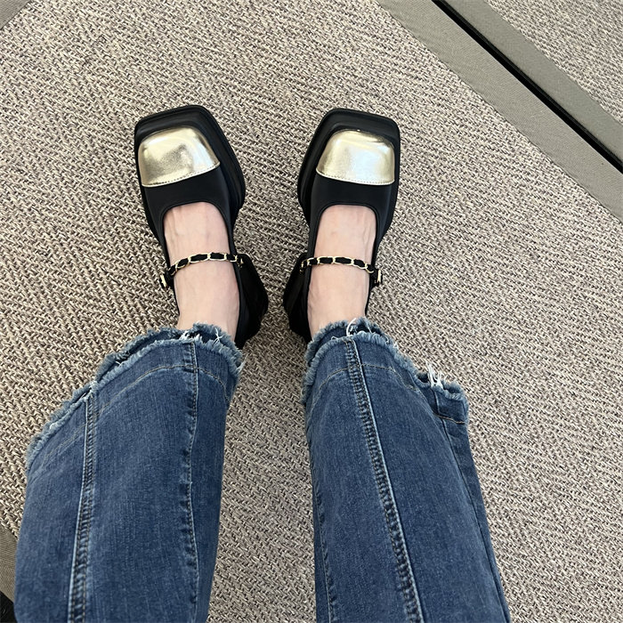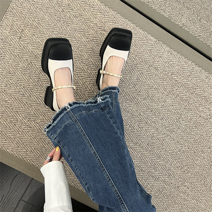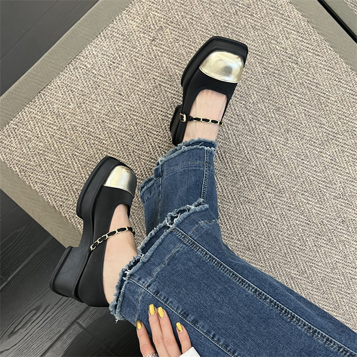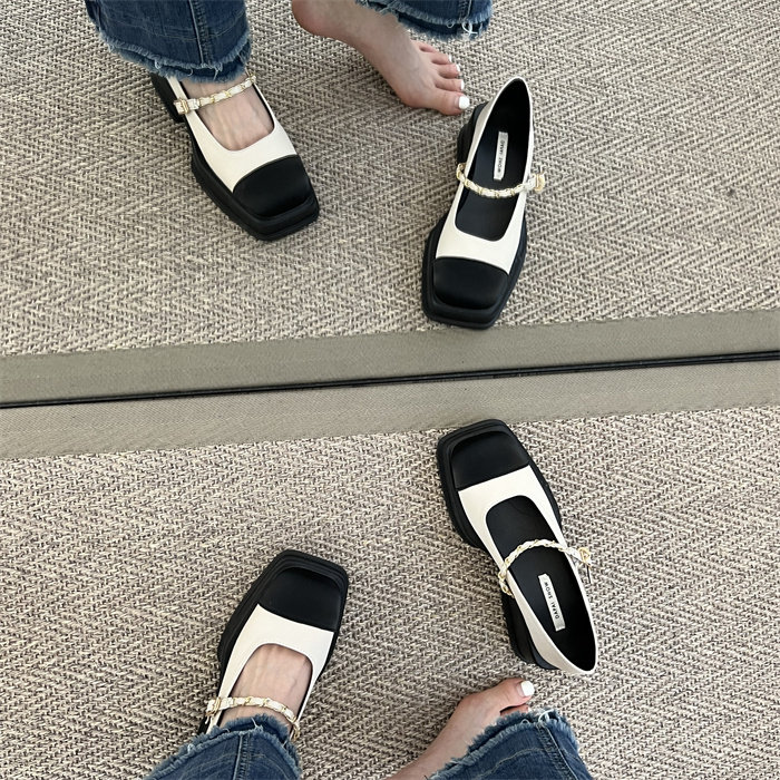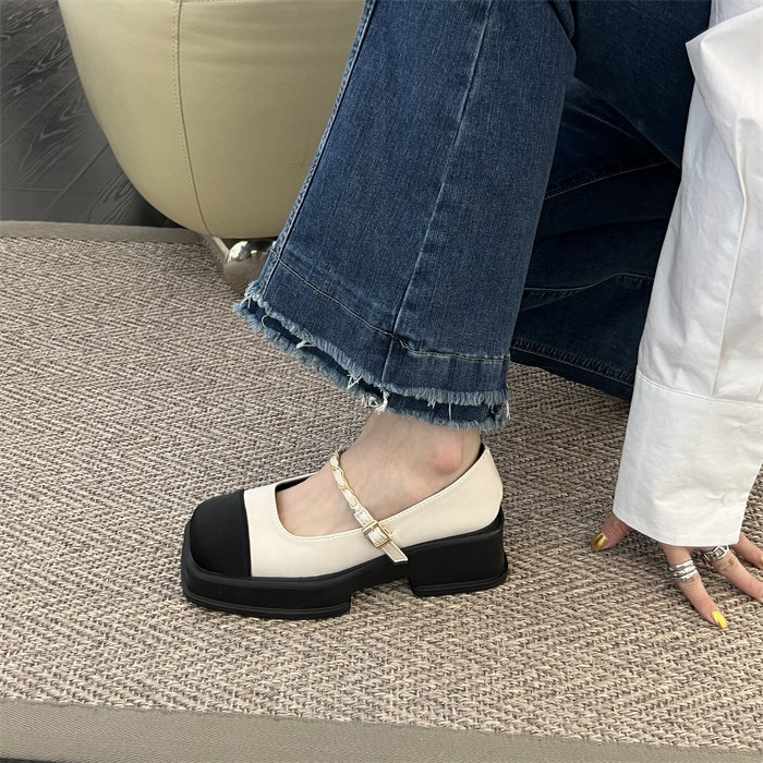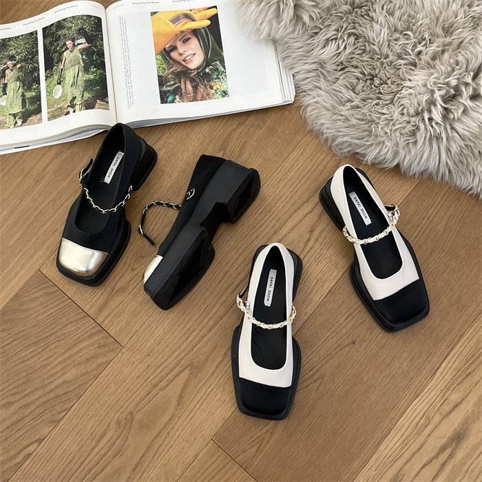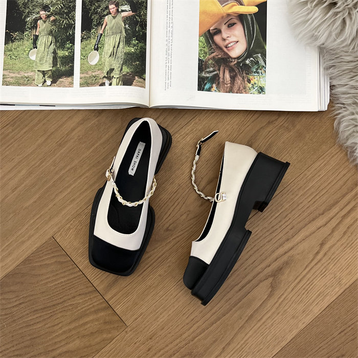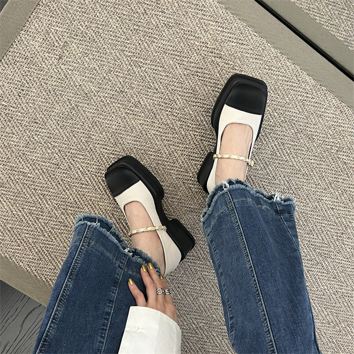 메리제인 여성화 통굽 작은 향기풍 단화 2023 신상 봄가을 패션 프렌치 스퀘어 스커트 작은 구두