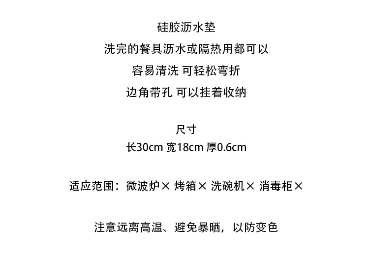 *穆尼*简约硅胶沥水垫厨房锅垫桌面隔热垫餐垫易清洗防滑固定垫